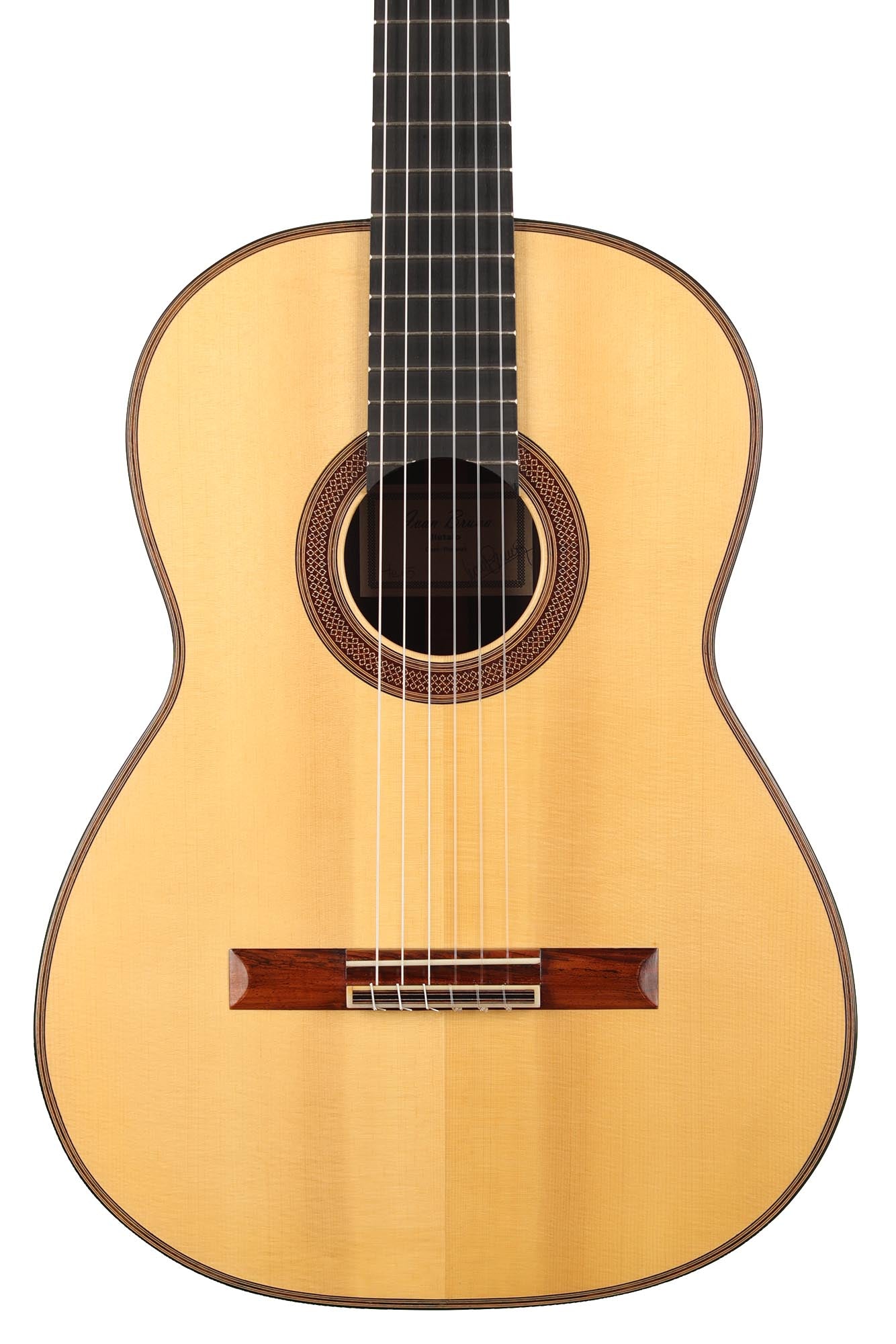 Die Gitarren von Ivan Bruna sind auch für ihre faszinierenden Klangeigenschaften bekannt. Diese hier hat einen sehr offenen, warmen und kräftigen Klang. Die Ausgewogenheit der Töne, vor allem auf der ersten Saite, verleiht ihr einen Charakter, der sowohl markant als auch reif ist. Darüber hinaus weisen die satten und doch geschmeidigen Bässe ein reiches und zugleich feines Timbre auf. Diese ausgezeichnete Gitarre in einer vernünftigen Preisklasse wird mit einem widerstandsfähigen, gebrauchten, schwarzen Hartschalenkoffer in gutem Zustand verkauft.