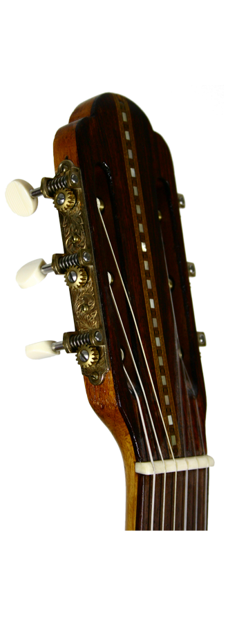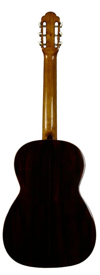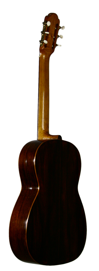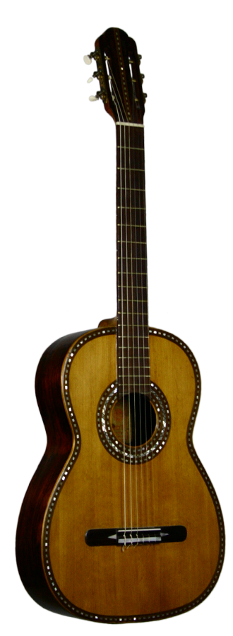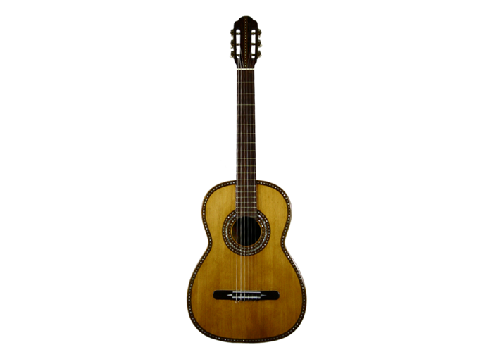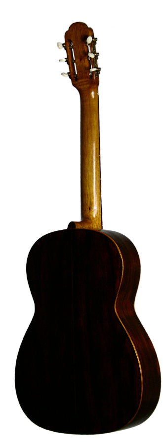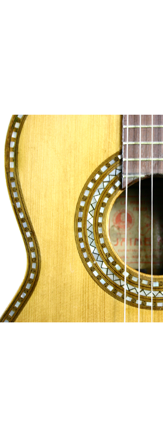 Jaime Ribot war zu Beginn des 20. Jahrhunderts Gitarrenbauer in Barcelona und arbeitete bis 1920 eine gemeinsam mit Bautista Alcañiz in einer Werkstatt in der Calle Ancha. Diese Gitarre ist reichlich mit Perlmutt verziert. Die Decke ist aus Fichte, Boden und Zargen aus Palisander gefertigt. Sie wurde um 1920 gebaut und weißt einige restaurierte Risse auf. Insgesamt ist der Zustand als sehr gut zu beurteilen.