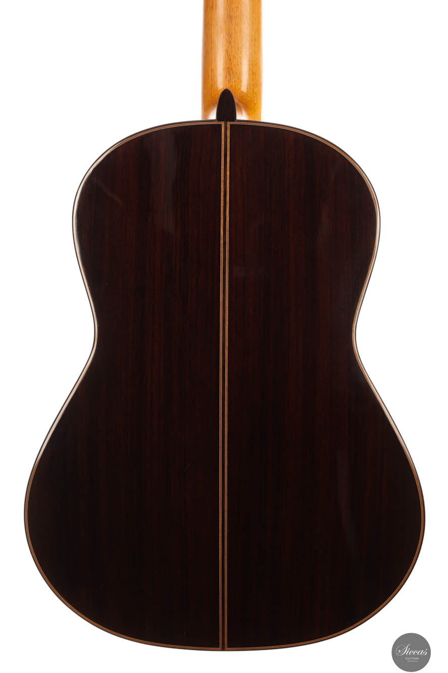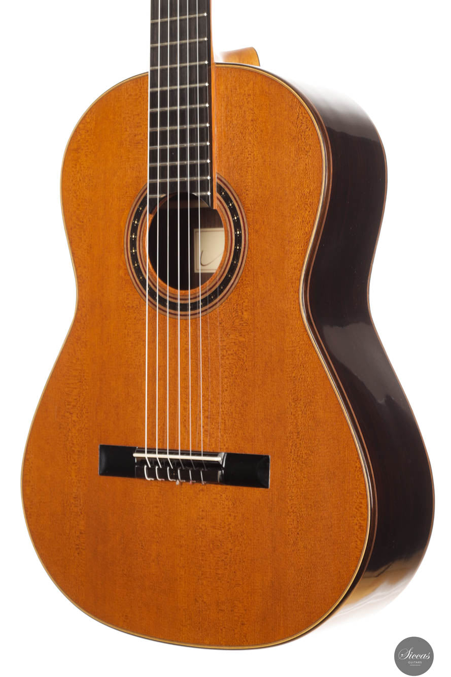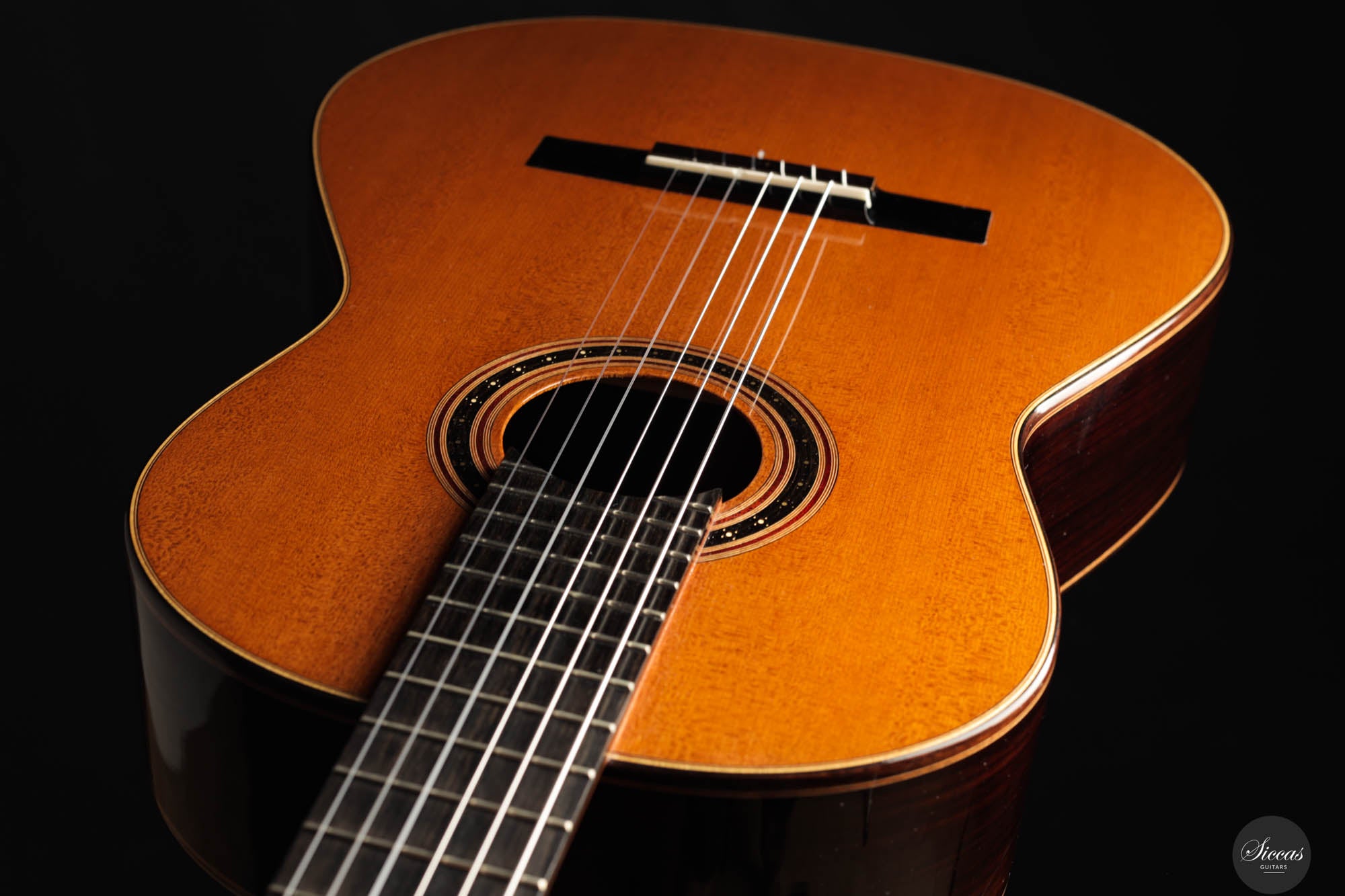 This instrument is a marvel to play, offering exceptional playability that can captivate any guitarist. It features a tiny, strategically placed cleat near the heel on the side, a subtle addition that Jakob incorporates routinely as a preventative measure against potential structural issues. This detail underscores his meticulous approach to durability without compromising the guitar’s aesthetic or sound quality. For enthusiasts and professional musicians alike, owning a Jakob Lebisch guitar means experiencing the blend of artistry and engineering that makes his guitars not just instruments, but true works of art. This particular guitar, free from any structural problems, is a dream to play and a testament to Jakob’s innovative craftsmanship and visionary approach to guitar building.