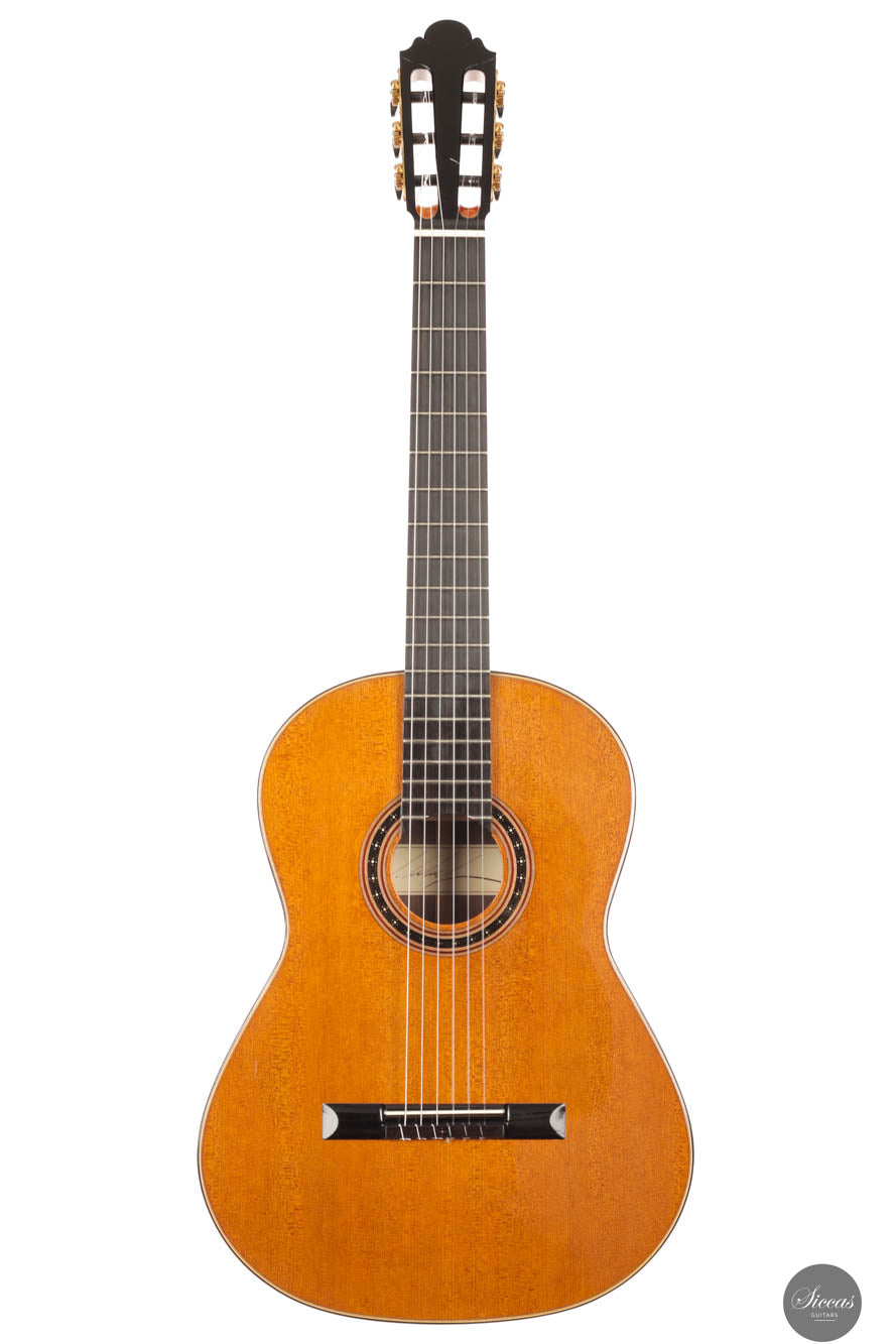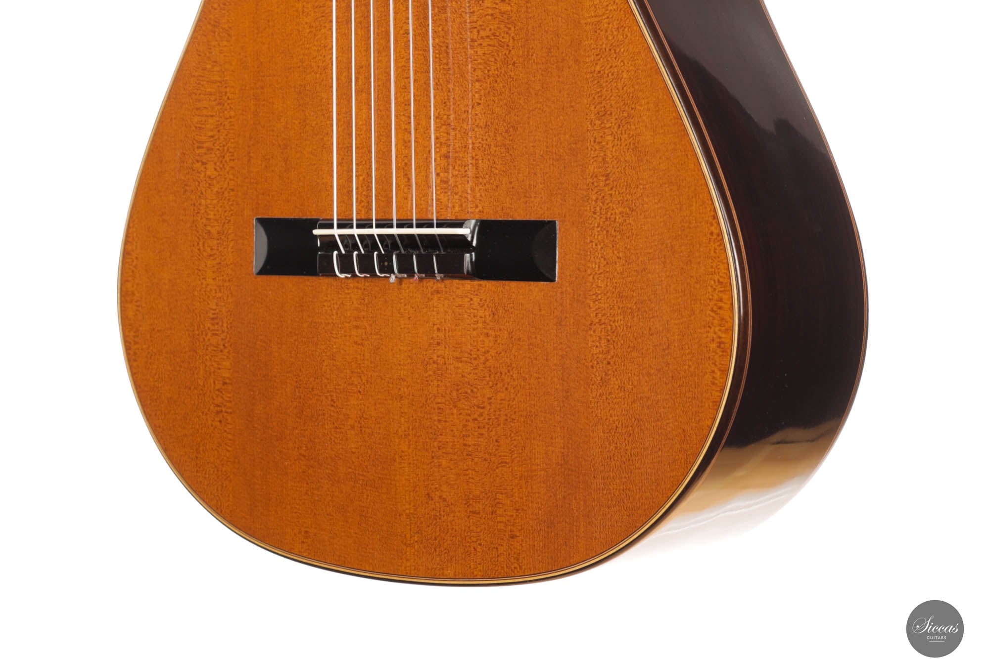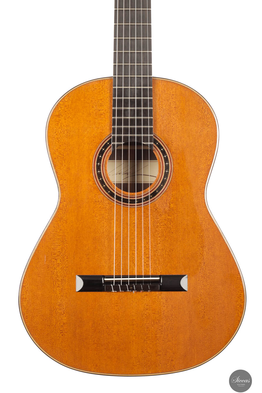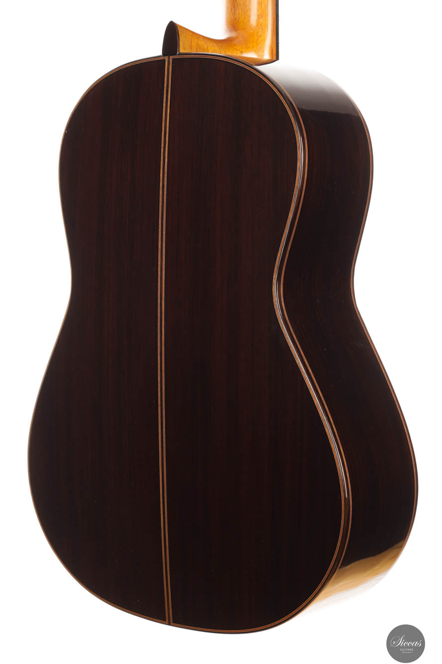 This instrument is a marvel to play, offering exceptional playability that can captivate any guitarist. It features a tiny, strategically placed cleat near the heel on the side, a subtle addition that Jakob incorporates routinely as a preventative measure against potential structural issues. This detail underscores his meticulous approach to durability without compromising the guitar’s aesthetic or sound quality. For enthusiasts and professional musicians alike, owning a Jakob Lebisch guitar means experiencing the blend of artistry and engineering that makes his guitars not just instruments, but true works of art. This particular guitar, free from any structural problems, is a dream to play and a testament to Jakob’s innovative craftsmanship and visionary approach to guitar building.