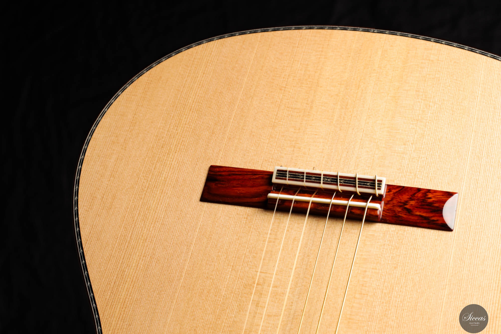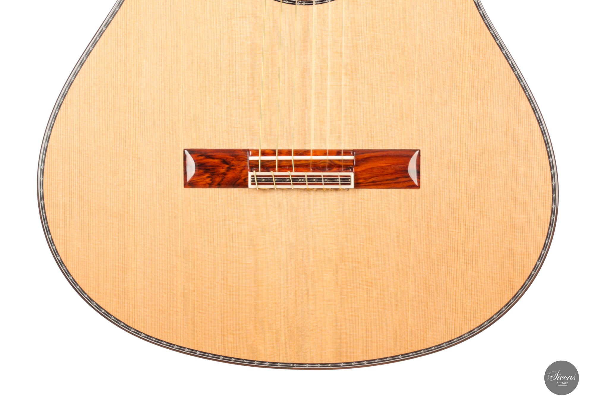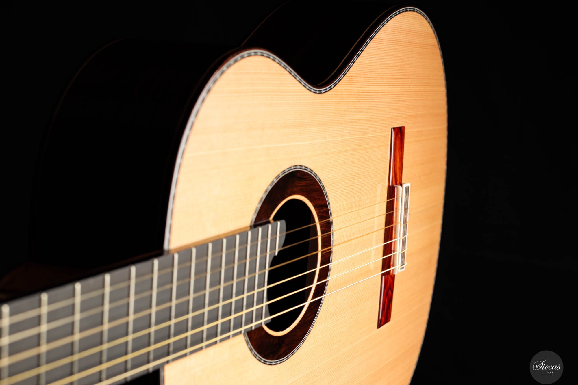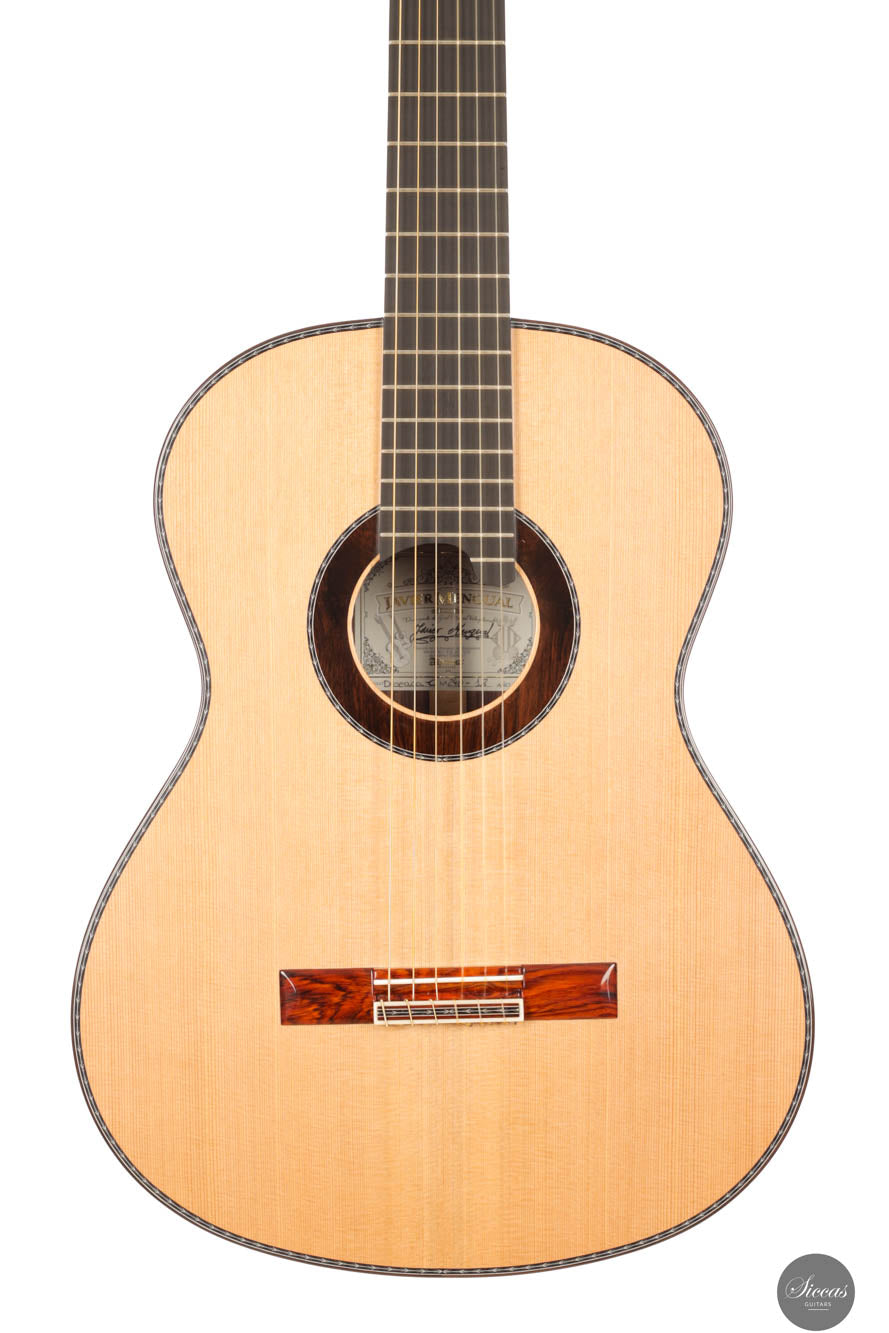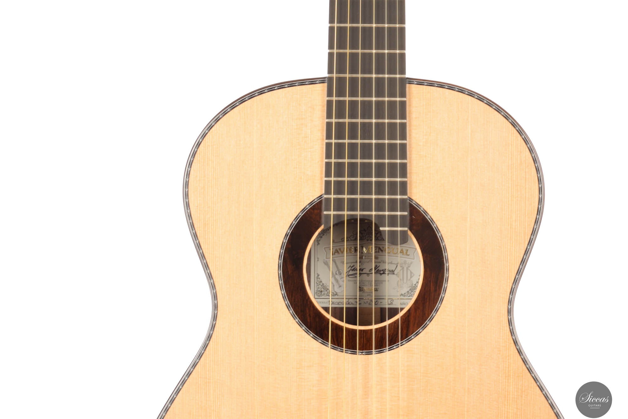 Javier Mengual betrachtet das Modell Deseada als einen seiner größten Erfolge, das die Höhepunkte jahrelanger Rückmeldungen von professionellen Gitarristen und seiner umfangreichen Erfahrungen im Gitarrenbau repräsentiert. Diese Gitarre wurde entwickelt, um den hohen Erwartungen der Spieler gerecht zu werden und bietet einen Klang, der sanft, melodisch und dennoch kraftvoll resonant ist. Sie zeichnet sich durch ein ausgewogenes Gefühl und eine leichte Bauweise aus, die dem Musiker außergewöhnlichen Komfort bietet. Der Einsatz edler Hölzer, wie indisches Rosenholz für den Korpus und kamerunisches Ebenholz für das Griffbrett, entspricht den Traditionen des spanischen Gitarrenbaus und gewährleistet sowohl Qualität als auch ästhetische Eleganz. Die Deseada ist nicht nur ein Musikinstrument, sondern auch eine Hommage an Javiers Frau, die ein Leben voller gemeinsamer Arbeit und Erfahrungen feiert, und an die professionellen Gitarristen, die den authentischen Klang Spaniens suchen.