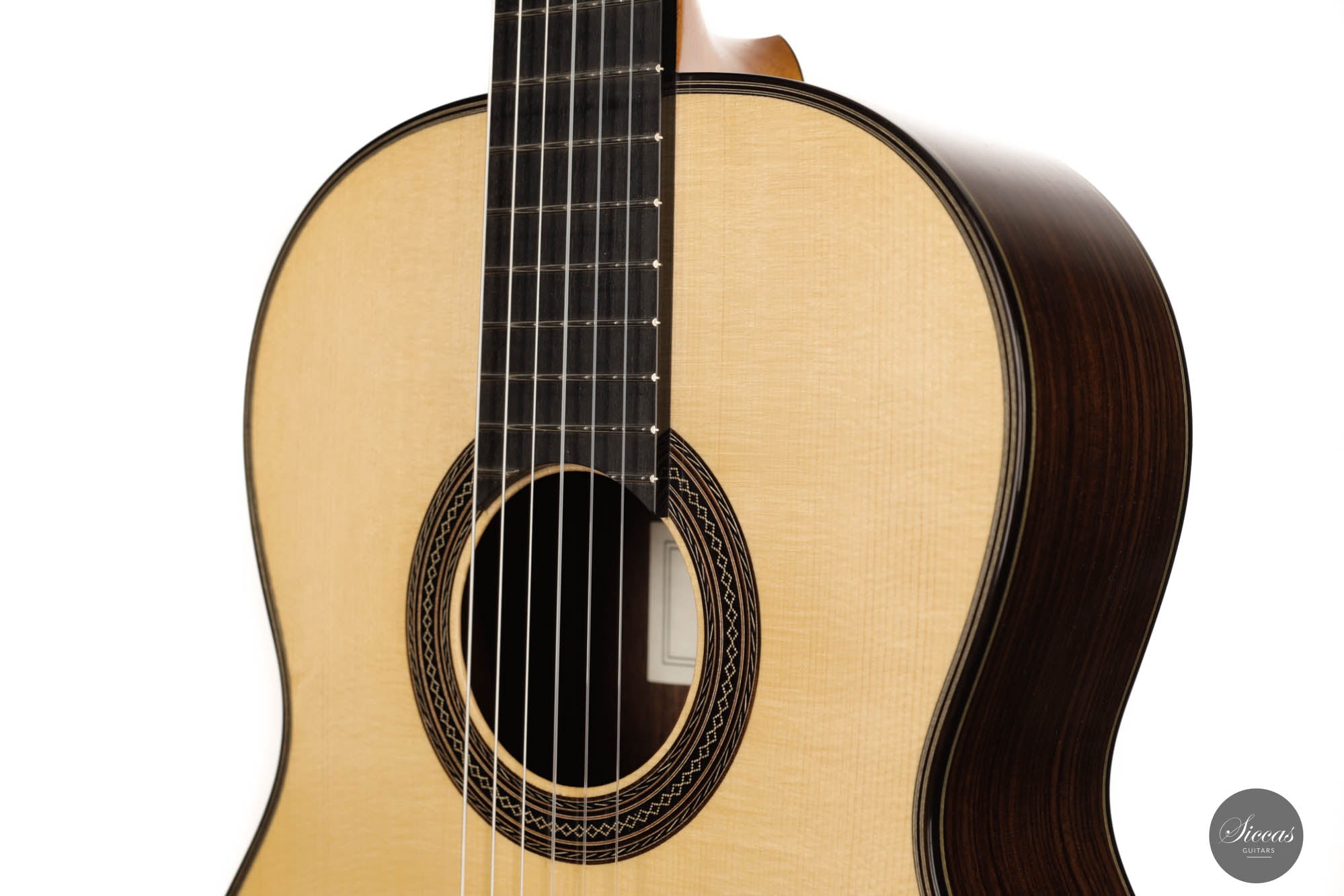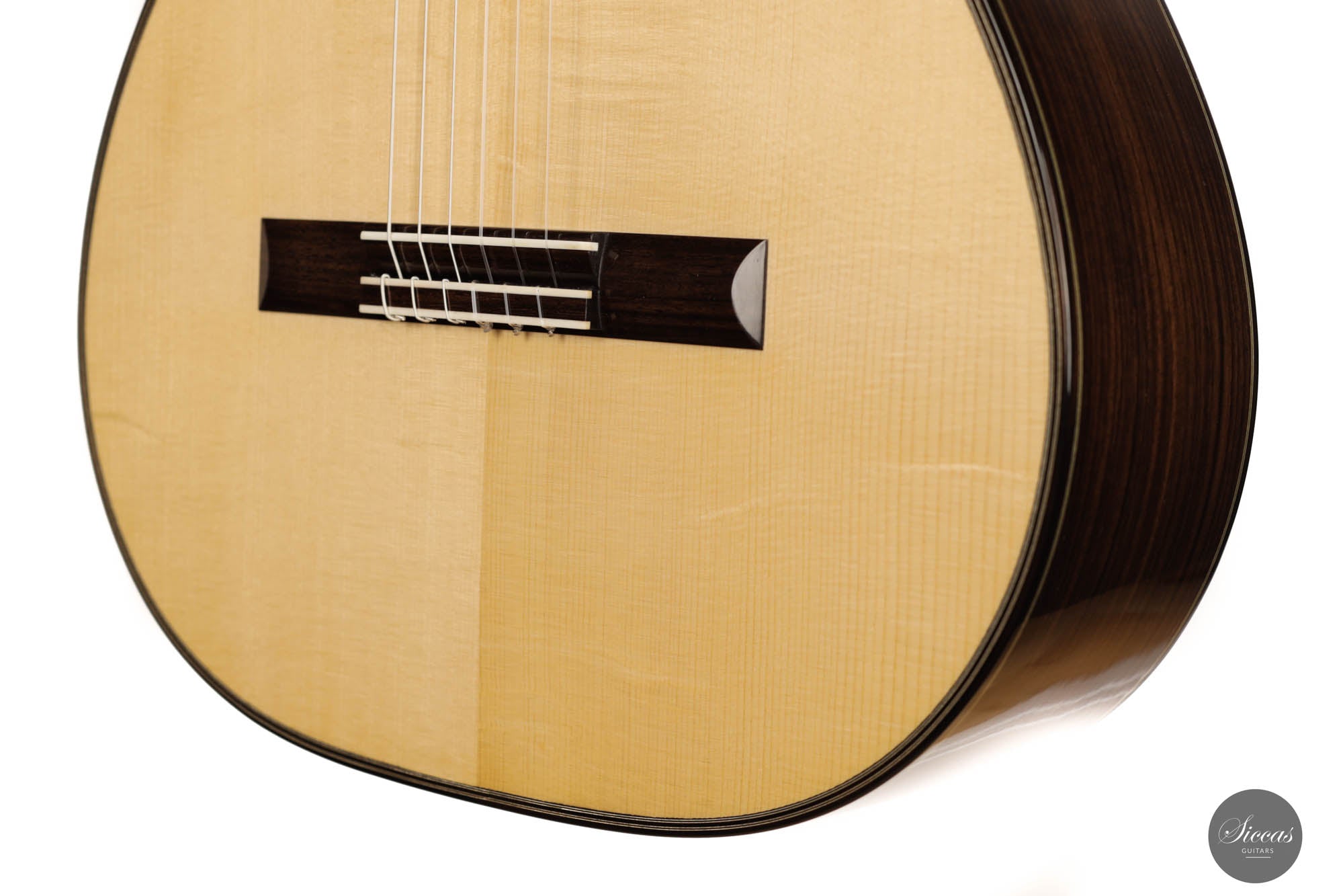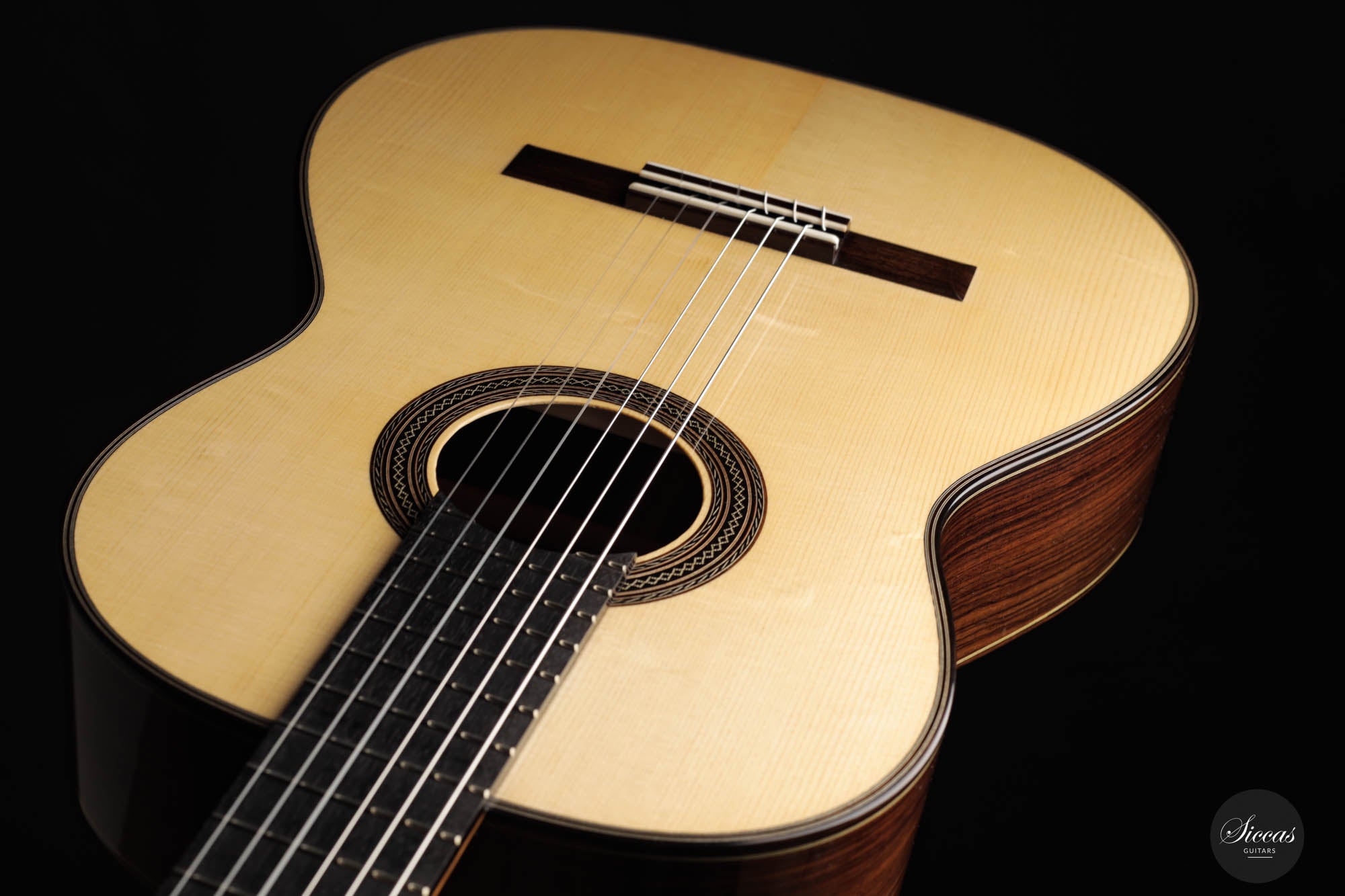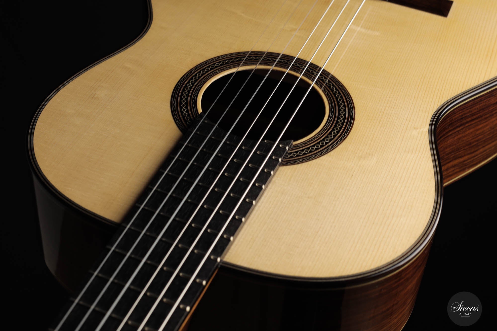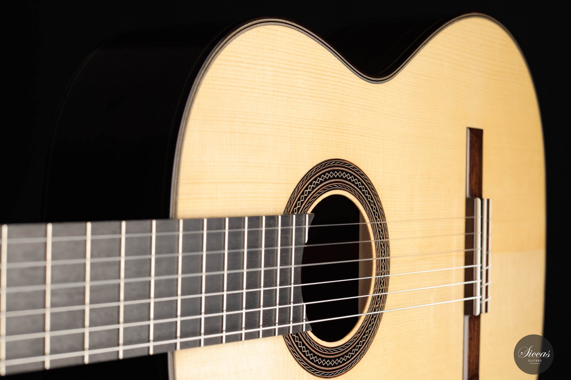 This model by Jean Marquet is based on a German guitar from 1937. A particularly striking detail is the hazel spruce top, which displays beautiful grain and accentuates the overall classy and elegant design. This “Belgian beauty” also has a lot to offer regarding sound. This traditionally built instrument is comparatively lightweight, and as a guitarist, one gets direct feedback from the entire body when playing. It is a classical guitar with excellent sound volume, impressive bass, crystal clear trebles, and an abundance of overtones that give the guitar a full-bodied and interesting sound character. It is a great pleasure to play this guitar because of its excellent playability, and it rewards the player with many timbres and inspiring musical moments.