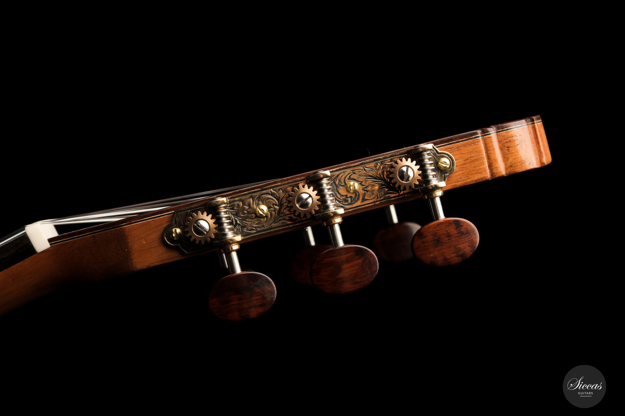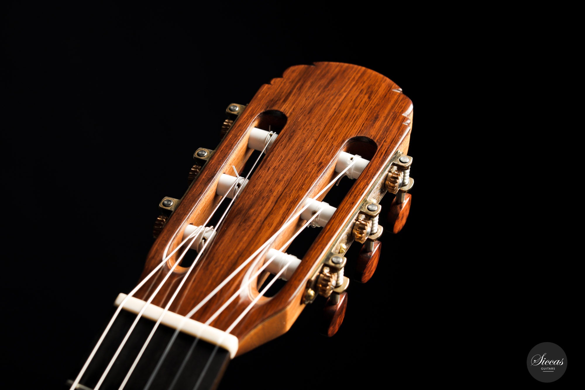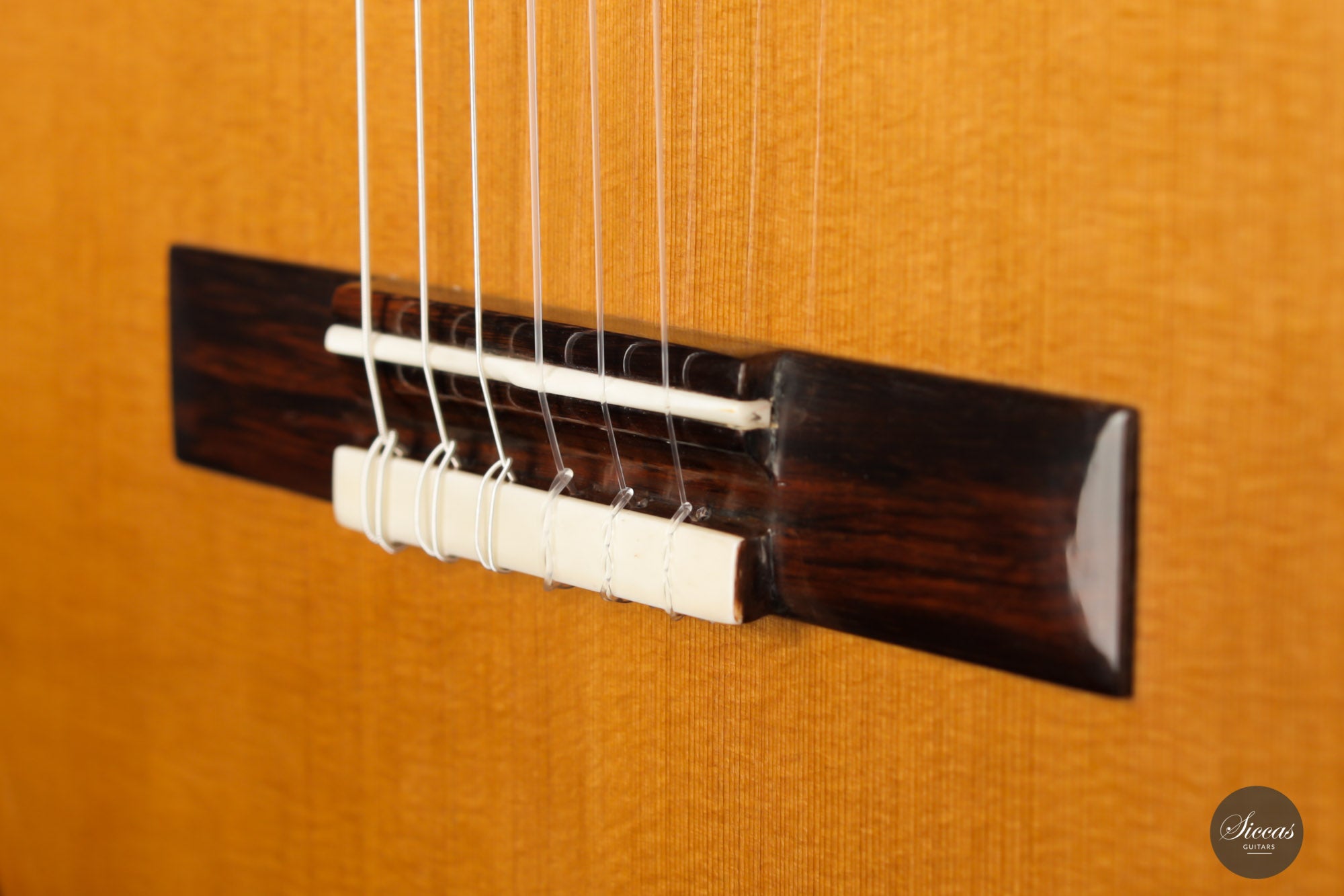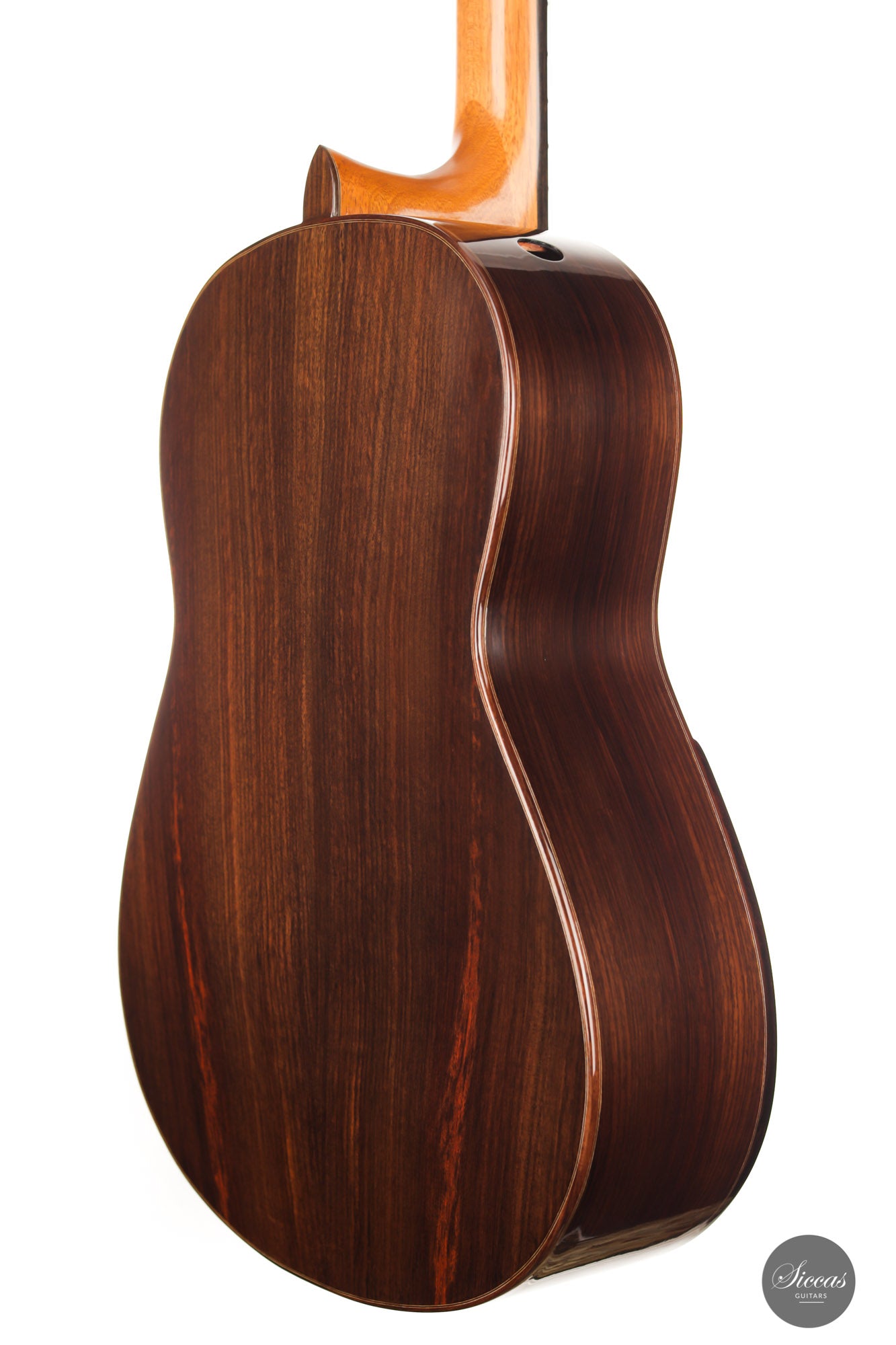 For this guitar, he used a Nomex core for most of the soundboard surface and a balsa core for the bridge area. This unique approach provides all the benefits of double-top construction, such as tonal volume, direct response and a wider dynamic range, plus an extra organic and natural touch to the sound. There is a small additional sound port on the side of the guitar that can help the musician to play more dynamically and gives them direct feedback, a very nice feature. The raised fingerboard is helpful when playing in the upper registers of the fretboard. The cedar top gives this guitar a dark and smooth tonal character with a comprehensive richness. The rich and gritty treble, coupled with rich basses, make for a powerful instrument that is by no means overwhelming but very inspiring for the guitarist.