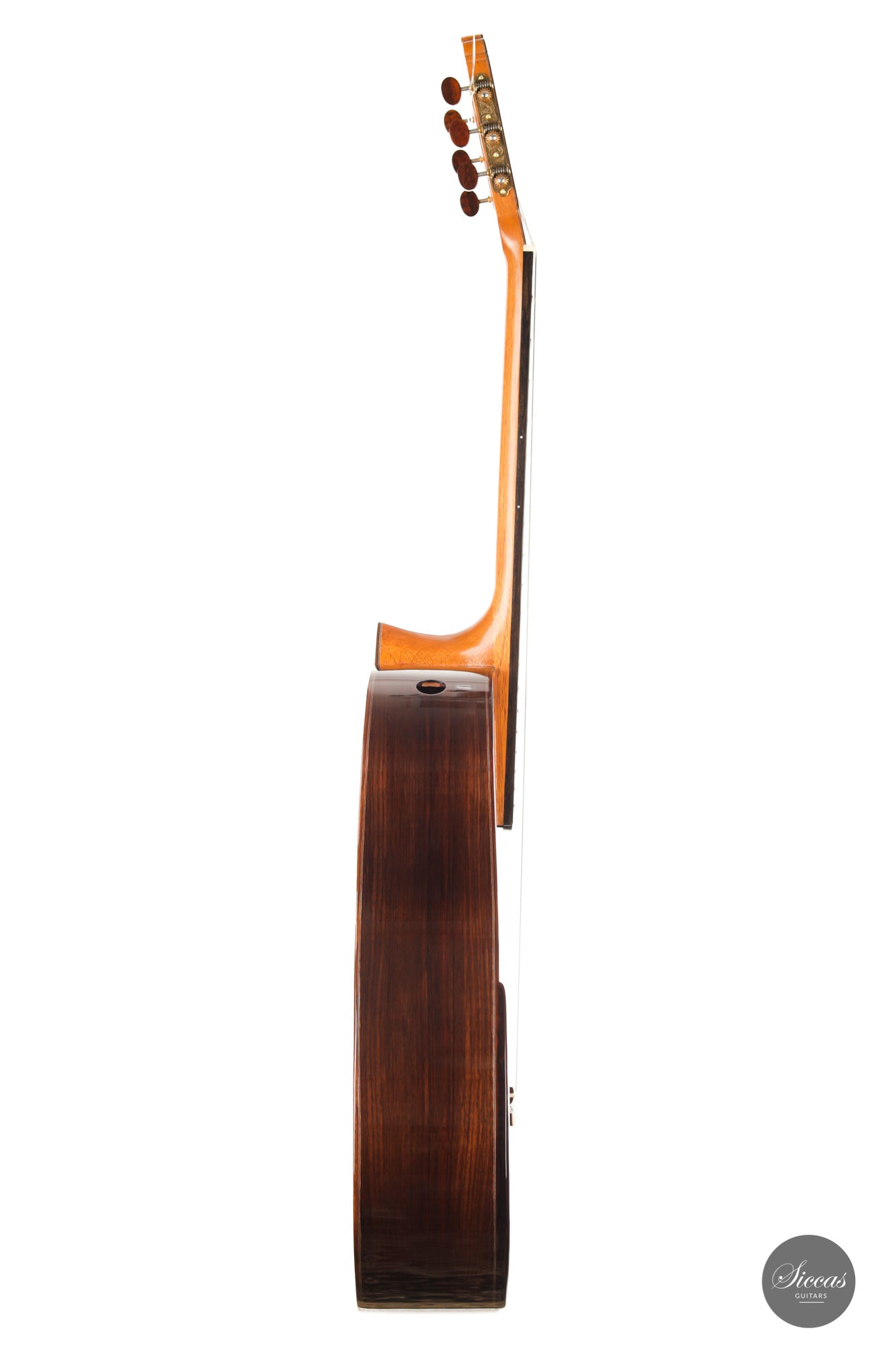 Jean-Noel Lebreton is a French luthier living near Avrillé in France. After successfully studying at the College of furniture in London from 1989 to 1993, he opened his first workshop in 1997. He has since specialized in double-top classical guitars, exploring the various possibilities offered by this sophisticated technique. Interestingly, he uses both Nomex core and balsa core techniques, mapping the resonant range of the top with one or the other to achieve a unique sound.