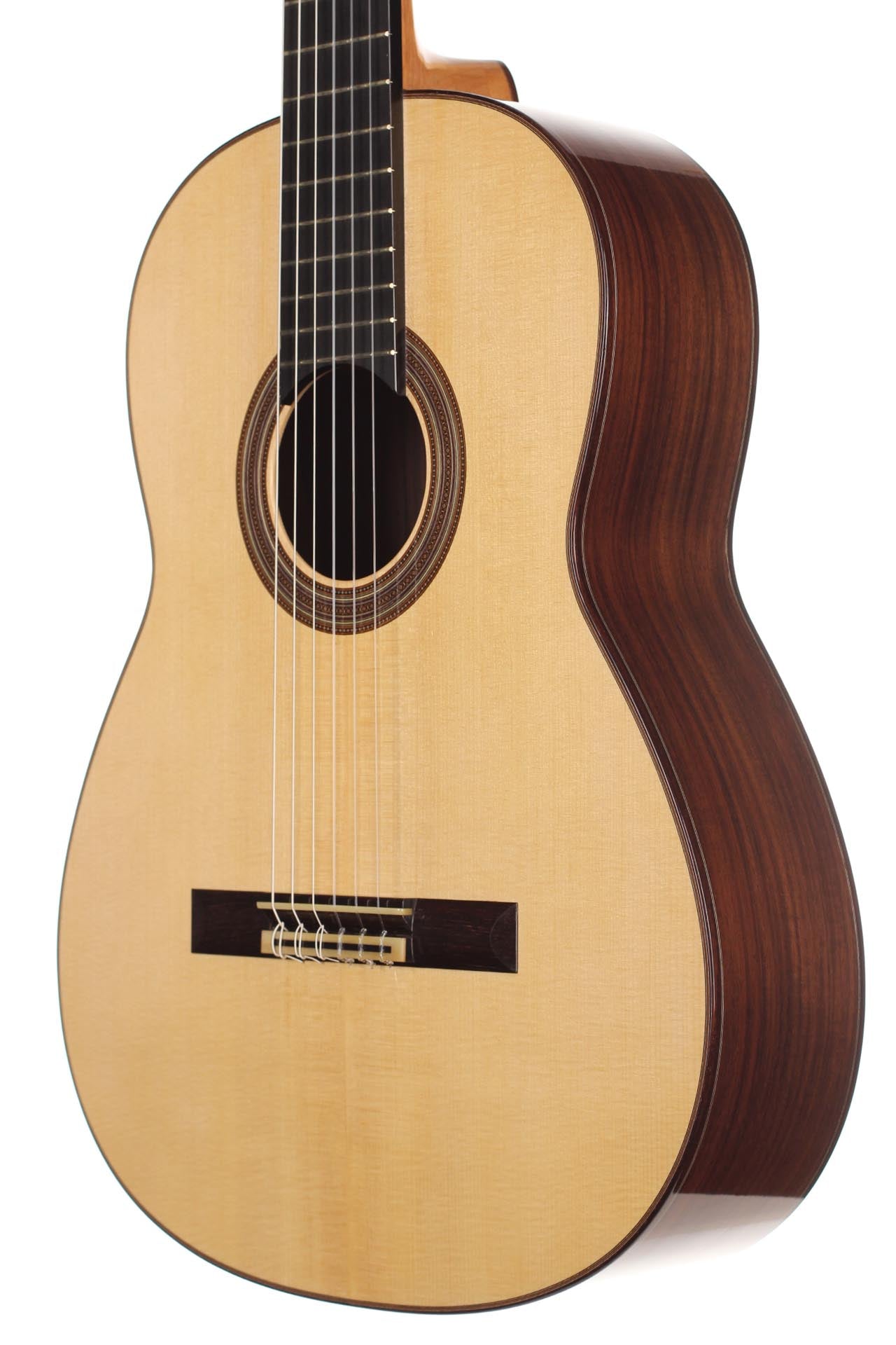 Die klassische Gitarre mit ihren weichen Nylonsaiten und ihrem charakteristischen Timbre ist zum Symbol der Kammermusik, der spanischen Tradition und des Konzertrepertoires geworden. Ihre moderne Form prägte Antonio de Torres im 19. Jahrhundert, indem er den Standard für Korpus, Fächerbeleistung und die 65-Zentimeter-Mensur setzte, die bis heute verwendet werden. Instrumente dieser Kategorie eröffnen eine reiche Palette von den feinen romantischen Miniaturen Tárregas bis zu den majestätischen Konzerten Rodrigos. Hier finden Sie Gitarren, die historische Kontinuität bewahren und zugleich zu neuen Interpretationen anregen.Alle Klassische Gitarren ansehen -