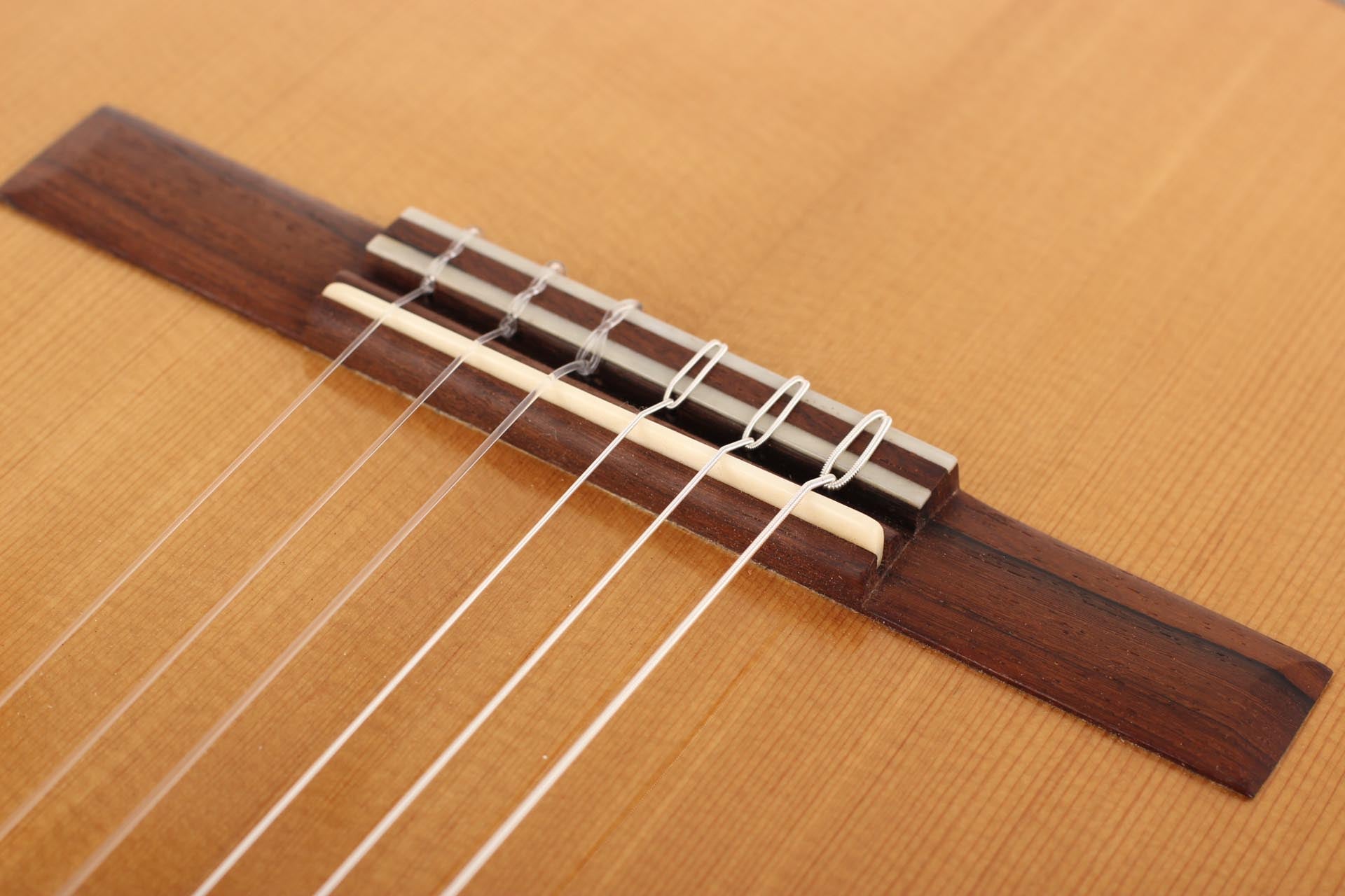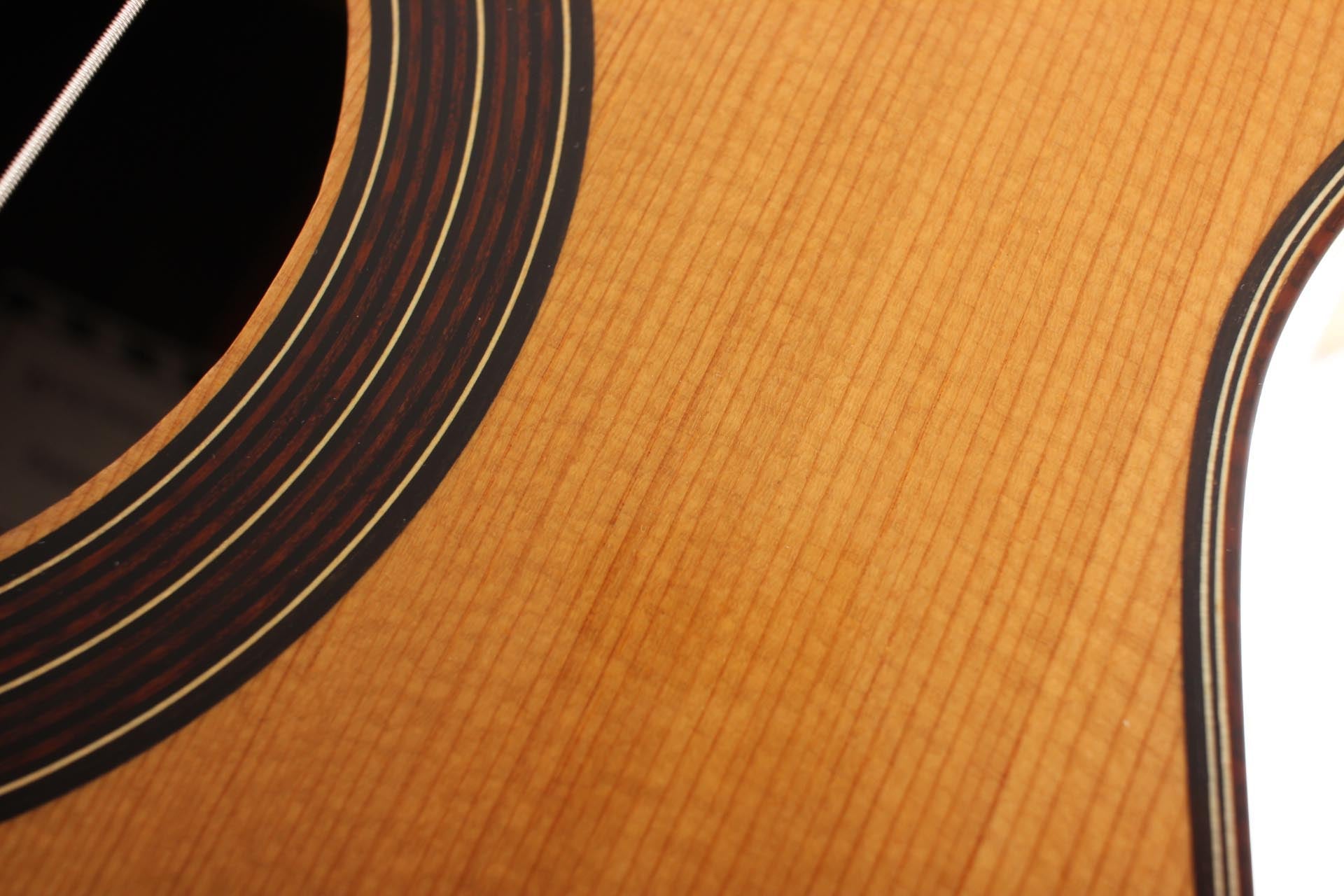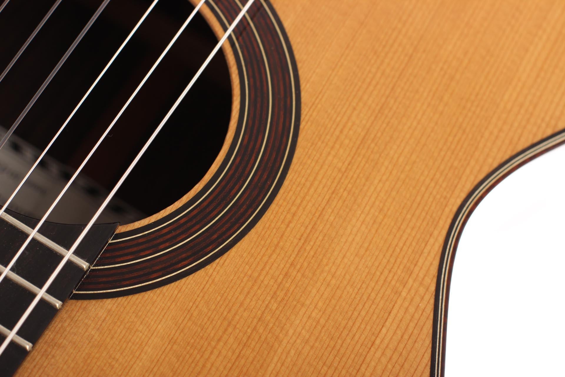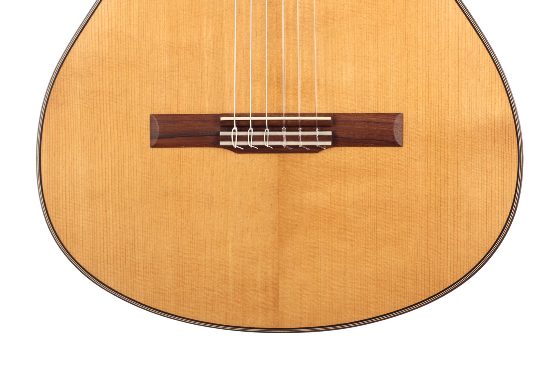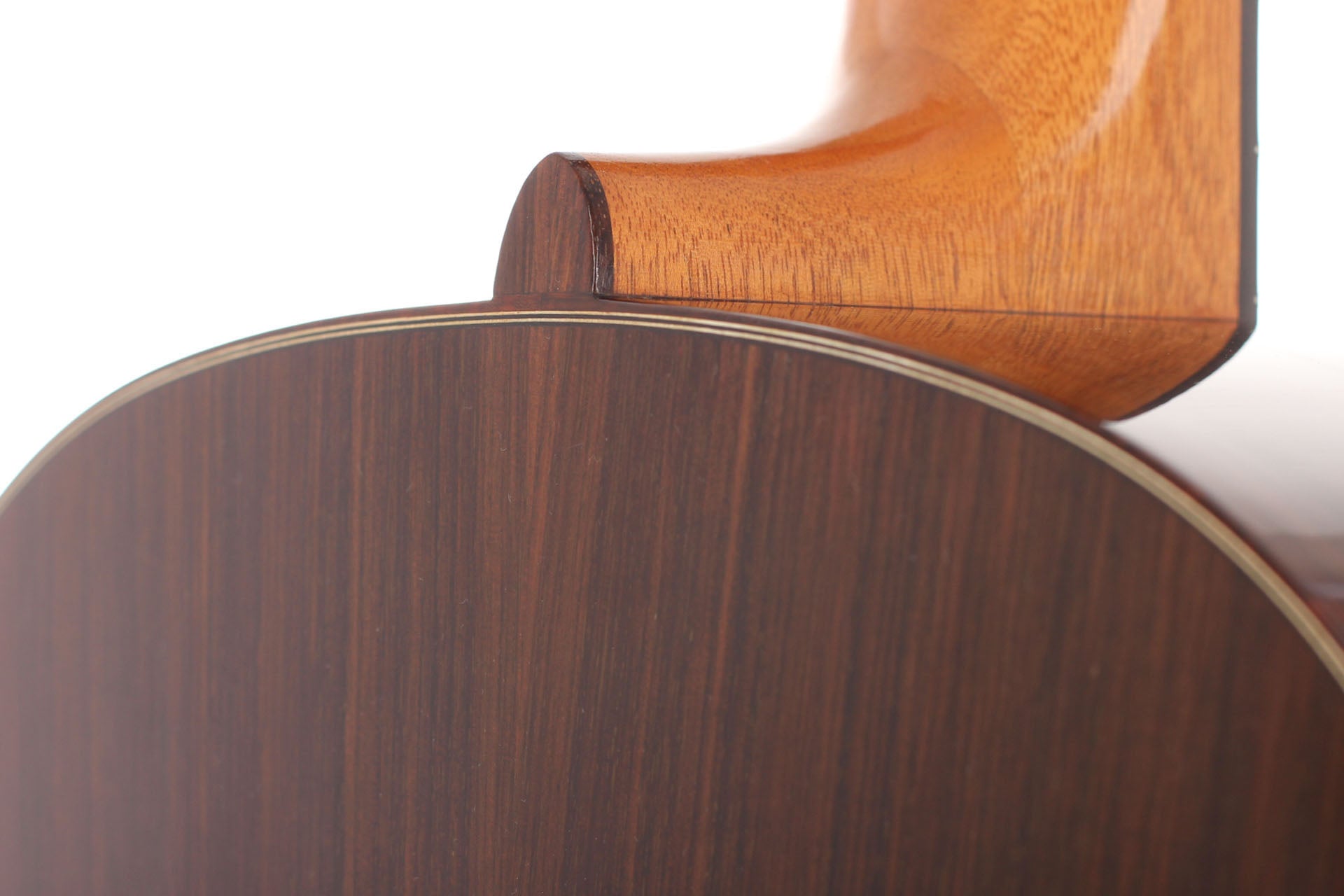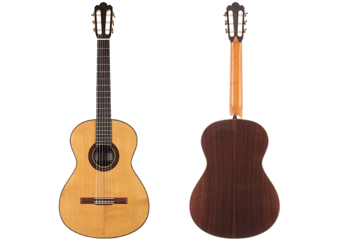 Jérôme Casanova ist ein französischer Gitarrenbauer, der 2003 seine eigene Werkstatt eröffnet hat. Er baut drei bis vier Gitarren im Jahr und widmet sich die übrige Arbeitszeit der Restaurierung von Zupfinstrumenten. Diese Gitarre von Jérôme hat eine Fichtendecke und ist traditionell beleistet. Boden und Zargen sind aus feinsten indischen Palisander gefertigt. Wunderschön ist ebenso das Schlangenholz Binding, das die Decke und den Boden umrahmt. Der Klang ist sehr voluminös und hat sehr viel Projektionskraft. Der Diskant klingt klar und brillant und weißt keine Schwächen auf. Was besonders auffällt, ist die leichte Bespielbarkeit der Gitarre. Veredelt wurde die Gitarre mit einer Schellack Handpolitur und Mechaniken von Alessi. Ein Hiscox Pro II Hartschalenkoffer ist inklusive.