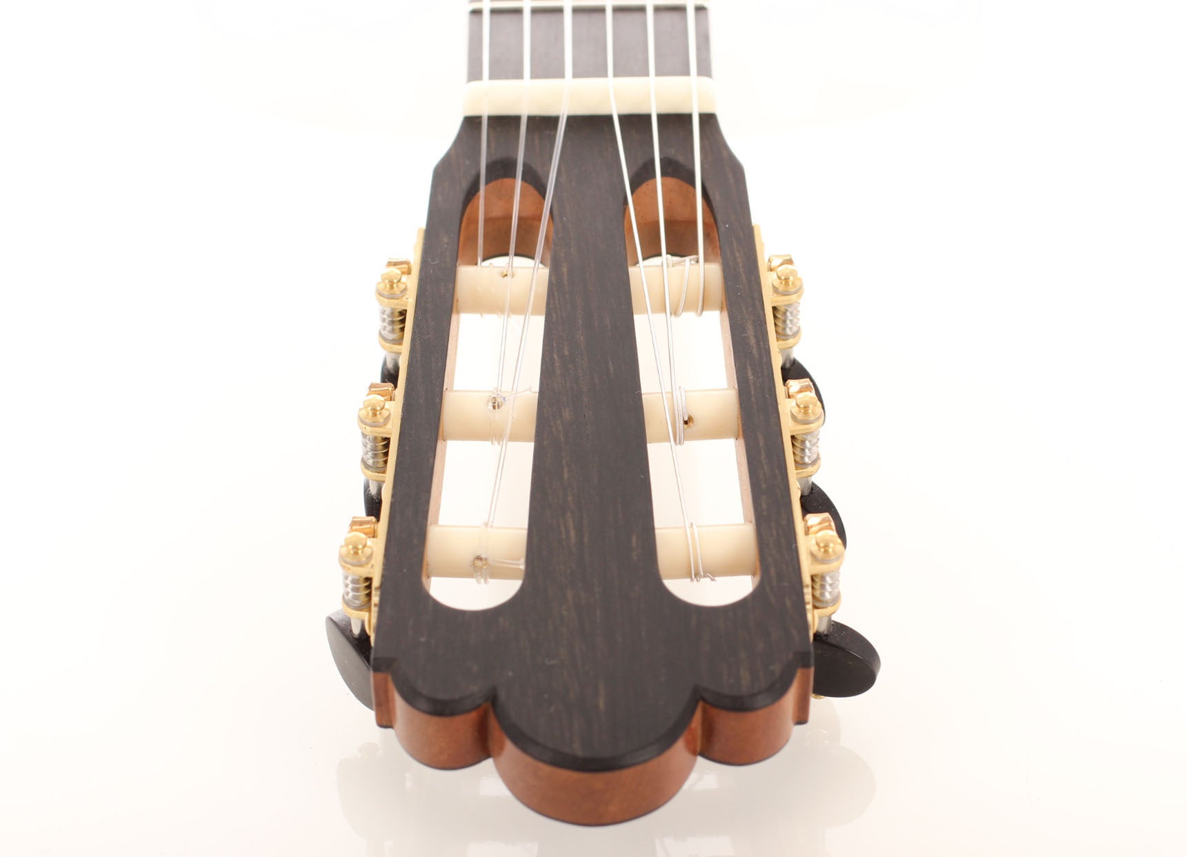 Die klassische Gitarre mit ihren weichen Nylonsaiten und ihrem charakteristischen Timbre ist zum Symbol der Kammermusik, der spanischen Tradition und des Konzertrepertoires geworden. Ihre moderne Form prägte Antonio de Torres im 19. Jahrhundert, indem er den Standard für Korpus, Fächerbeleistung und die 65-Zentimeter-Mensur setzte, die bis heute verwendet werden. Instrumente dieser Kategorie eröffnen eine reiche Palette von den feinen romantischen Miniaturen Tárregas bis zu den majestätischen Konzerten Rodrigos. Hier finden Sie Gitarren, die historische Kontinuität bewahren und zugleich zu neuen Interpretationen anregen.