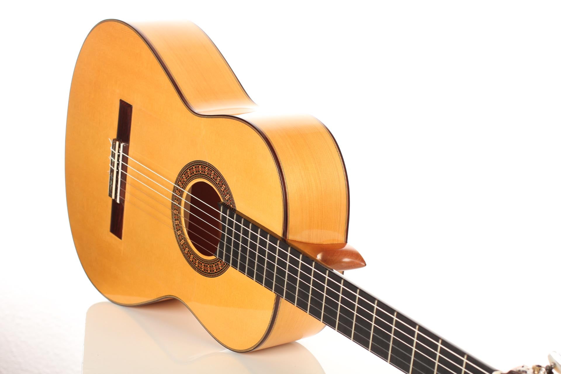Diese Gitarre wurde 2018 gebaut und ist brandneu. Sie hat eine Fichtendecke und Boden und Zargen sind aus Zypresse gefertigt. Die Qualität der ausgewählten Hölzer, sowie der reichhaltige und volle Klangcharakter machen dieses Instrument zu einer sehr feinen Flamenco-Gitarre. Die Projektionskraft ist beindruckend und auch die Definition der Stimmen ist hervorragend. Ein Hartschalenkoffer ist inklusive.