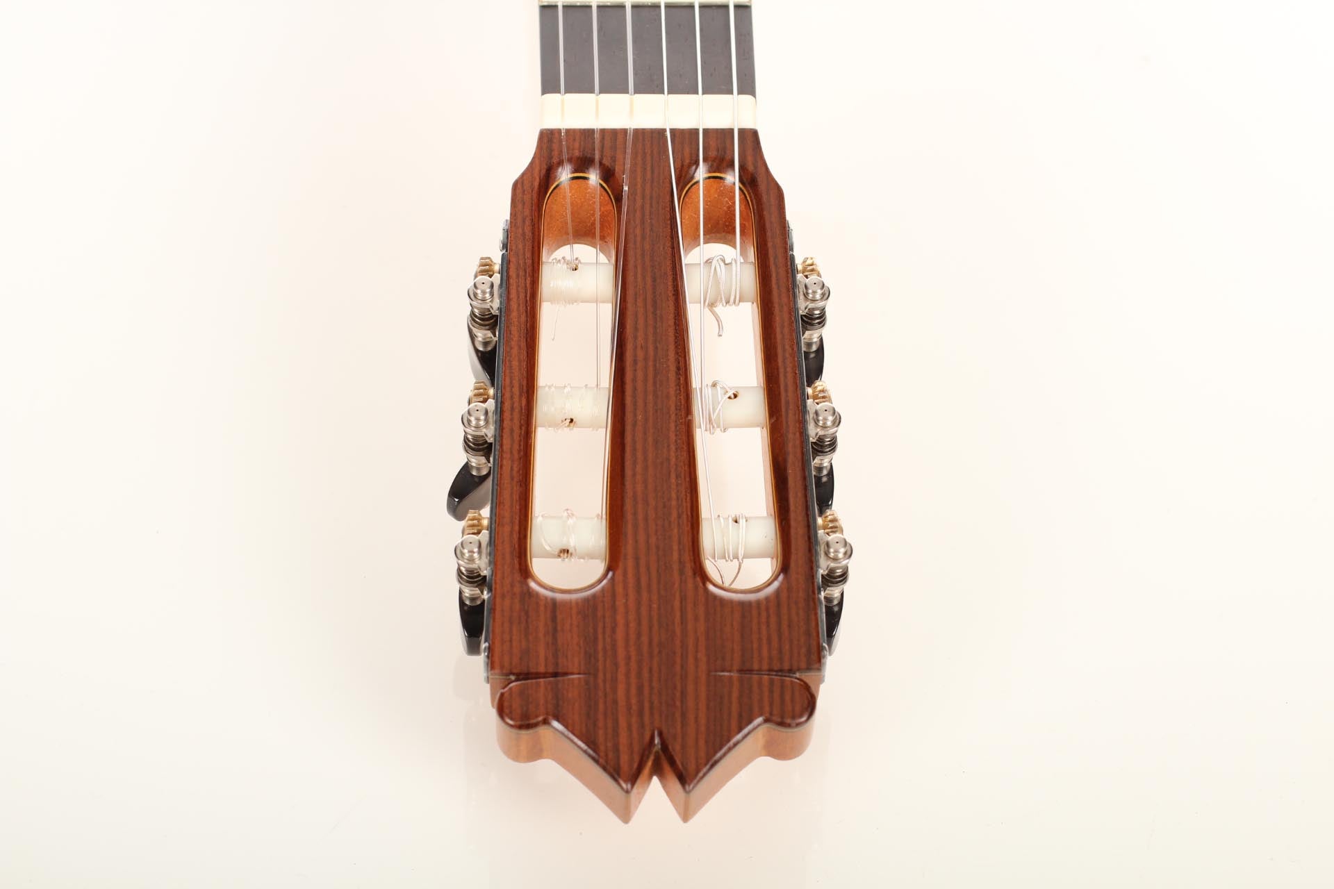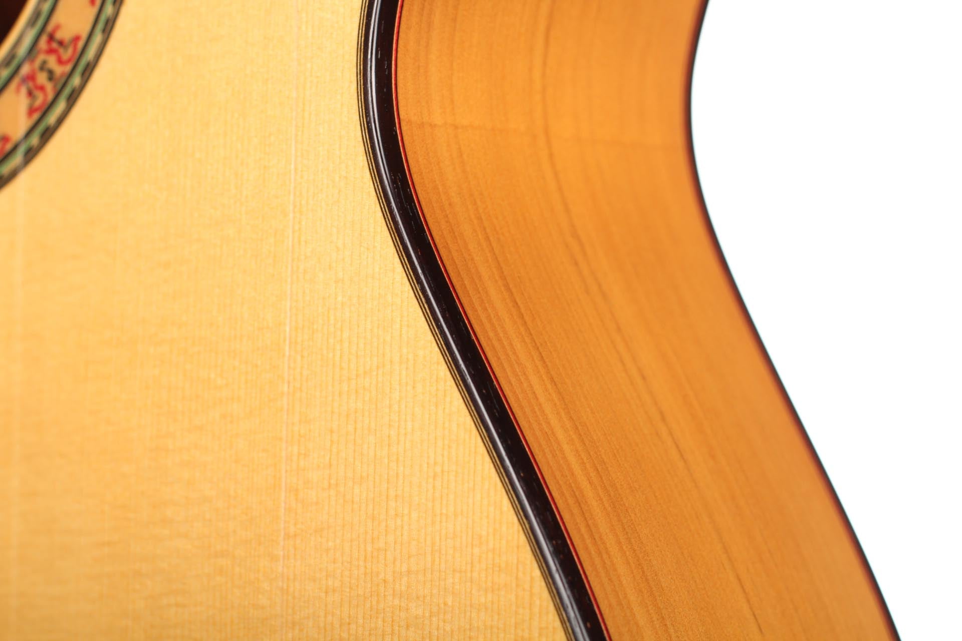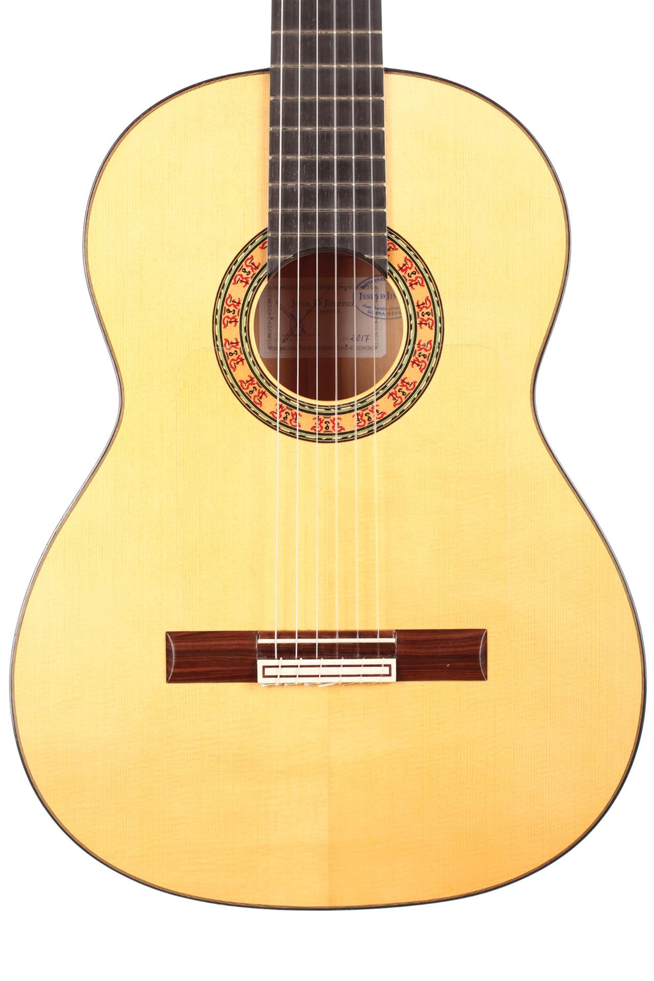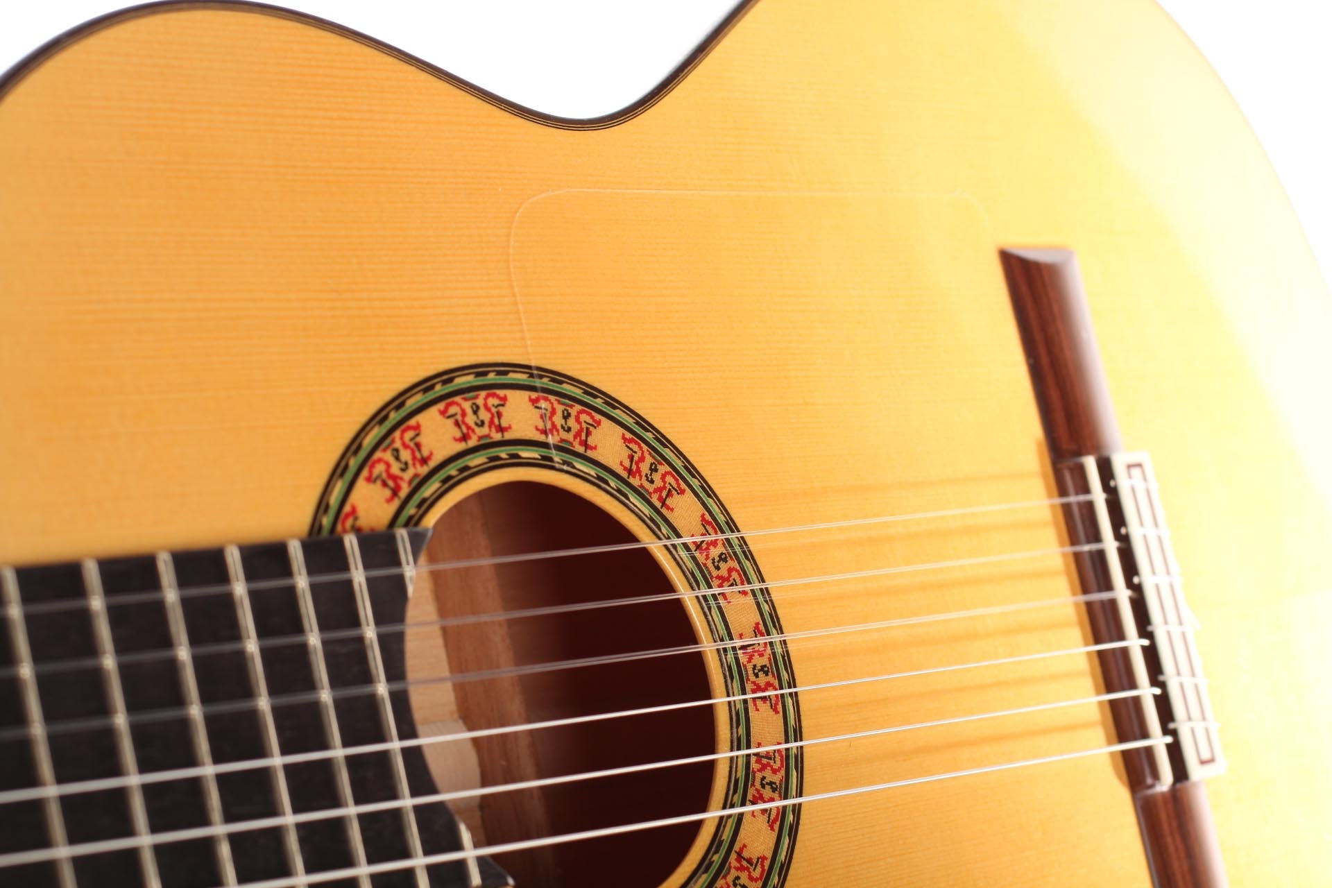 The top is made of German spruce and back/sides are made of beautiful best quality Spanish cypress. The very accentuated flamenco sound has great volume and is very powerful. The trebles are very clear and brilliant while being very balanced between basses and trebles. The tuners are made by Fustero. A hard-shell case is included. This guitar is Cites-free (CF).