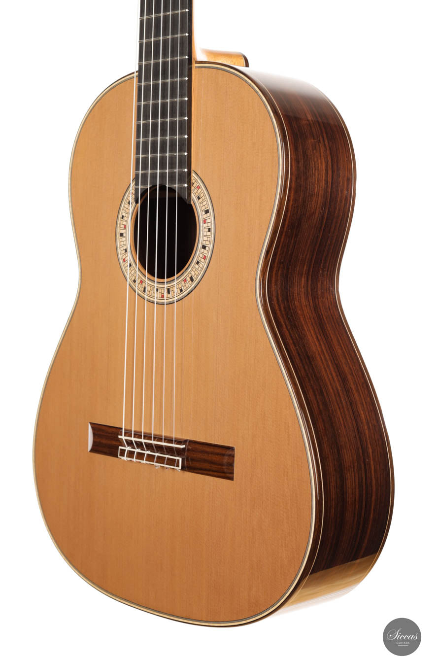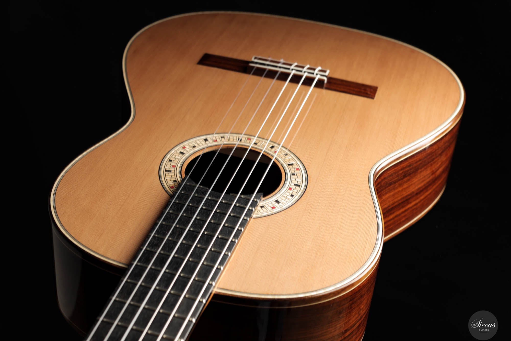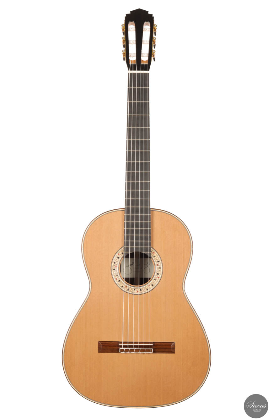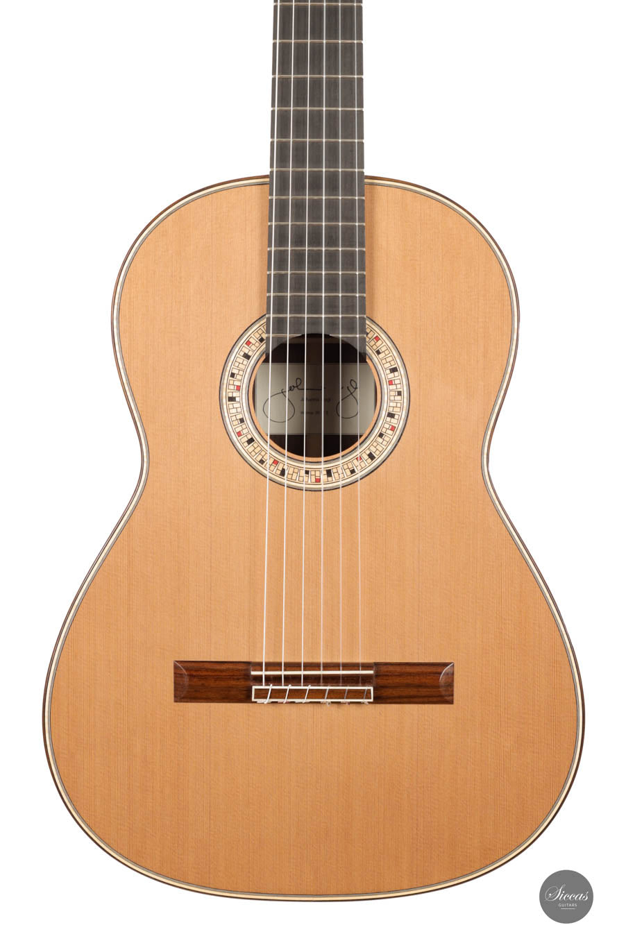 Die 2023er Johanna Vogl Gitarre erstrahlt als leuchtendes Beispiel dafür, wie traditionelles spanisches Gitarrenhandwerk wunderschön mit modernen Innovationen verschmolzen werden kann, um eine Konzertklassikgitarre zu kreieren, die sowohl mit Geschichte als auch mit zeitgenössischer Kunstfertigkeit resoniert. Inspiriert vom verehrten Gitarrenbauer Jose L. Romanillos, hat Johanna Vogl geschickt ein Instrument geschaffen, das zeitloses Design verkörpert und gleichzeitig moderne Fortschritte im Gitarrenbau umarmt. Die auf E/F abgestimmte Zedern-Schalldecke verleiht den Bassklängen eine sowohl tiefe als auch fesselnde Lebenskraft. Diese tiefe und eindringliche Klangqualität bereichert die Resonanz der Gitarre und macht sie zu einem herausragenden Instrument. Diese reichen Bässe werden durch Höhen ergänzt, die mit kristallklarer Klarheit glänzen und eine ausgewogene und charmante Präsenz im gesamten Klangspektrum der Gitarre schaffen. Diese sorgfältige Balance des Klangs gewährleistet ein fesselndes Erlebnis sowohl für Spieler als auch für Zuhörer und zeigt Vogls außergewöhnliches Können bei der Stimmgebung des Instruments.