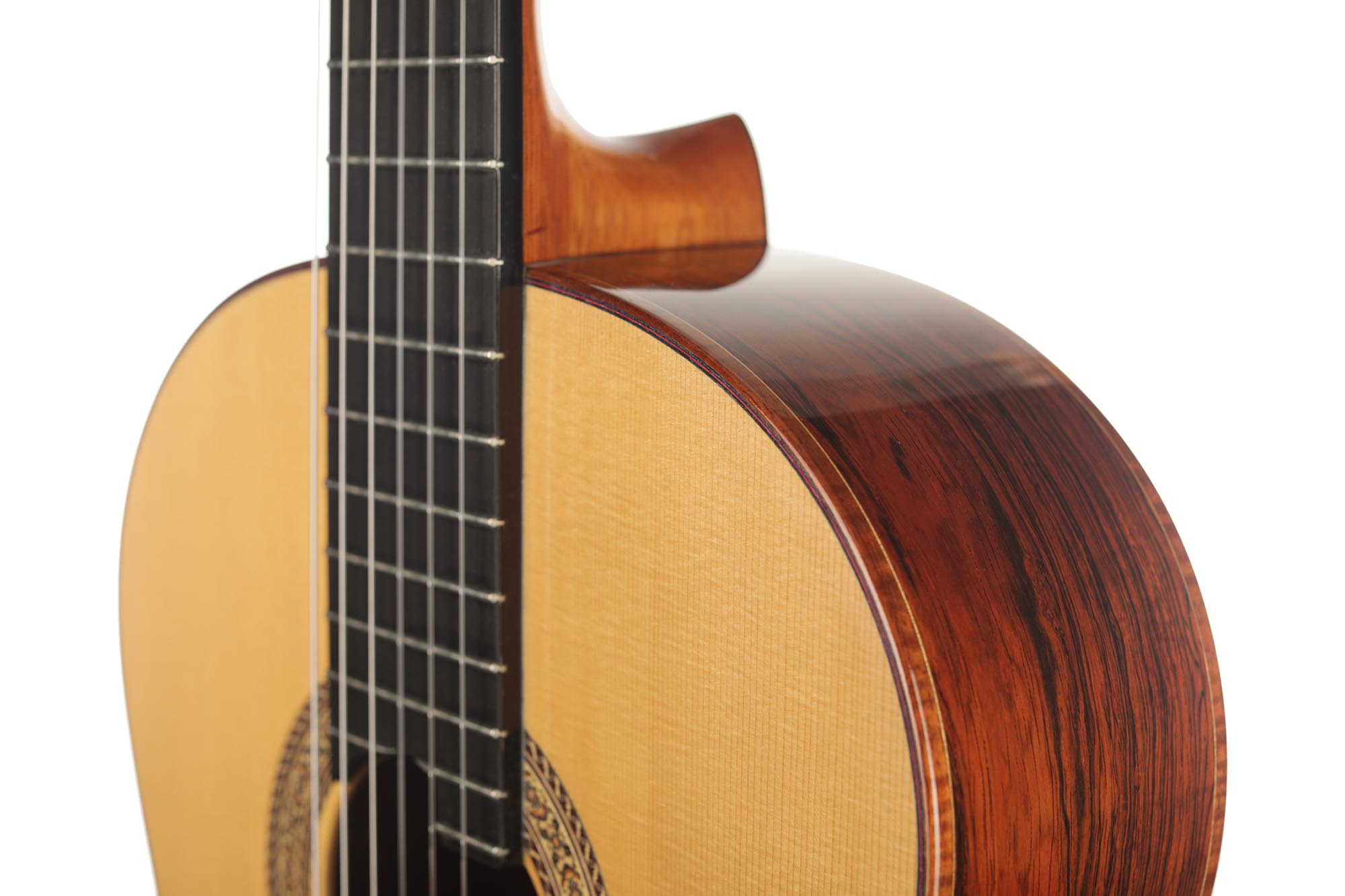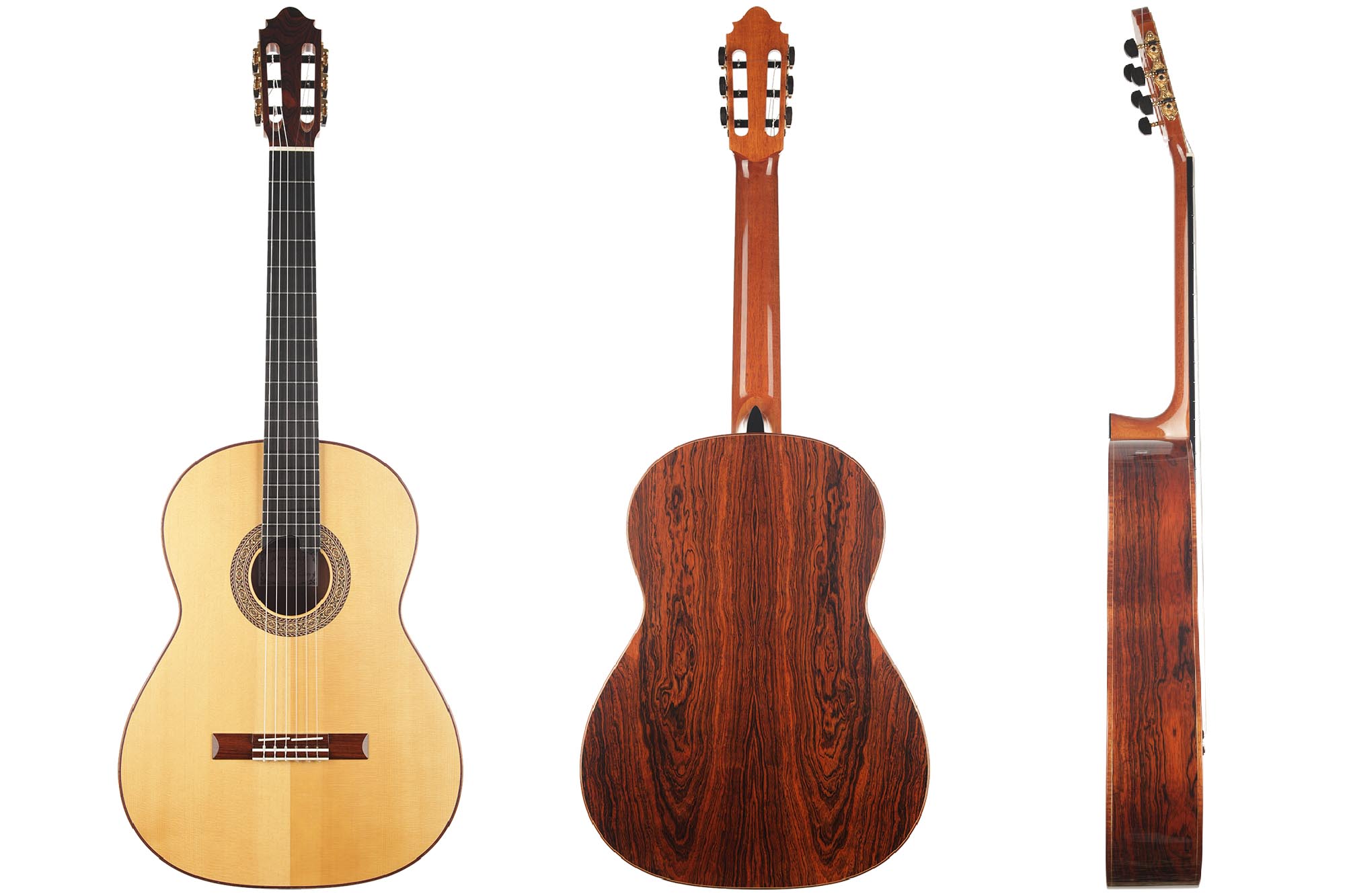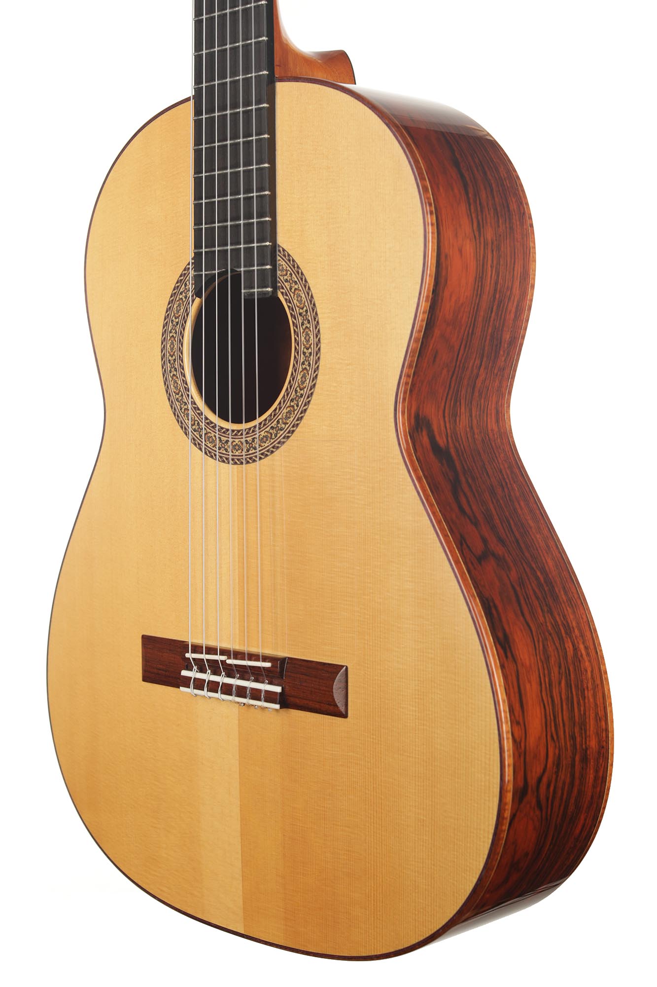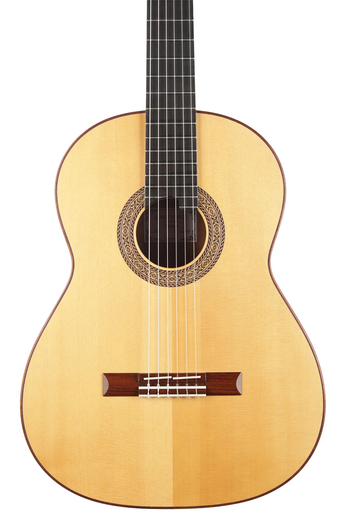 Die klassische Gitarre mit ihren weichen Nylonsaiten und ihrem charakteristischen Timbre ist zum Symbol der Kammermusik, der spanischen Tradition und des Konzertrepertoires geworden. Ihre moderne Form prägte Antonio de Torres im 19. Jahrhundert, indem er den Standard für Korpus, Fächerbeleistung und die 65-Zentimeter-Mensur setzte, die bis heute verwendet werden. Instrumente dieser Kategorie eröffnen eine reiche Palette von den feinen romantischen Miniaturen Tárregas bis zu den majestätischen Konzerten Rodrigos. Hier finden Sie Gitarren, die historische Kontinuität bewahren und zugleich zu neuen Interpretationen anregen.