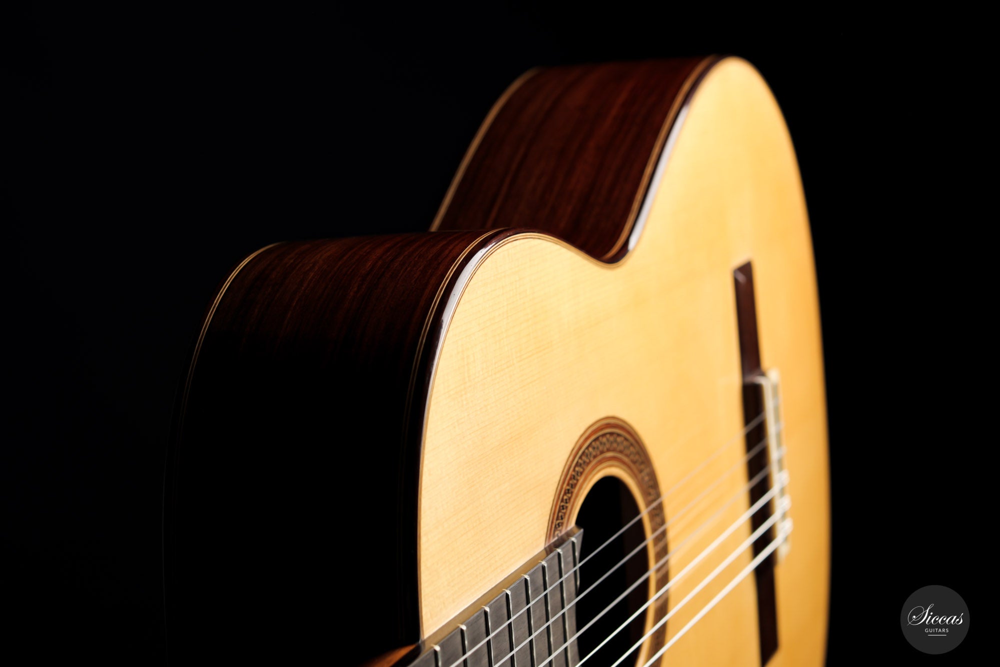 This wonderful guitar built by John Ray has a fantastic Spanish character with deep basses and sining refined trebles. The sound compares to Spanish guitars of a much higher value. When inspecting the guitar, the build quality is great with nifty details that enhances the overall impression of the instrument. If you are looking for a true Spanish concert guitar this one is for you.