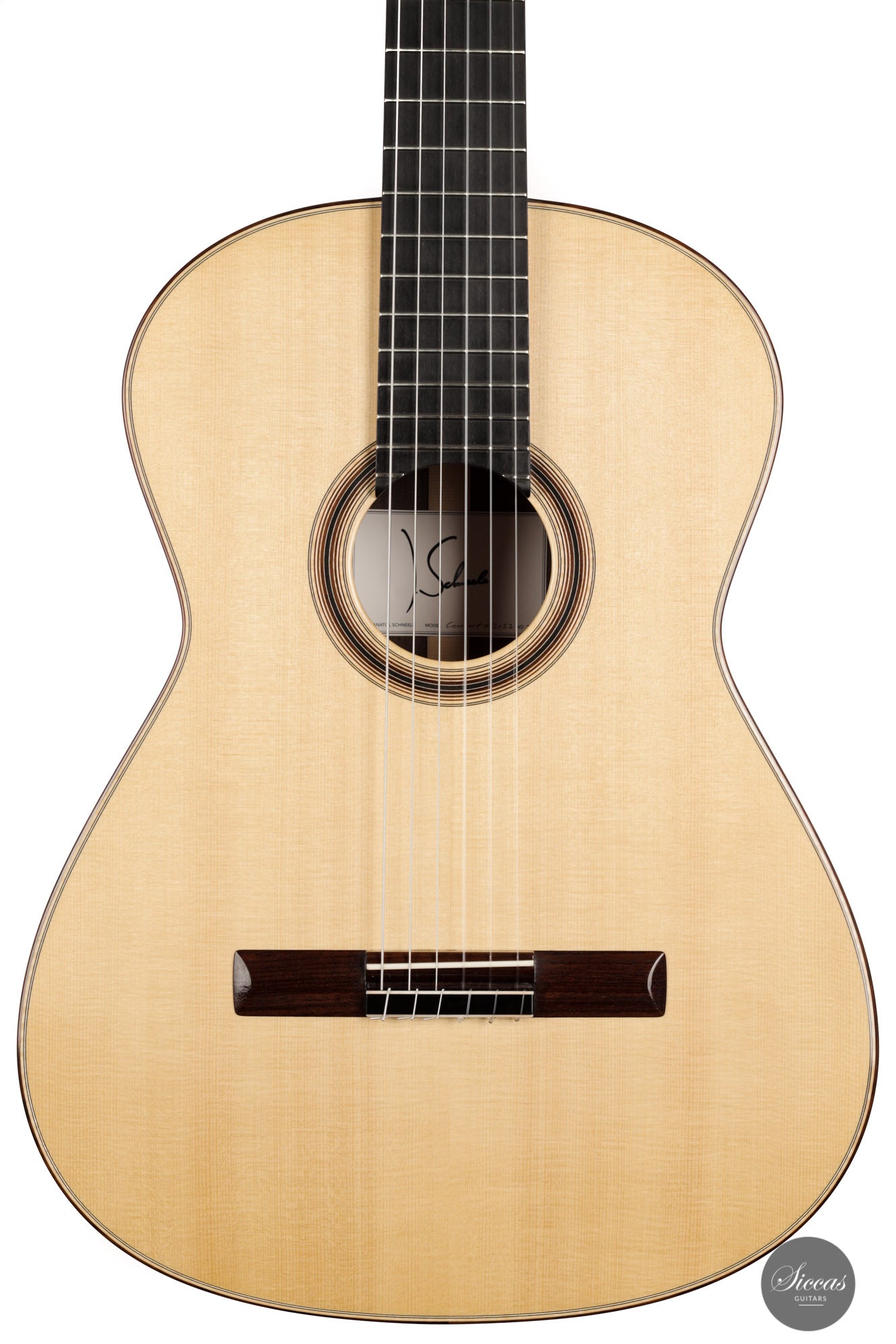 Diese Gitarre ist nach der spanischer Bauweise konstruiert. Die Decke ist kugelgewölbt, besonders leicht und steif, und mit einer 7-Fächerbeleistung gebaut. Das Instrument ist das Ergebnis aus der Verknüpfung des traditionellen spanischen Gitarrenbaus mit innovativen Methoden des heutigen Musikinstrumentenbaus. Es ist das edelste Modell von J. Schneele und hat ein einzigartiges Design. Das Model Concert ist im "Goldenen Schnitt" gestaltet. Die Proportionierung des Korpus, die Maße des Steges, der Krone und der Rosette stehen im Bezug zur Mensurlänge. Die Beleistung der Decke ist in harmonisch klingenden Proportionen gegliedert um ein möglichst ausgeglichenes Klangbild zu erzeugen.