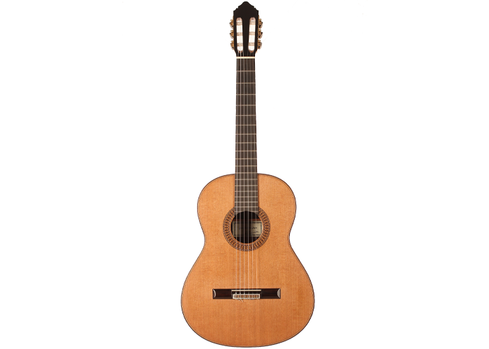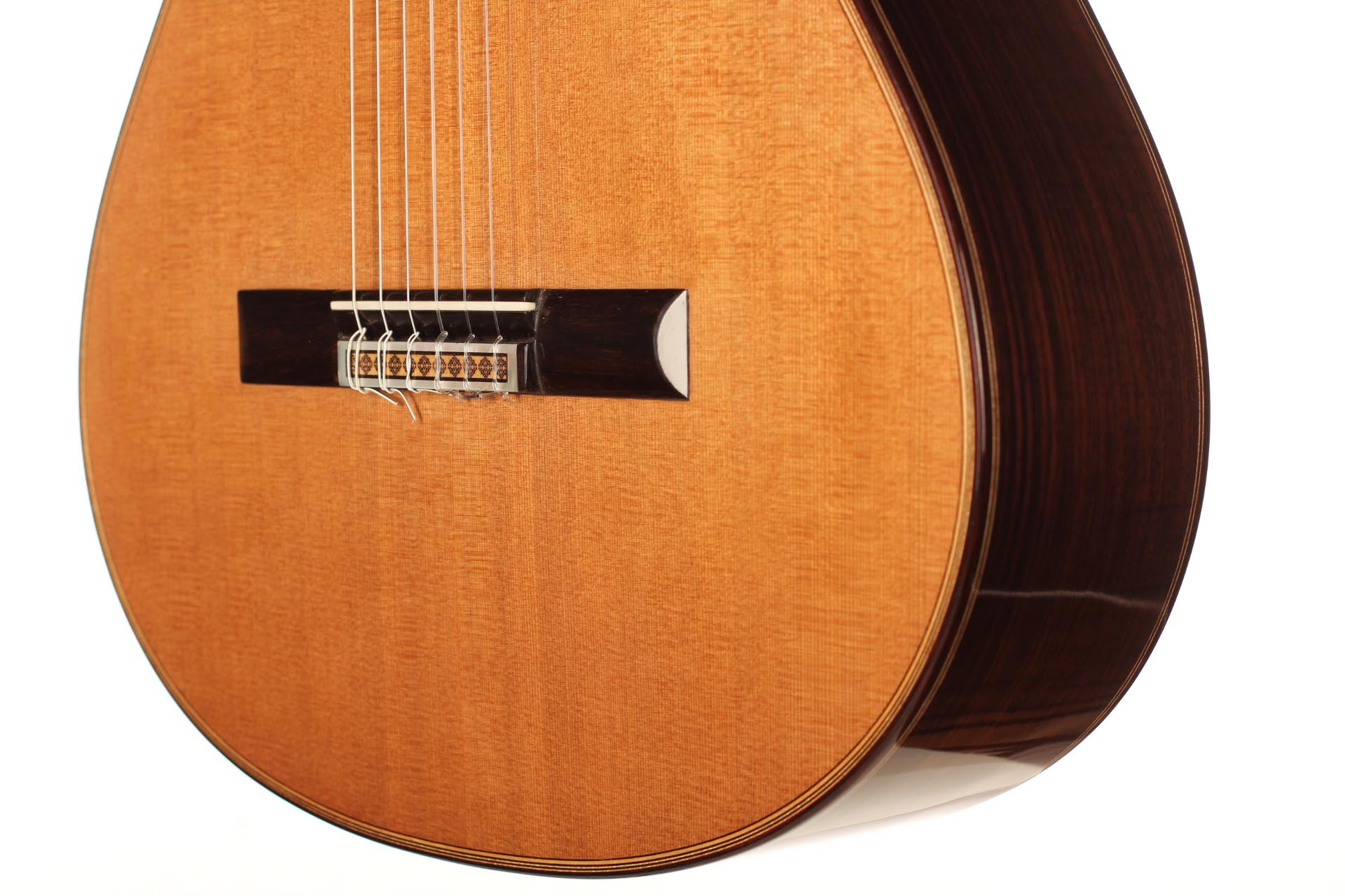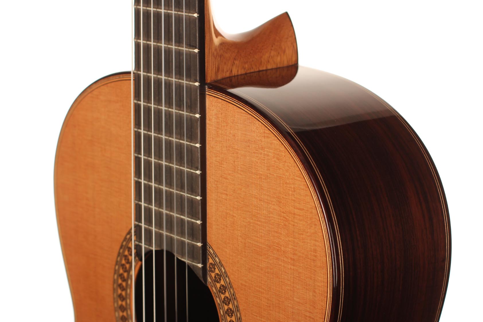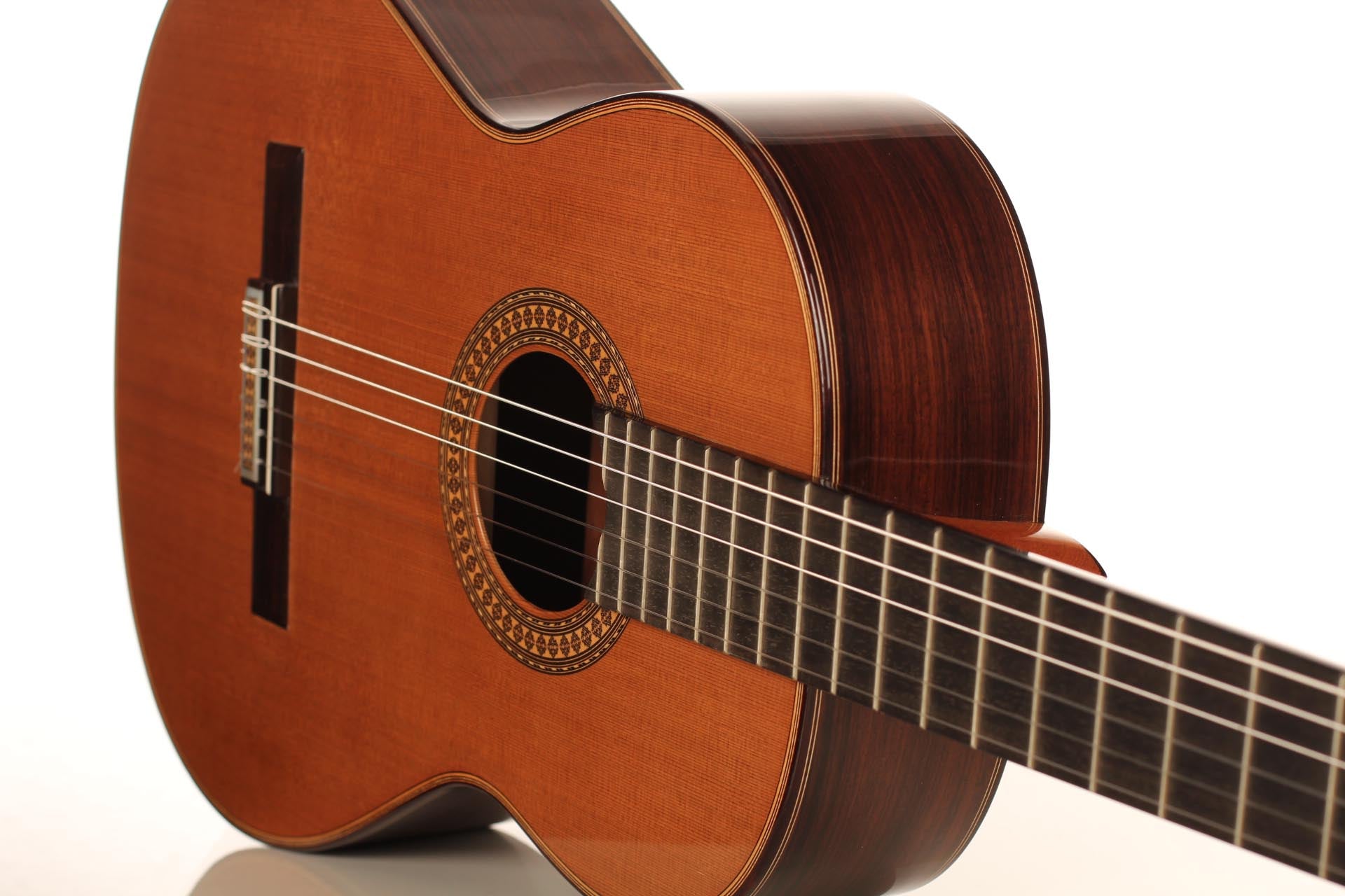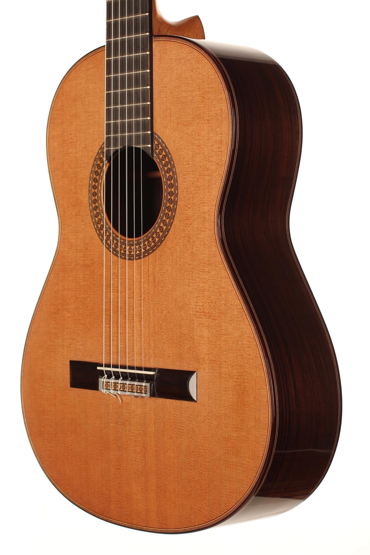 Diese Gitarre mit Zedern-Decke ist wirklich sehr beeindruckend. Sie reagiert sehr direkt und ist unglaublich feinfühlig. Dieses Instrument arbeitet mit dem Gitarristen zusammen und lässt dem Spieler viel Freiraum für dynamische Phrasierung und Klangfarben. Ein Hartschalenkoffer ist inklusive.