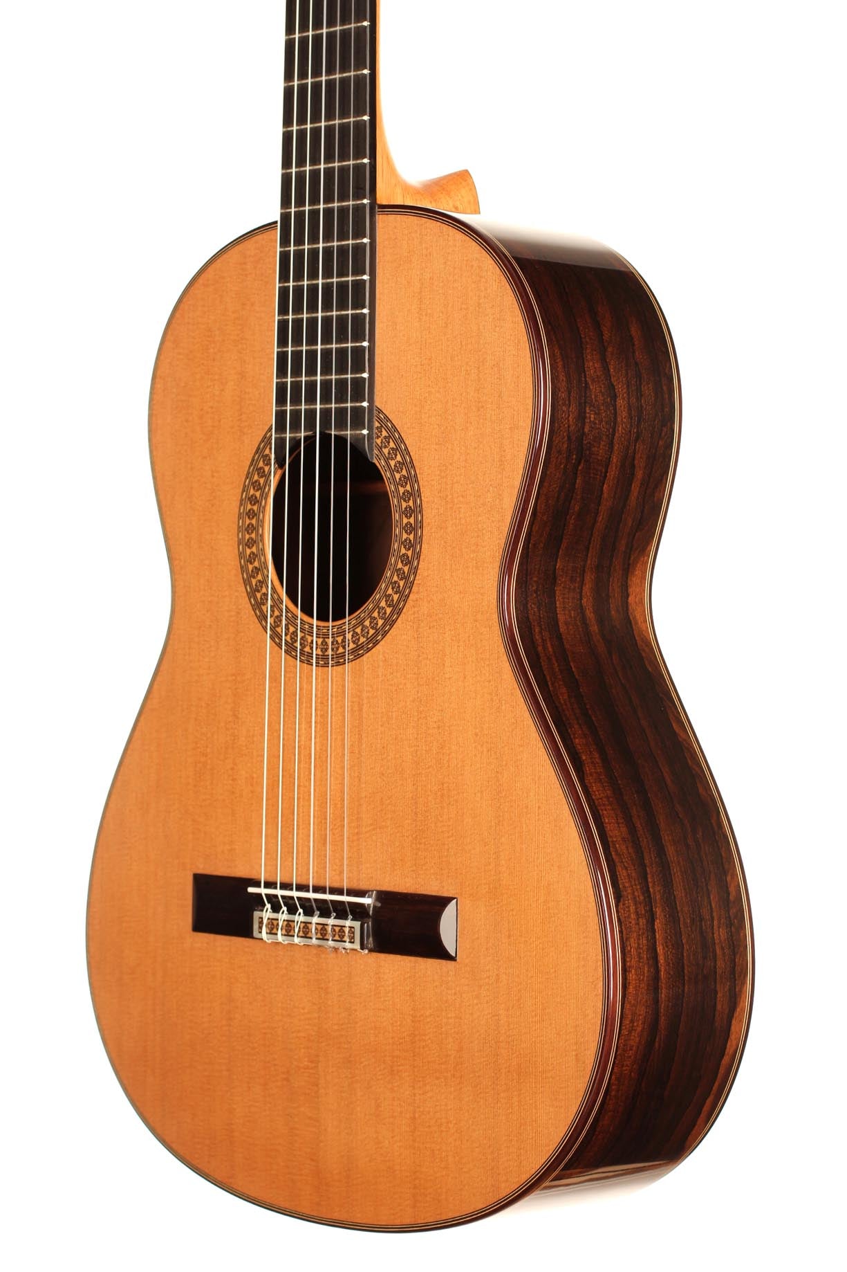 Die Gitarre ist CITES frei (CF). Es wurde wunderschön gemaserte Zirikote für Boden und Zargen verwendet. Diese erstklassige Gitarre aus Granada hat einen warmen vollen Klang, schnell ansprechende klare Bässe und eine direkte Projektion. Ein Hartschalenkoffer ist inklusive.
