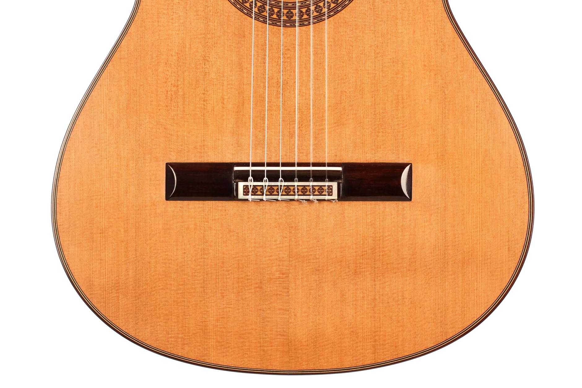 Die klassische Gitarre mit ihren weichen Nylonsaiten und ihrem charakteristischen Timbre ist zum Symbol der Kammermusik, der spanischen Tradition und des Konzertrepertoires geworden. Ihre moderne Form prägte Antonio de Torres im 19. Jahrhundert, indem er den Standard für Korpus, Fächerbeleistung und die 65-Zentimeter-Mensur setzte, die bis heute verwendet werden. Instrumente dieser Kategorie eröffnen eine reiche Palette von den feinen romantischen Miniaturen Tárregas bis zu den majestätischen Konzerten Rodrigos. Hier finden Sie Gitarren, die historische Kontinuität bewahren und zugleich zu neuen Interpretationen anregen.Alle Produkte der Kollektion ansehen -