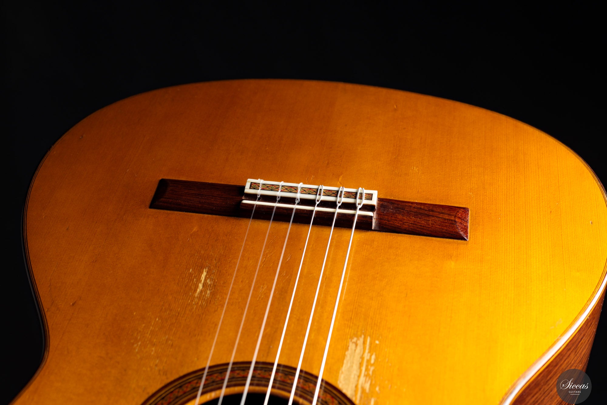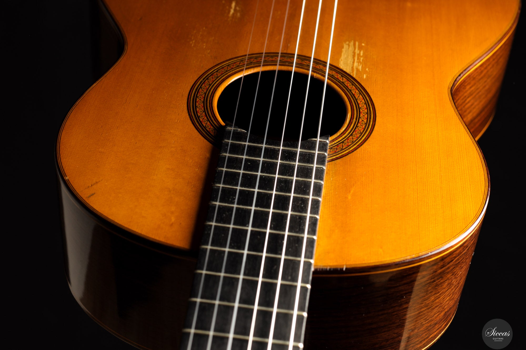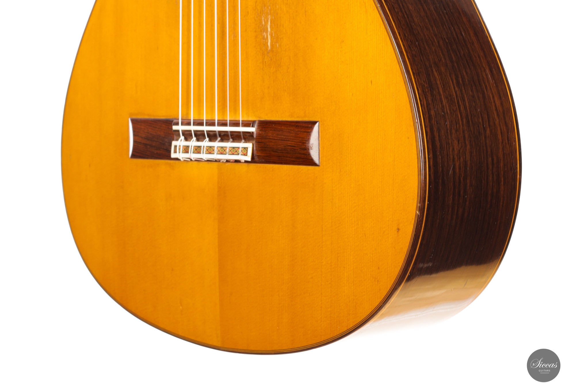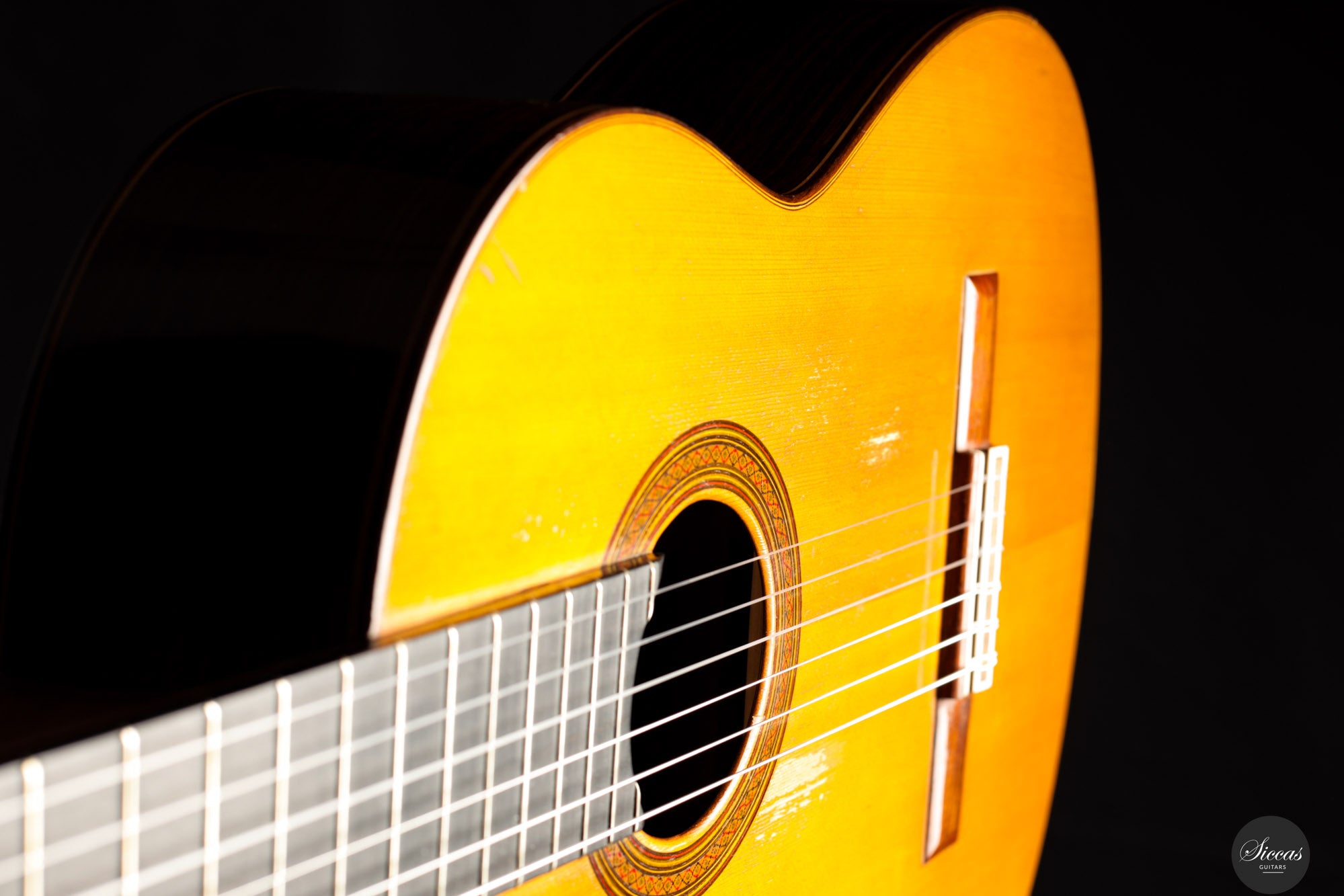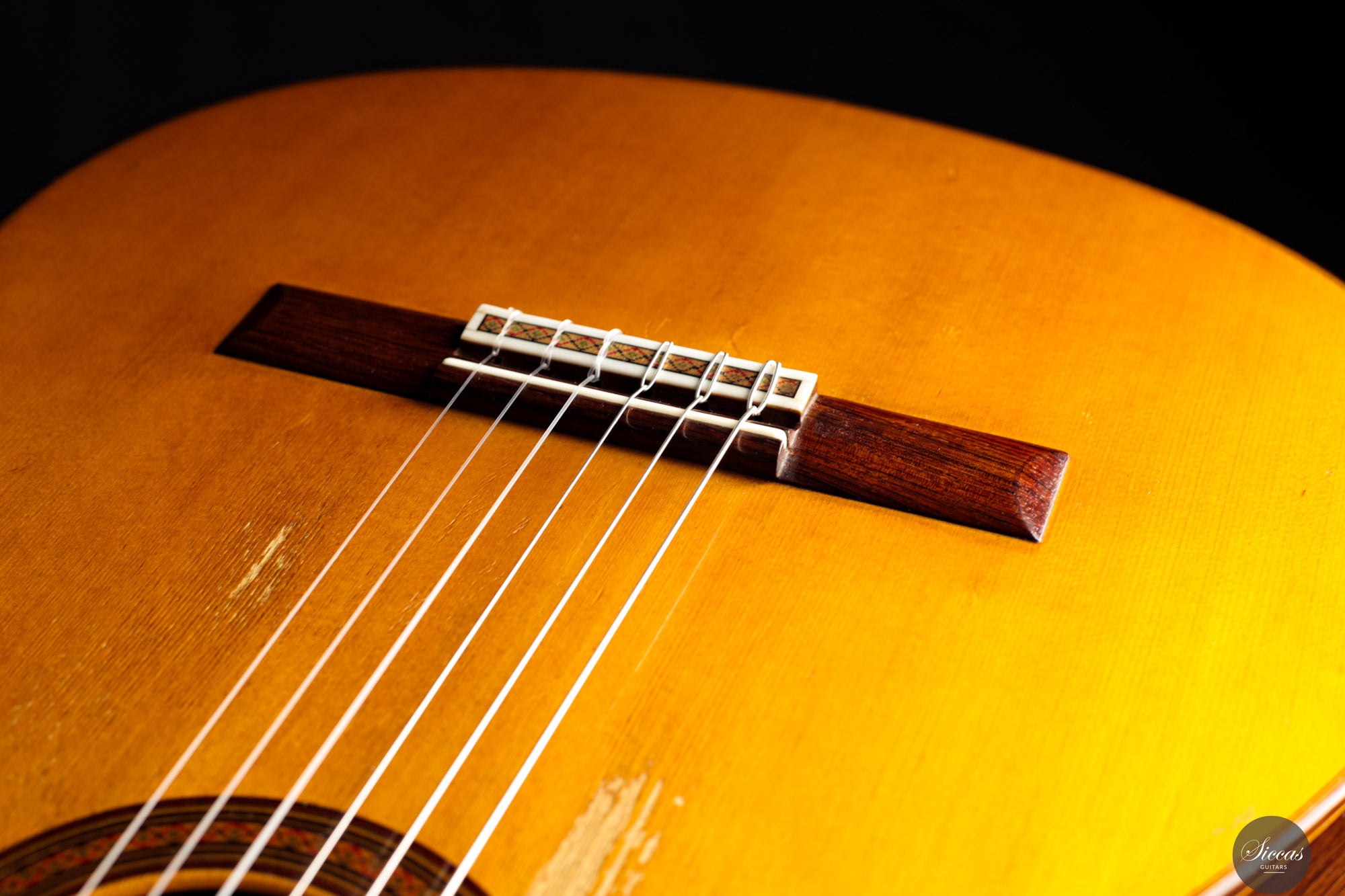 Diese wunderschöne Gitarre aus dem Jahr 1975 von José López Bellido ist ein bemerkenswertes Konzertinstrument. Sie bietet einen kraftvollen Klang mit hervorragender Dynamik und einem frischen, klaren Ton. Die Gitarre hat einen starken Grundton, sehr kontrollierte Obertöne und einen natürlichen, „holzigen“ Klangcharakter, der sowohl stilvoll als auch ansprechend ist. In der Hand wirkt sie äußerst ausdrucksstark und reagiert sehr feinfühlig auf selbst kleinste Veränderungen im Anschlag des Spielers. Vom tiefen Bass bis in die höchsten Lagen ist der Klang absolut magisch.