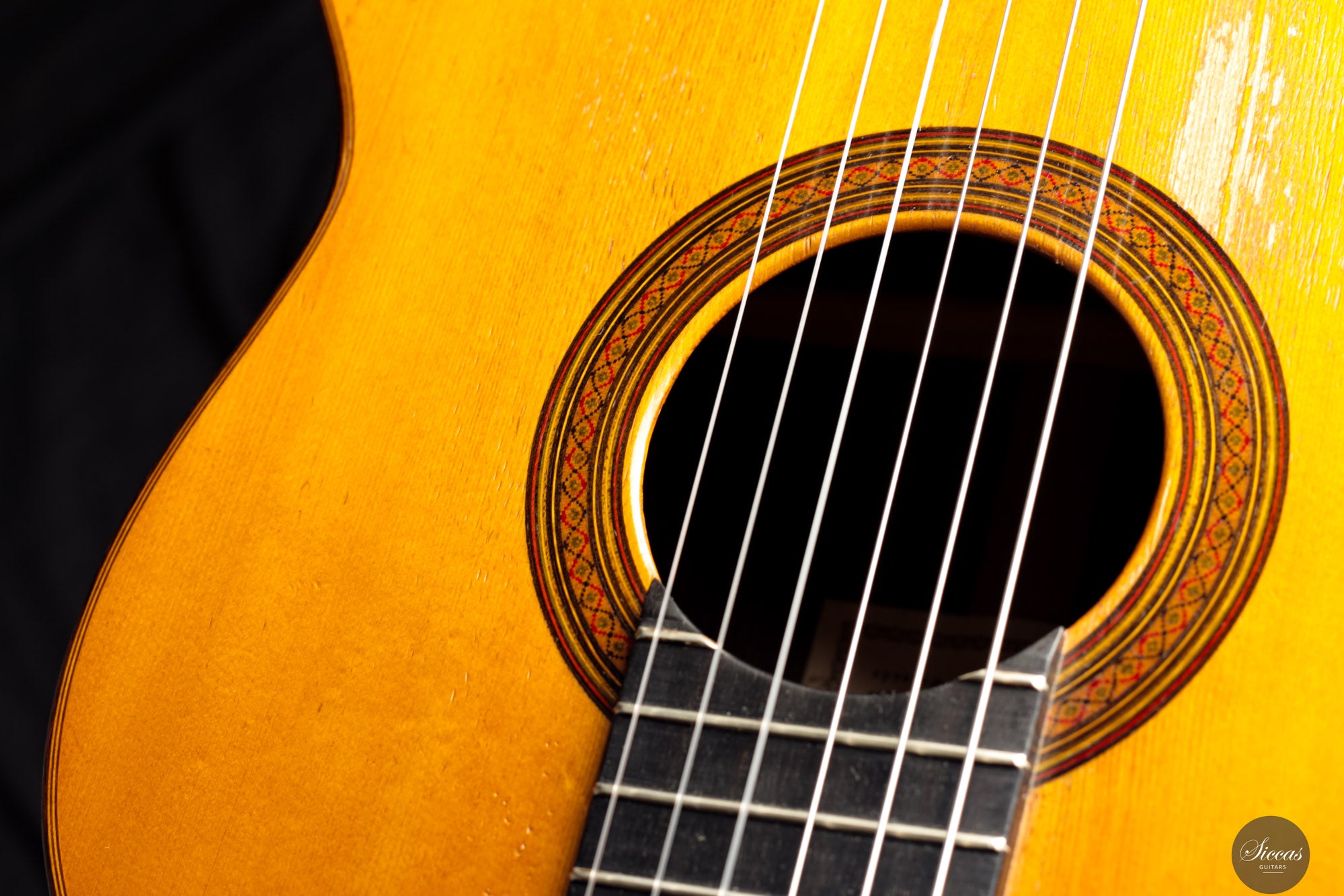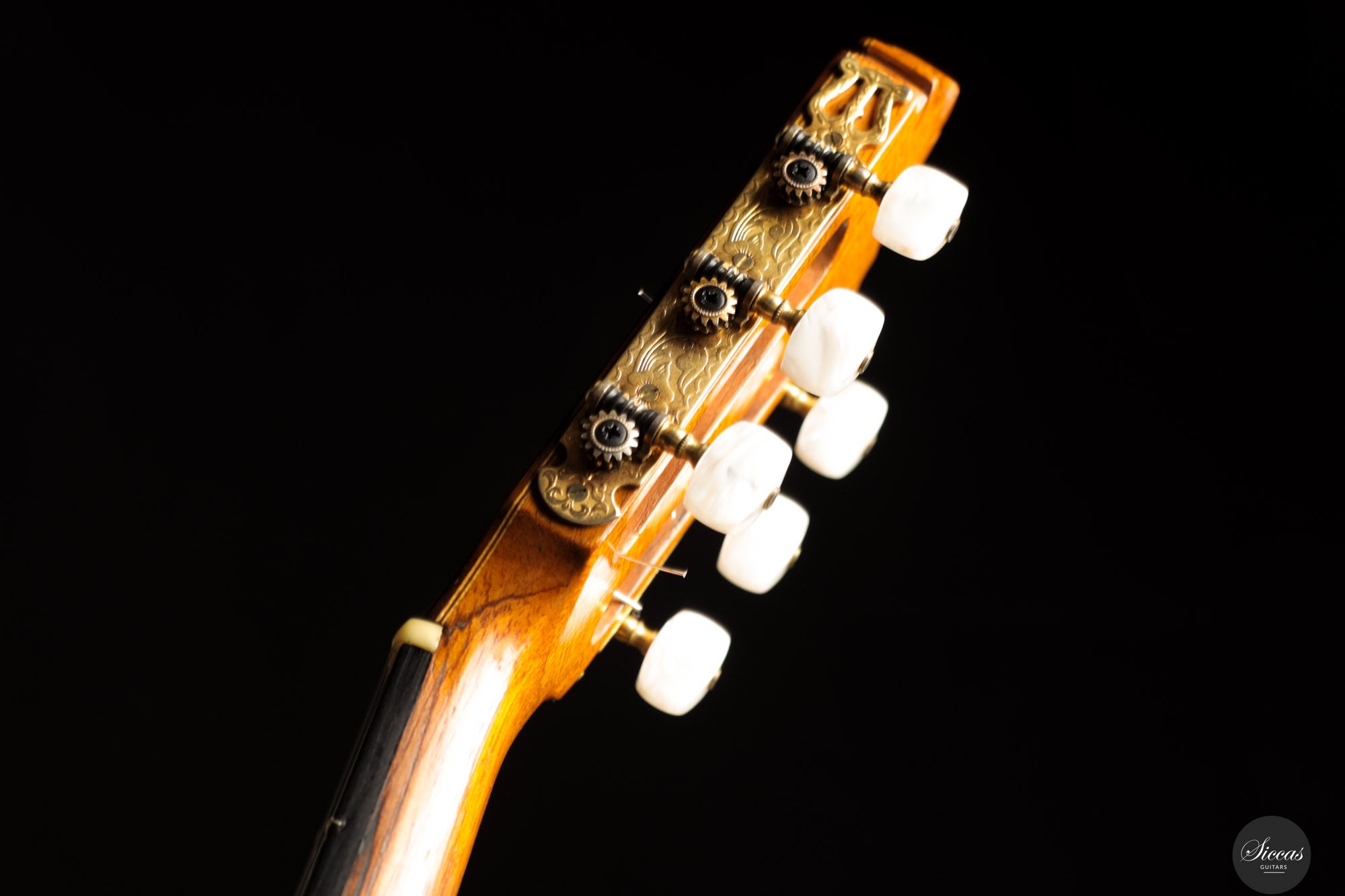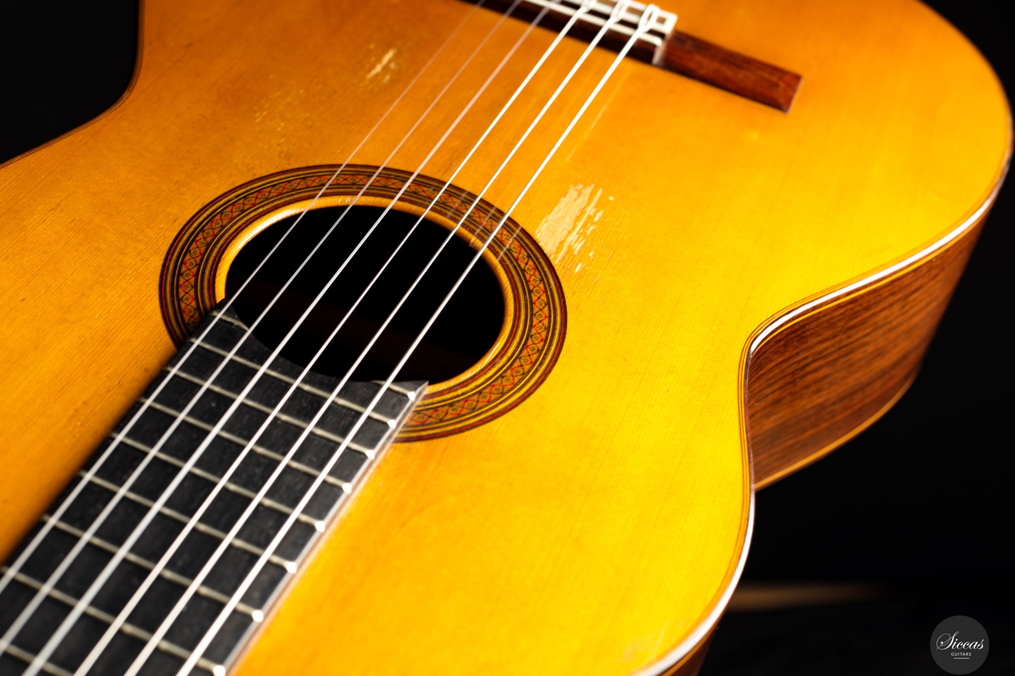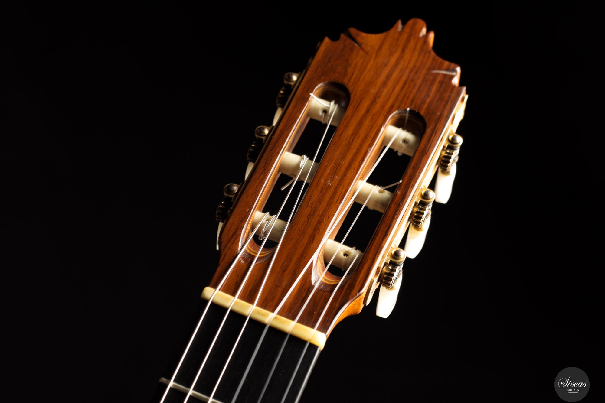 Diese wunderschöne Gitarre aus dem Jahr 1975 von José López Bellido ist ein bemerkenswertes Konzertinstrument. Sie bietet einen kraftvollen Klang mit hervorragender Dynamik und einem frischen, klaren Ton. Die Gitarre hat einen starken Grundton, sehr kontrollierte Obertöne und einen natürlichen, „holzigen“ Klangcharakter, der sowohl stilvoll als auch ansprechend ist. In der Hand wirkt sie äußerst ausdrucksstark und reagiert sehr feinfühlig auf selbst kleinste Veränderungen im Anschlag des Spielers. Vom tiefen Bass bis in die höchsten Lagen ist der Klang absolut magisch.