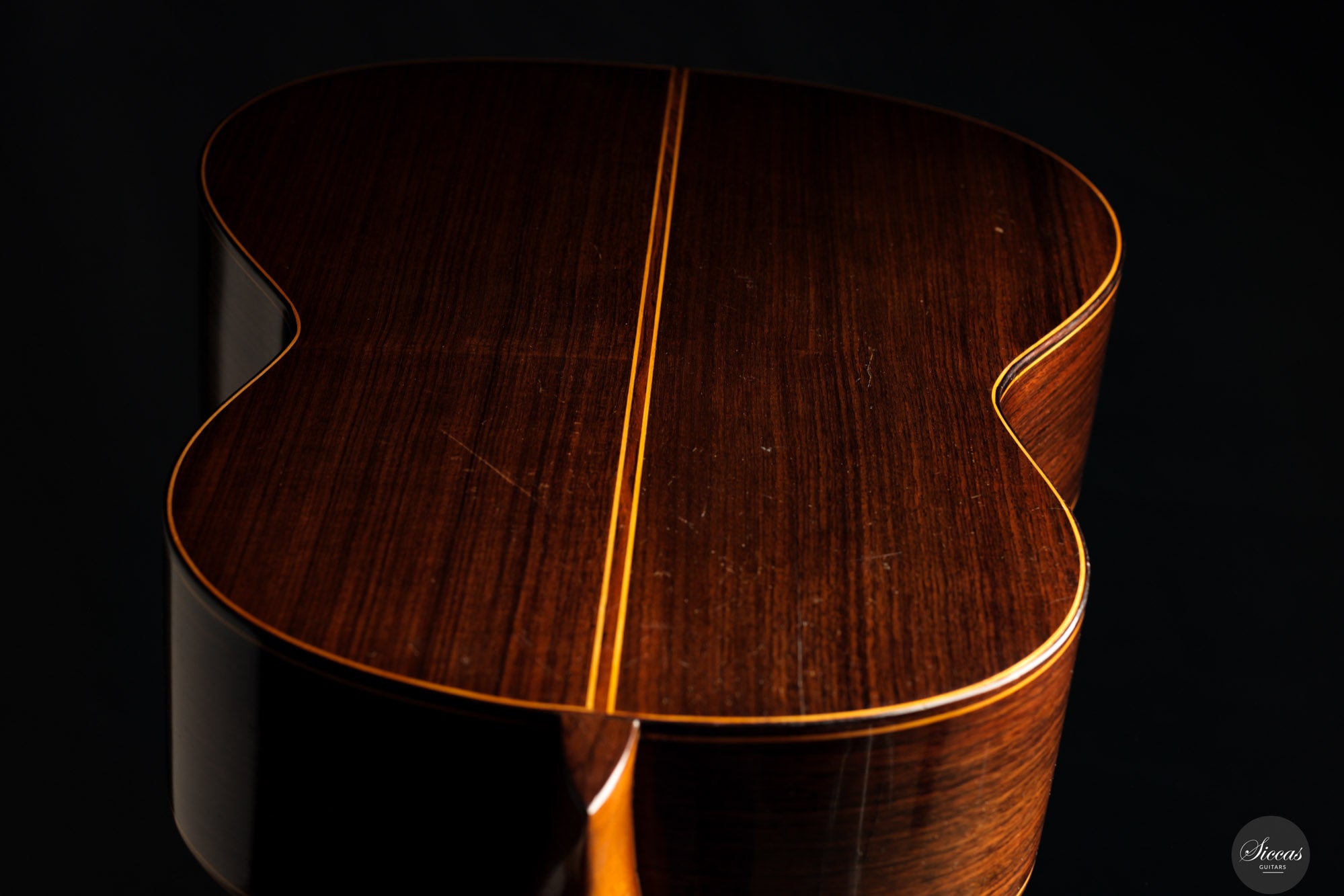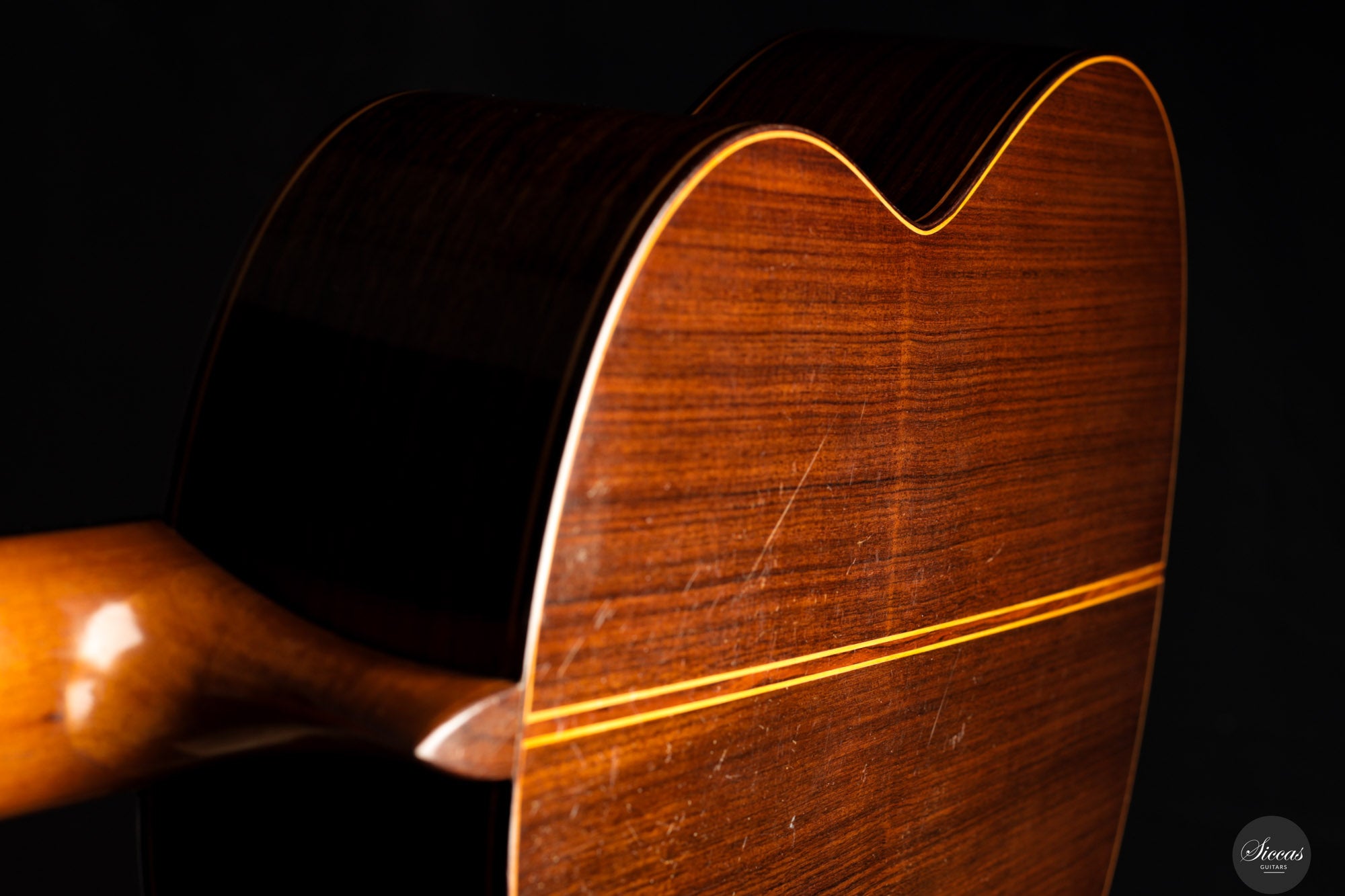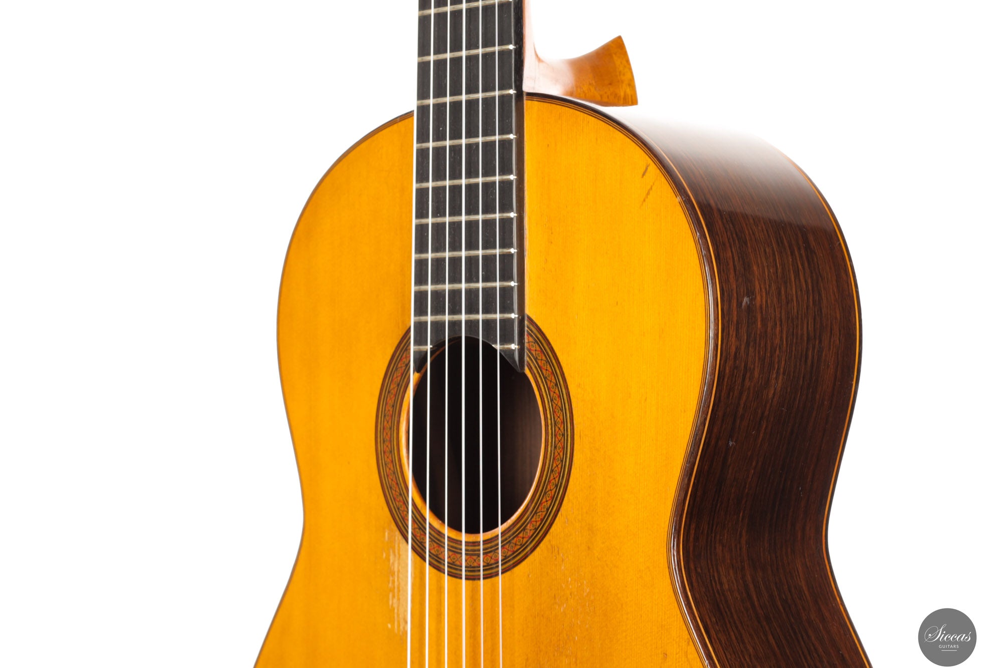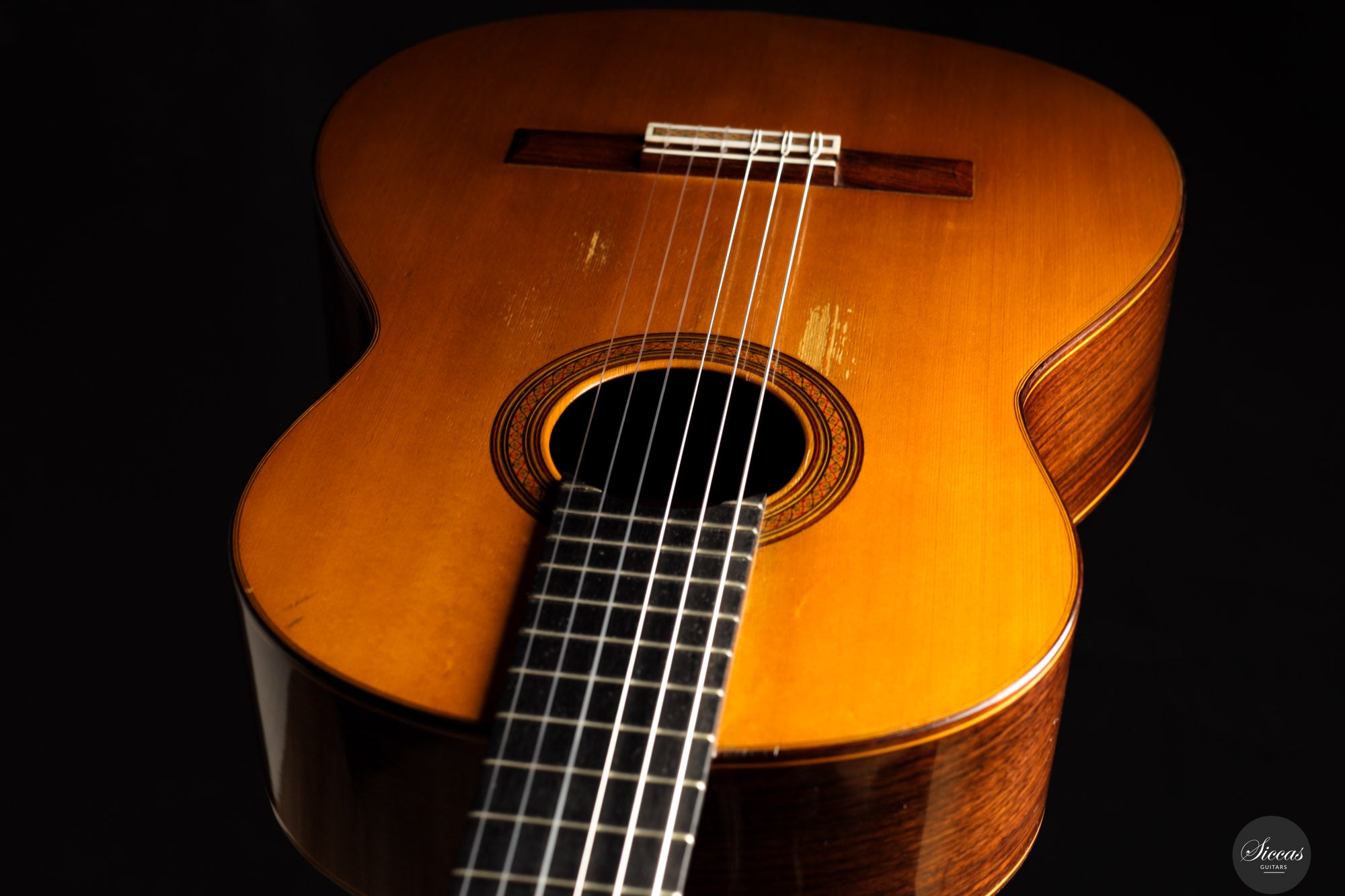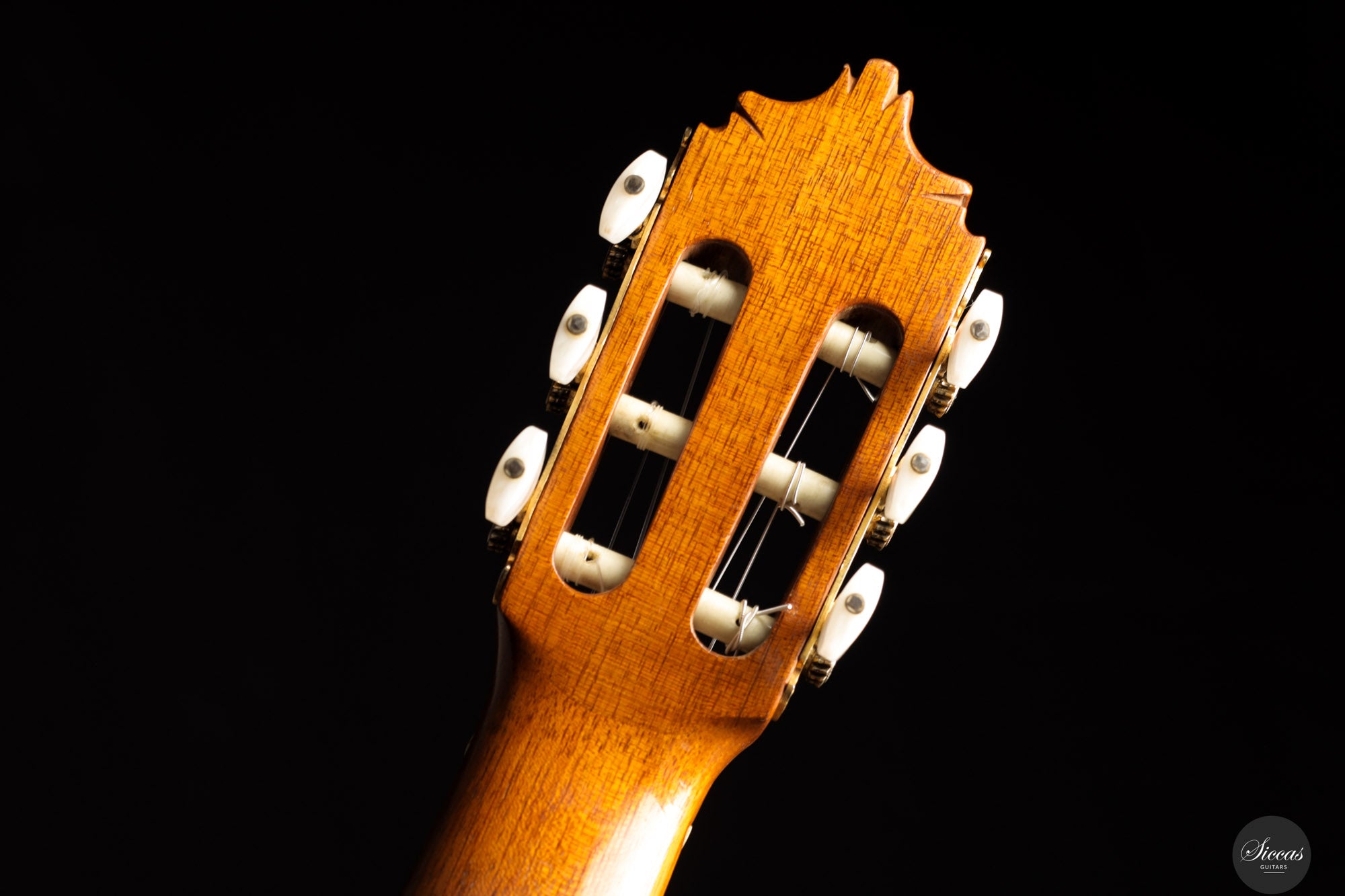 Diese wunderschöne Gitarre aus dem Jahr 1975 von José López Bellido ist ein bemerkenswertes Konzertinstrument. Sie bietet einen kraftvollen Klang mit hervorragender Dynamik und einem frischen, klaren Ton. Die Gitarre hat einen starken Grundton, sehr kontrollierte Obertöne und einen natürlichen, „holzigen“ Klangcharakter, der sowohl stilvoll als auch ansprechend ist. In der Hand wirkt sie äußerst ausdrucksstark und reagiert sehr feinfühlig auf selbst kleinste Veränderungen im Anschlag des Spielers. Vom tiefen Bass bis in die höchsten Lagen ist der Klang absolut magisch.