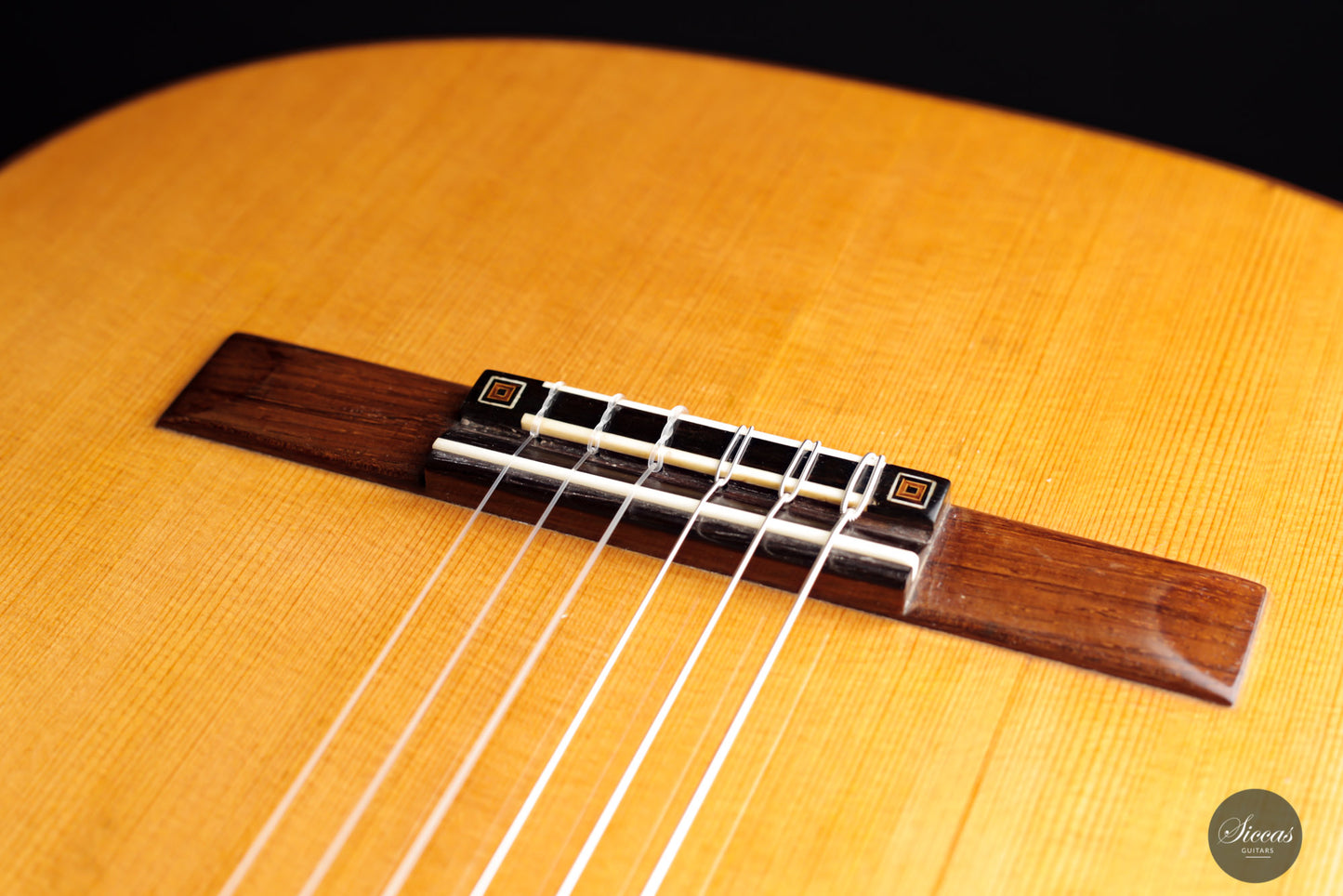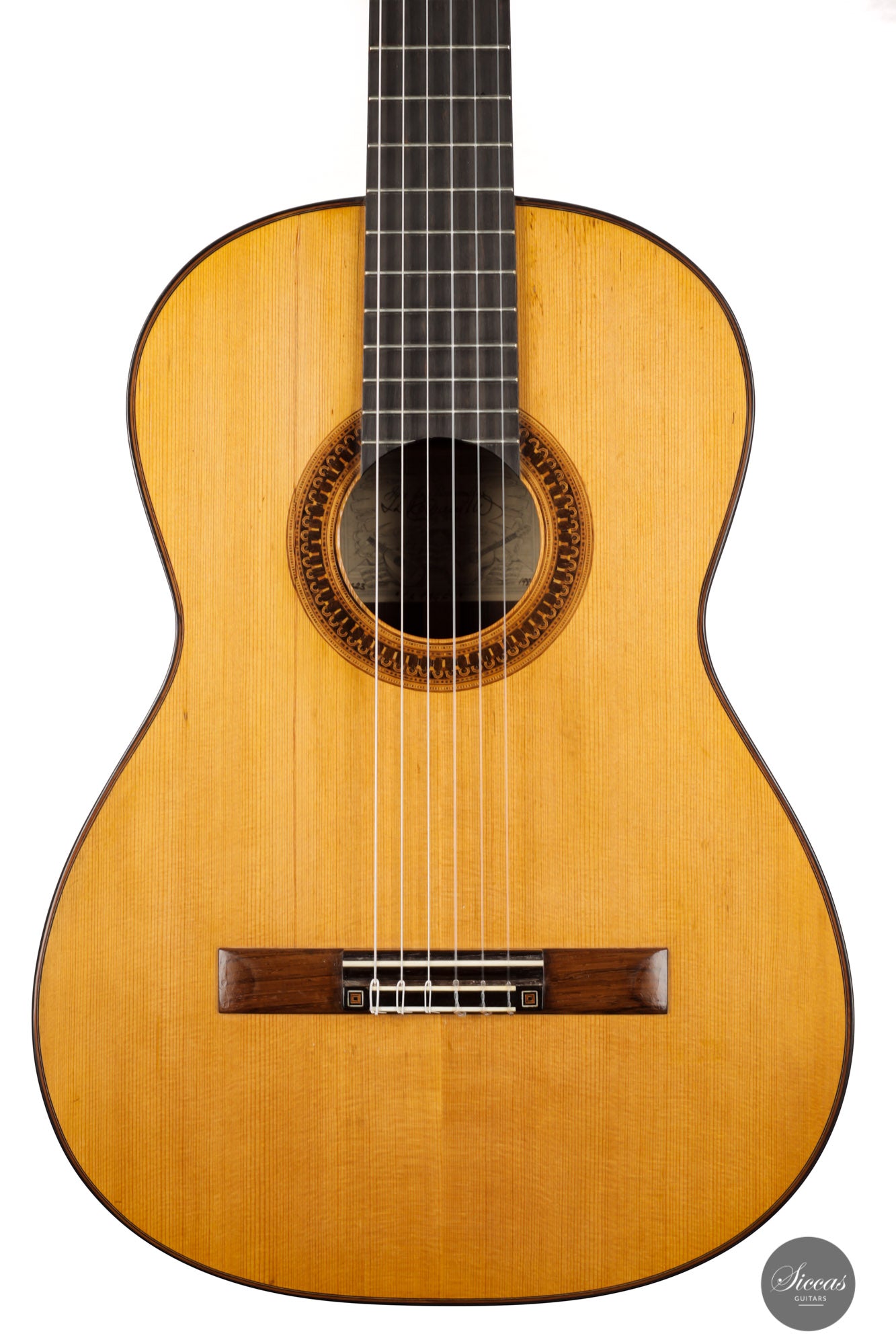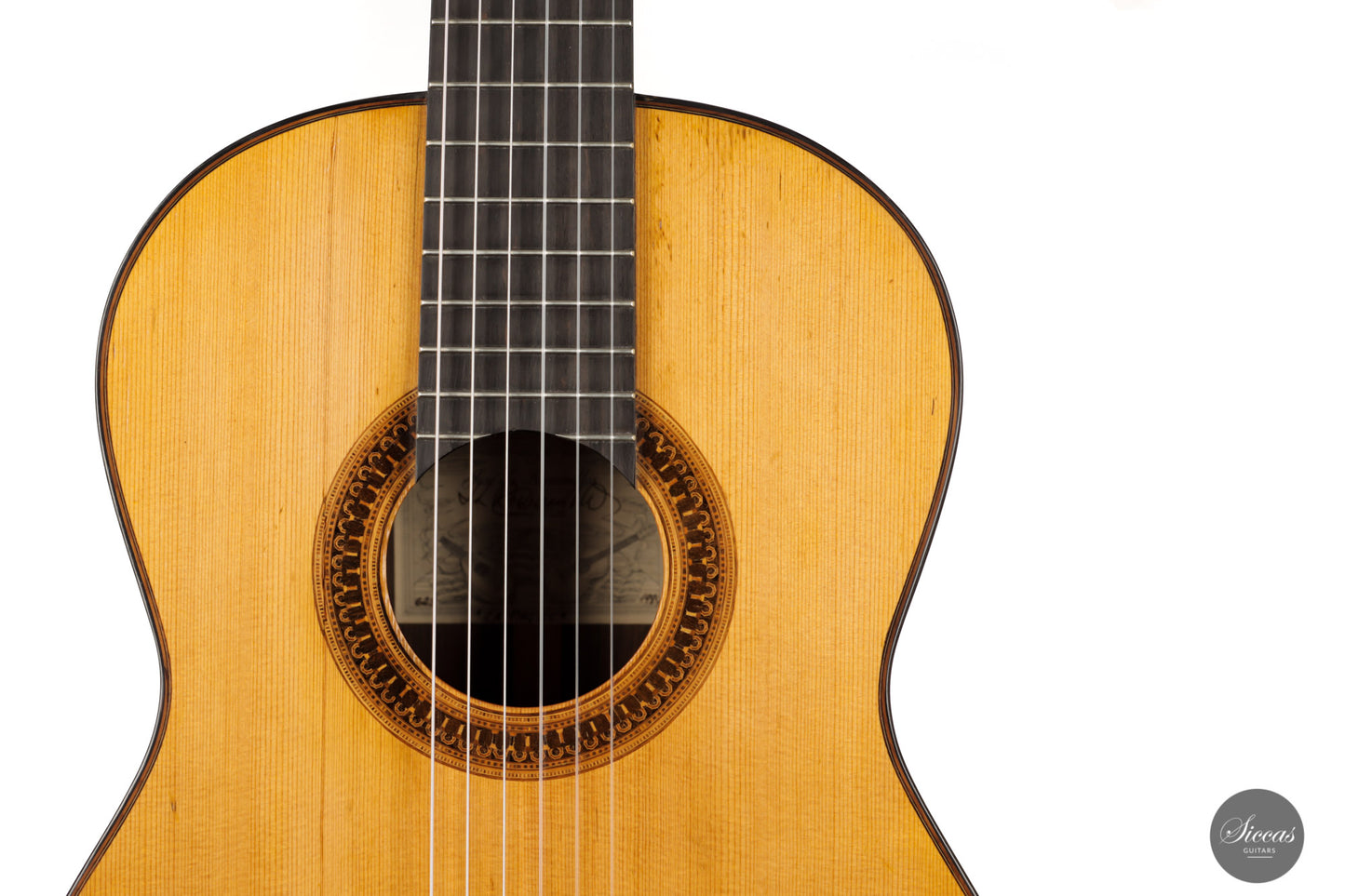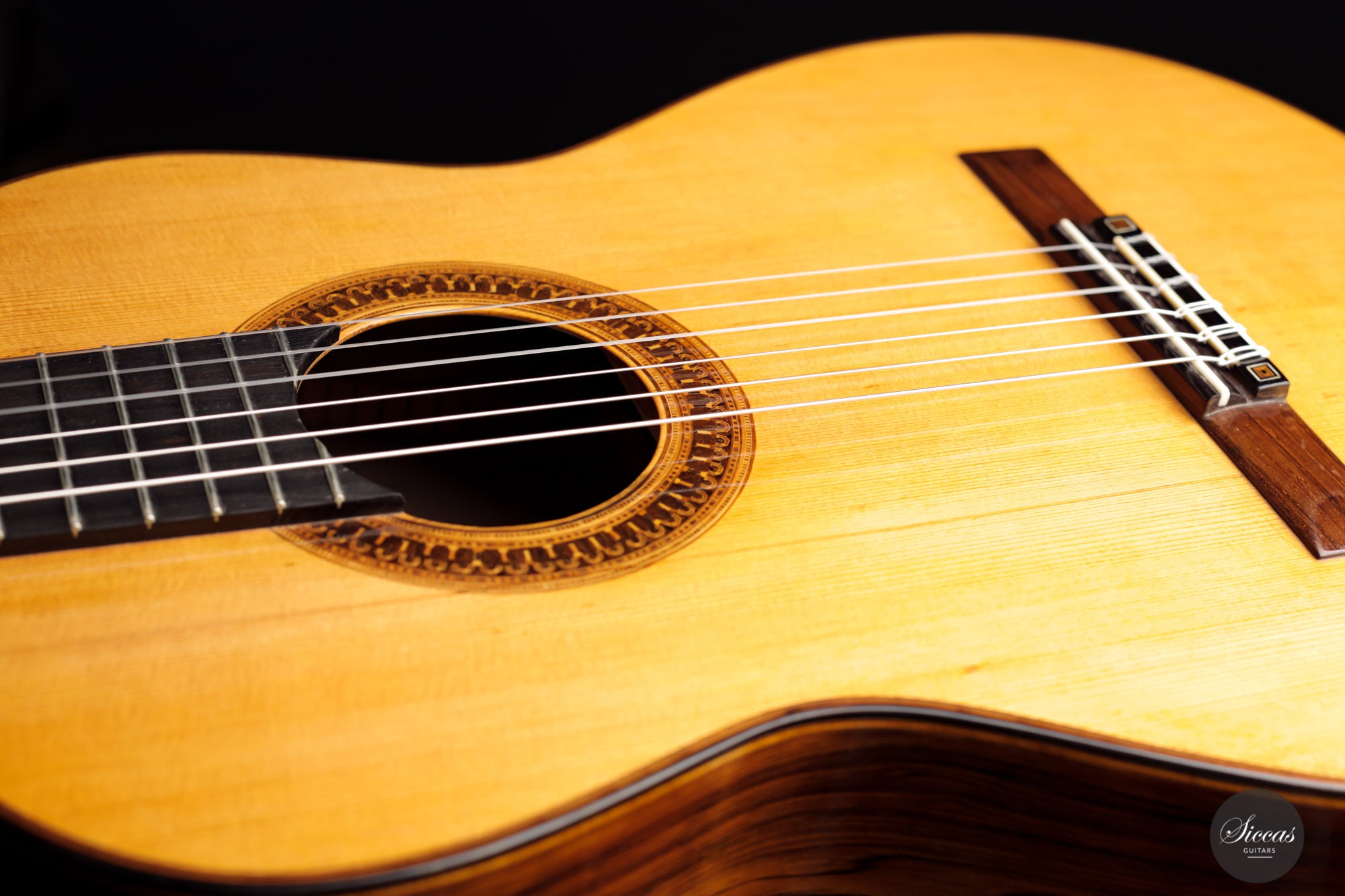 Die Decke der Gitarre weist einen professionell reparierten Riss auf, der vom dänischen Gitarrenbauer Kenneth Brögger stabilisiert wurde, sodass sich das Instrument in einem ausgezeichneten spielbaren Zustand befindet. Klanglich bietet diese Gitarre eine außergewöhnliche Klarheit und Ausgewogenheit über alle Register hinweg, mit einer atemberaubenden Subtilität in der Klangfarbe. Der Klang ist sowohl kraftvoll als auch raffiniert und verkörpert die reine spanische Tradition, die Romanillos perfektioniert hat. Dieses einzigartige Instrument ist ein seltenes und wertvolles Stück – ein Muss für anspruchsvolle Sammler und professionelle Musiker gleichermaßen.