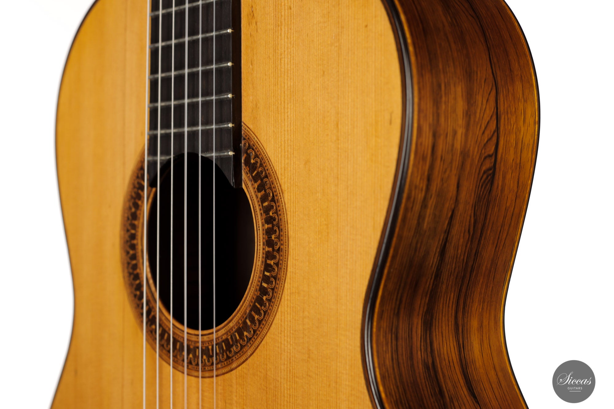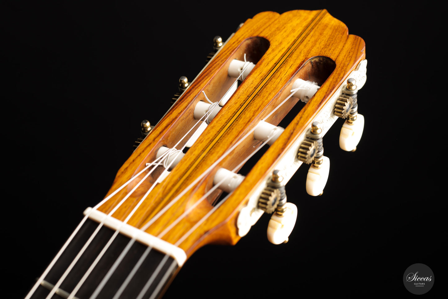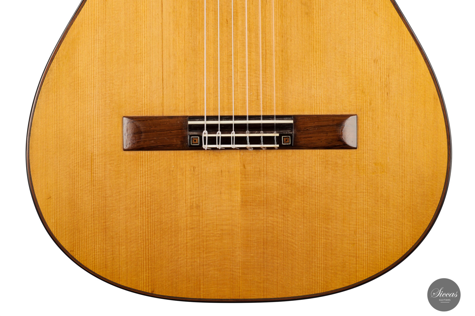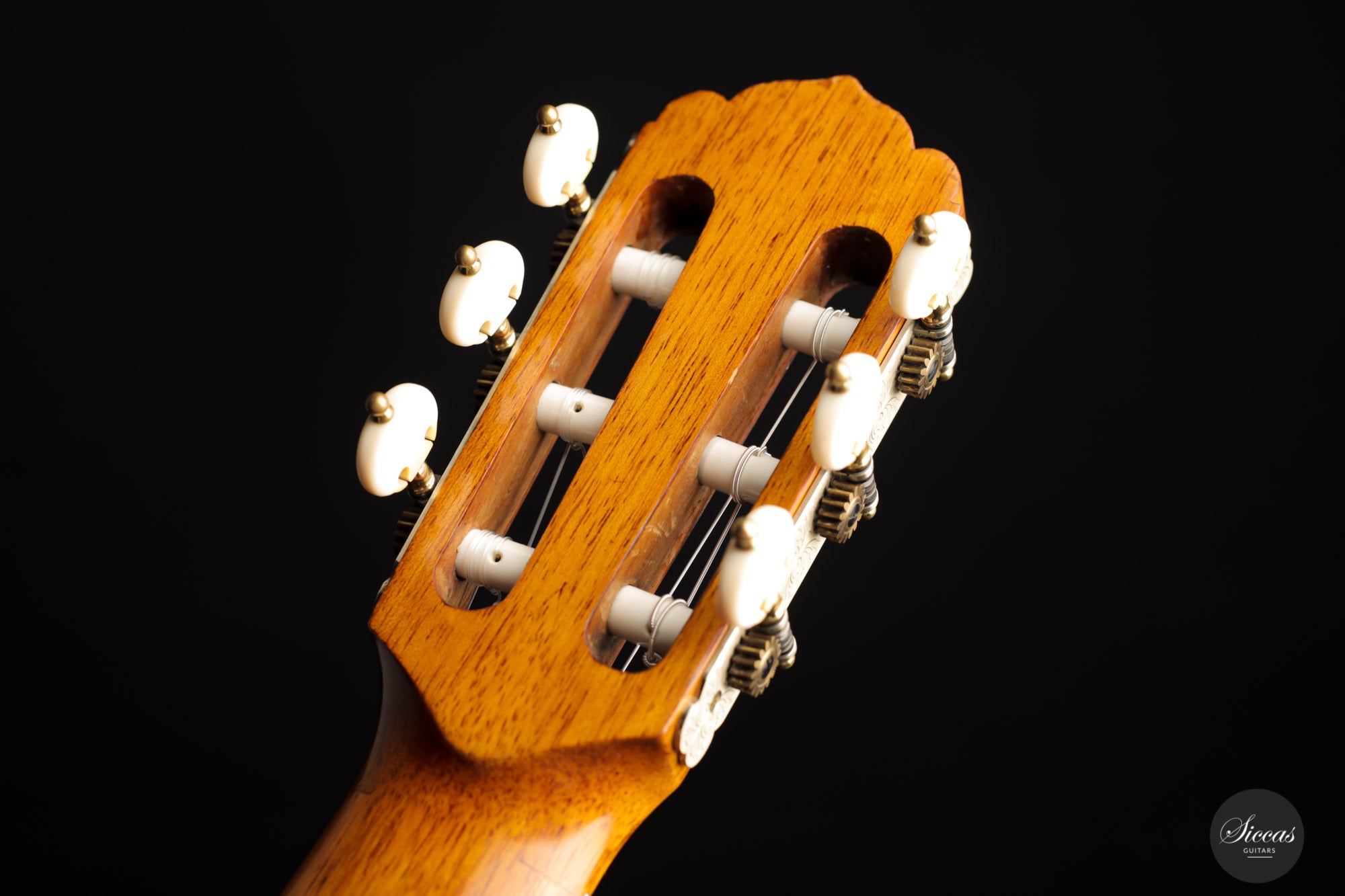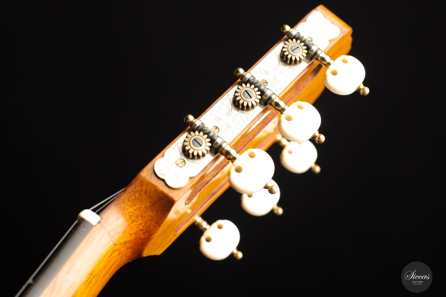 Die Decke der Gitarre weist einen professionell reparierten Riss auf, der vom dänischen Gitarrenbauer Kenneth Brögger stabilisiert wurde, sodass sich das Instrument in einem ausgezeichneten spielbaren Zustand befindet. Klanglich bietet diese Gitarre eine außergewöhnliche Klarheit und Ausgewogenheit über alle Register hinweg, mit einer atemberaubenden Subtilität in der Klangfarbe. Der Klang ist sowohl kraftvoll als auch raffiniert und verkörpert die reine spanische Tradition, die Romanillos perfektioniert hat. Dieses einzigartige Instrument ist ein seltenes und wertvolles Stück – ein Muss für anspruchsvolle Sammler und professionelle Musiker gleichermaßen.