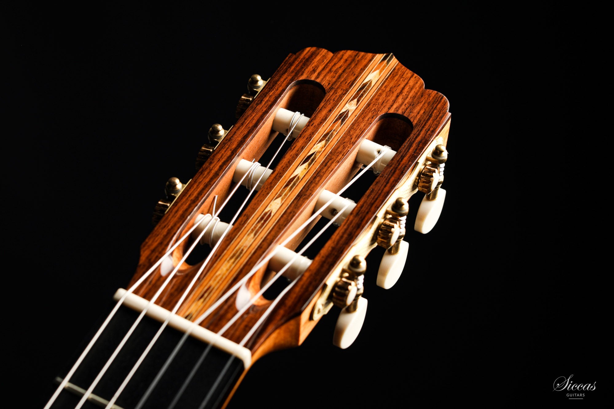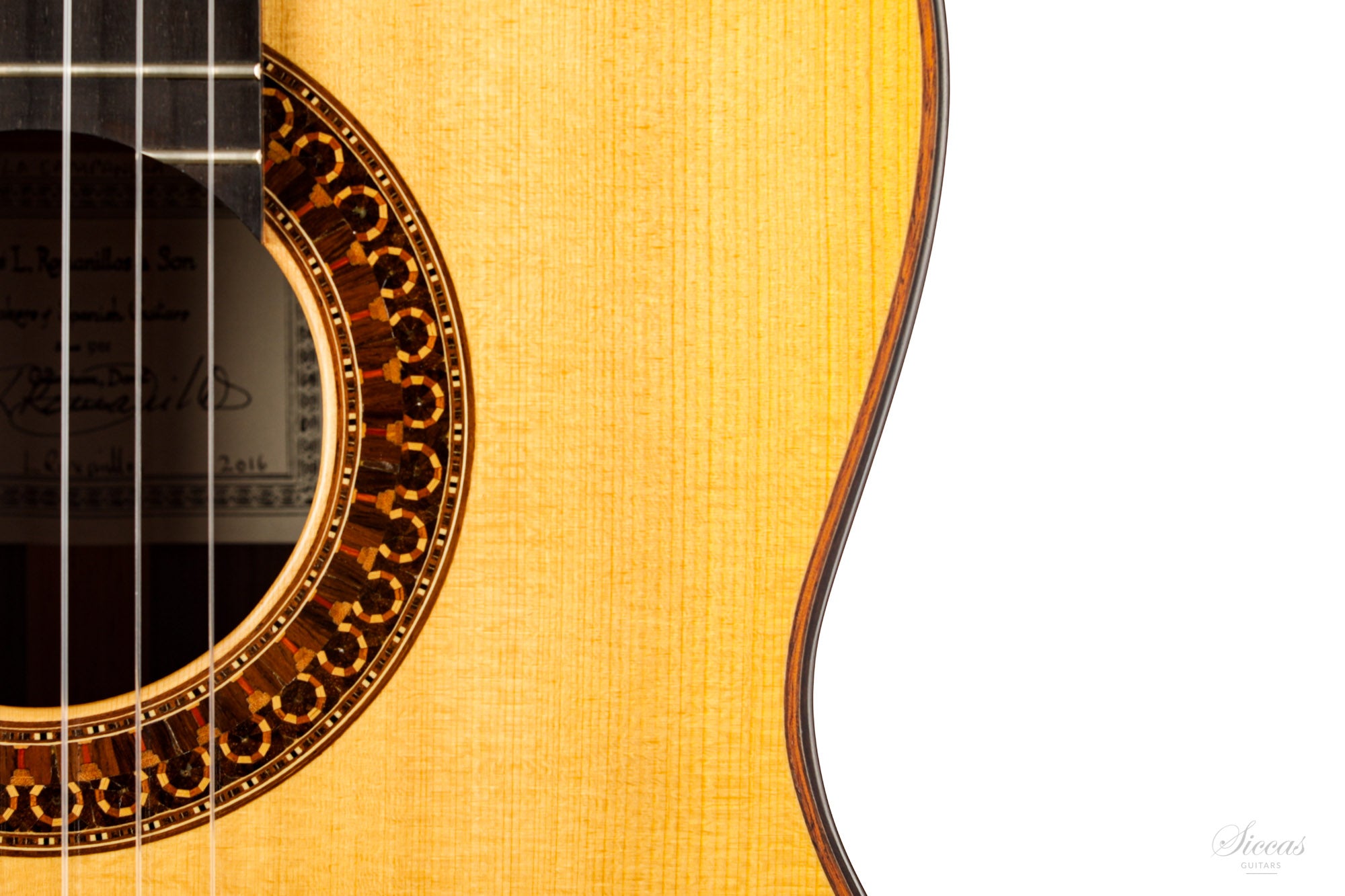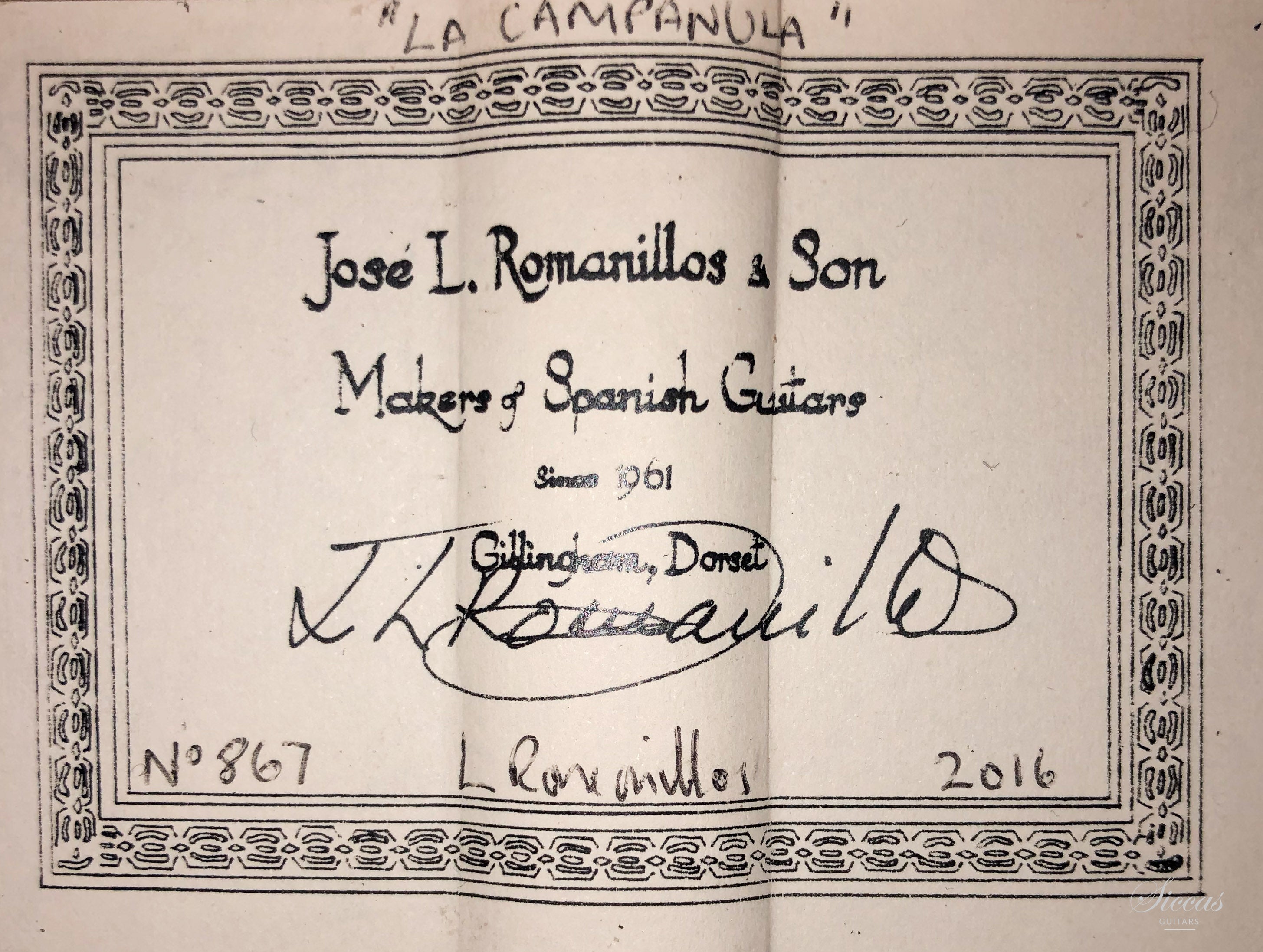 The tone of this guitar is pure, colourful, round, full of character and offers lots of possibilities. What a pleasure having such a gem in the shop. The playability is excellent, but it is really the purity and richness of tone that captivates the guitarist. Like all Romanillos, it is a guitar that requires some dedication from the guitarist in order to open up fully and rewards the musician with its soulful charm.