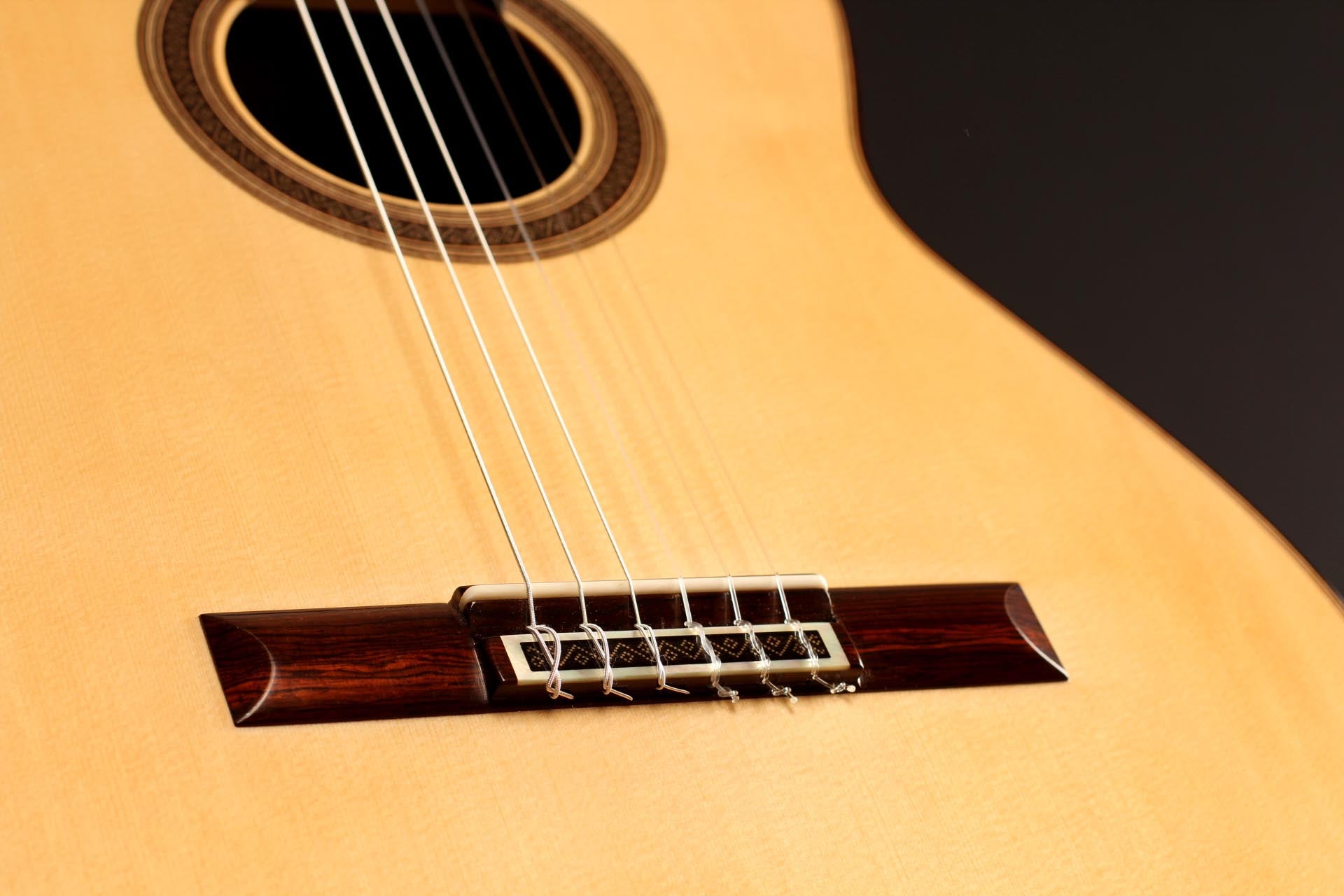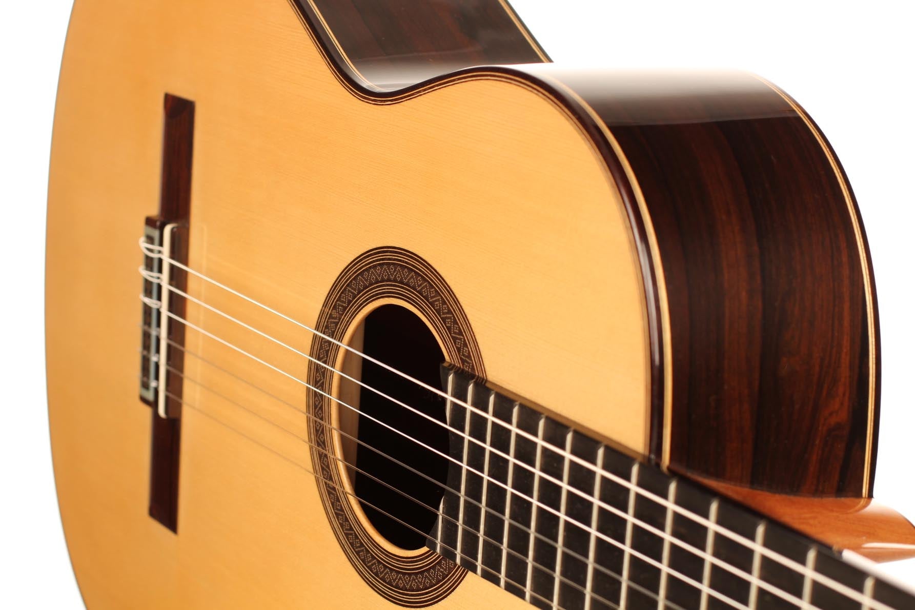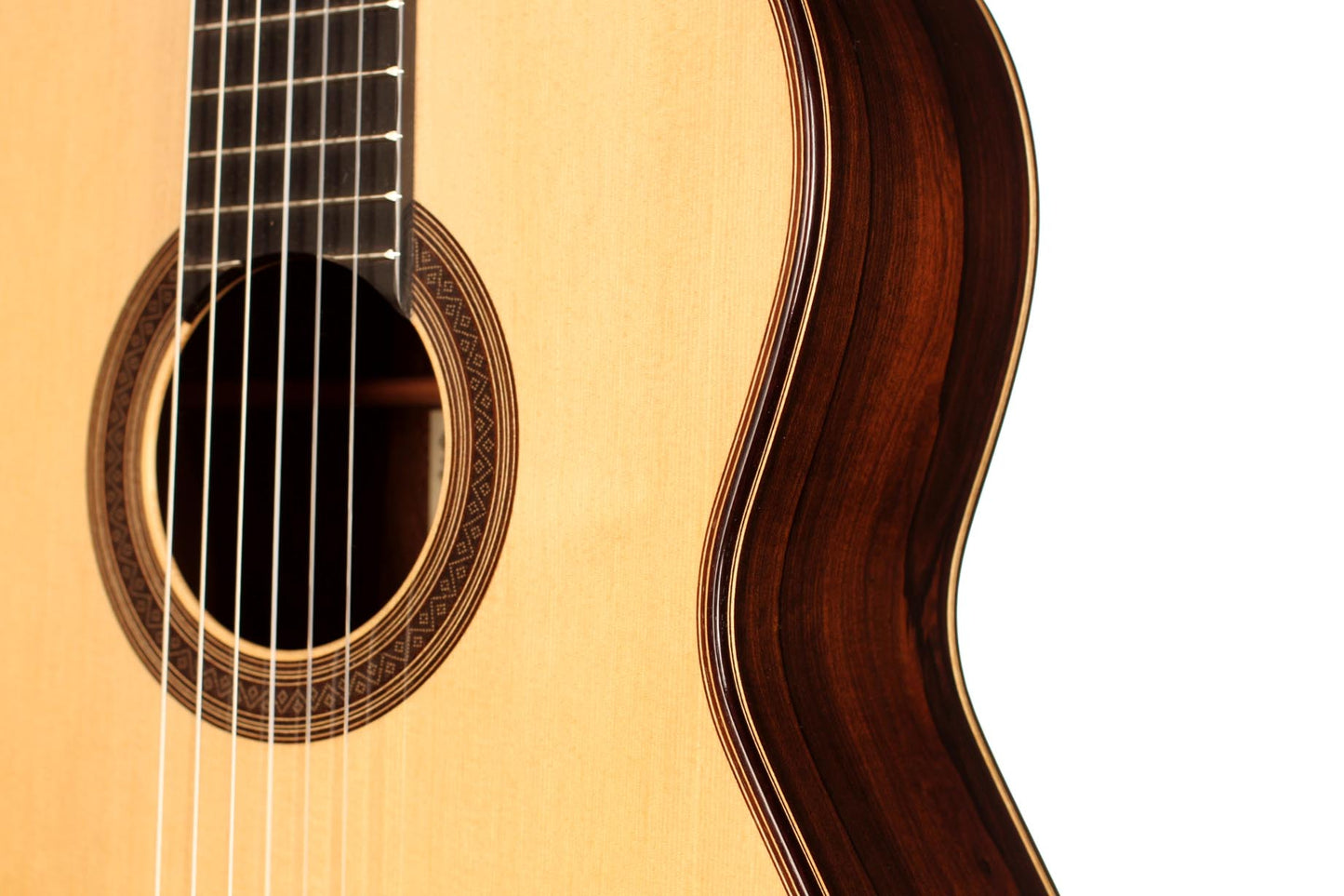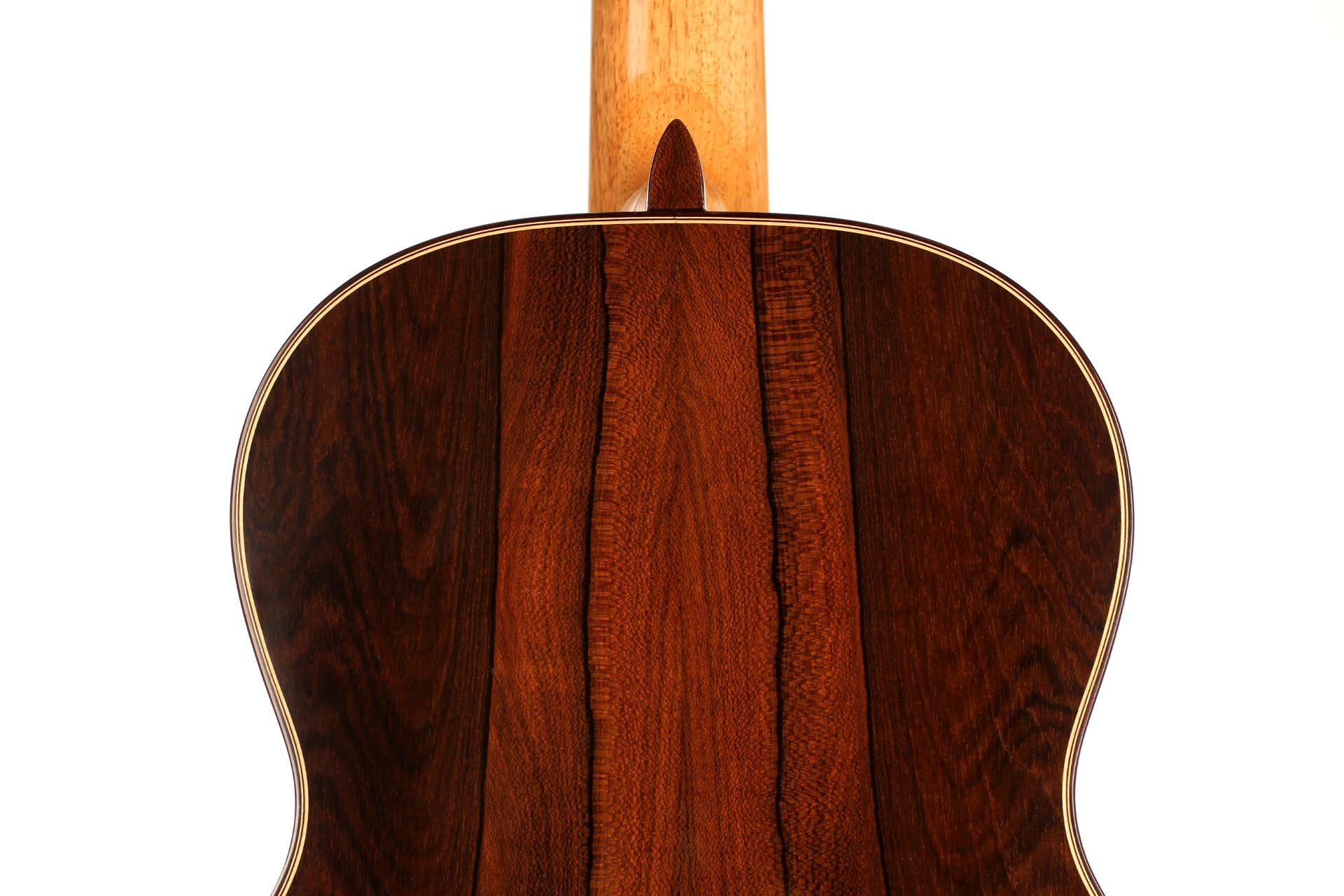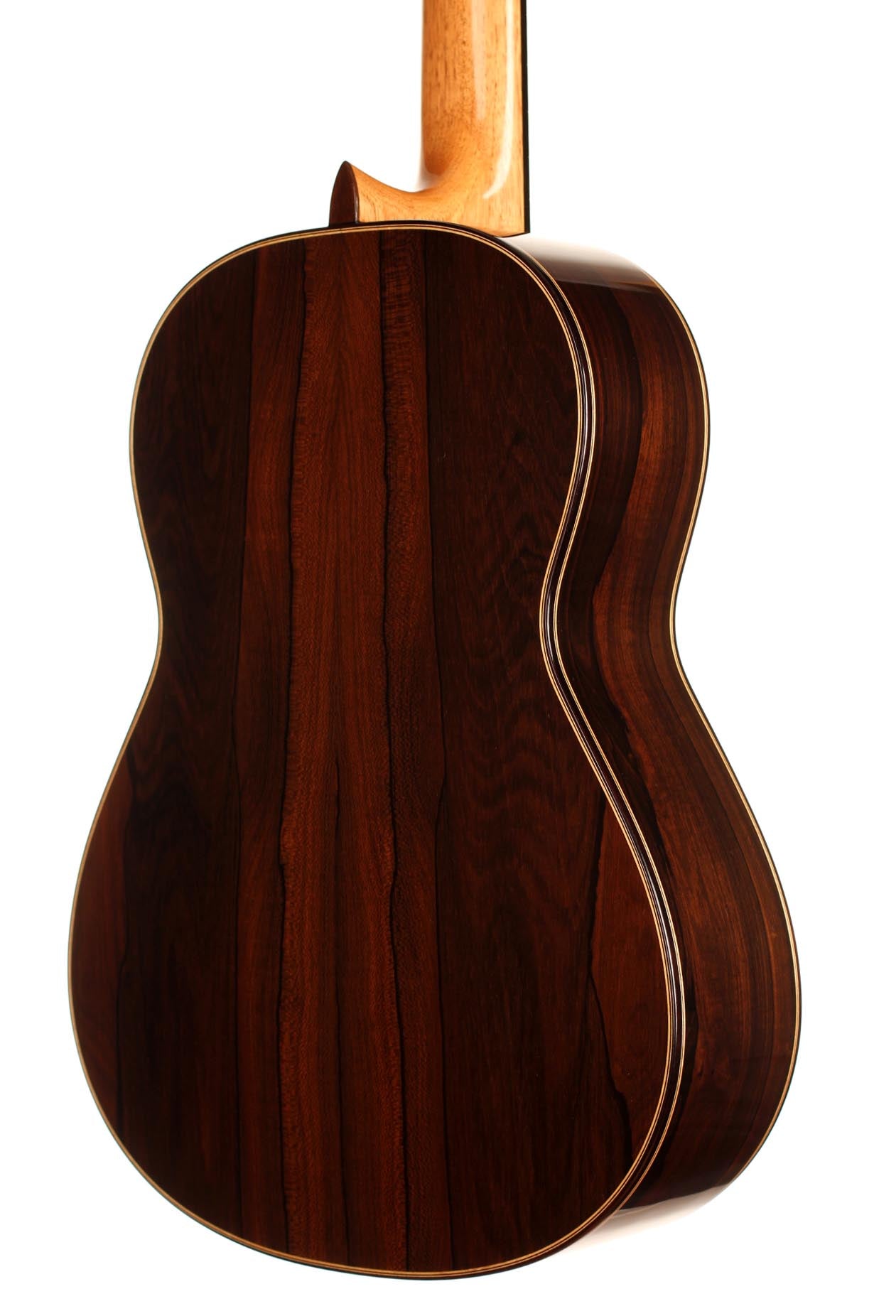 Diese Gitarre kommt direkt aus der Werkstatt José Marin Plazuelos und ist von höchster handwerklicher Ausführung. Zargen und Boden sind aus Zirikote von herausragender Qualität gefertigt. Besonders auffallend sind die brillanten und gleichzeitig sehr offenen und frei klingenden Töne. Die schön singende hohe e-Saite und die für Gitarren aus Granada typischen kraftvollen Bässe runden den voluminösen Klang elegant ab. Ein Hartschalenkoffer ist inklusive.