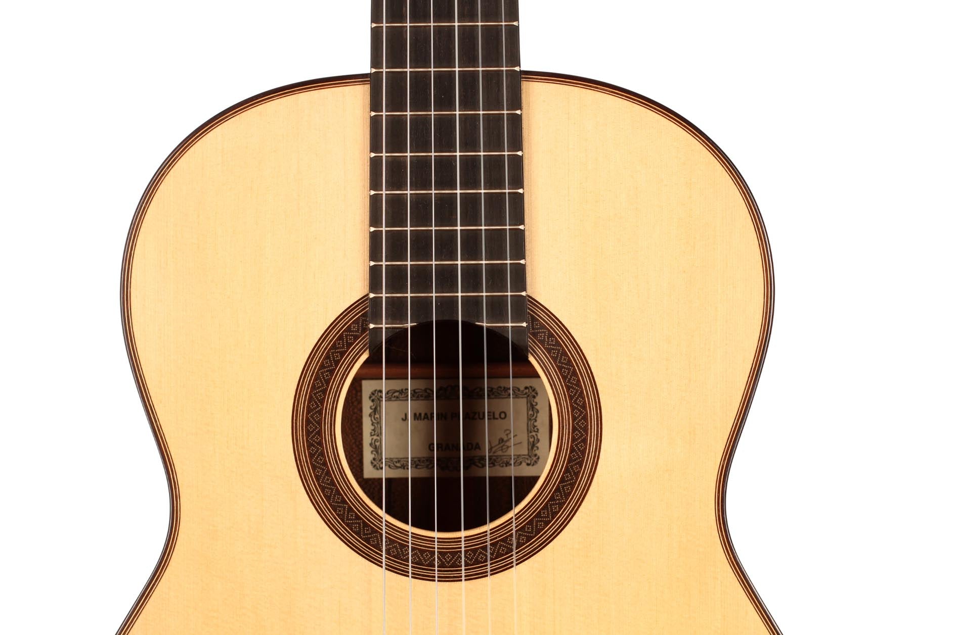 José Marin Plazuelo wurde 1960 in Granada geboren. Er ist der Neffe und Schüler Antonio Marin Monteros. 1974 begann er eine Ausbildung bei seinem Onkel und kurz darauf baute er bereits die ersten Gitarren unter seinem eigenen Namen. Die raffinierten schwarz-weißen Mosaike und die komplett in Schellack veredelte Oberfläche zeugen von seiner feinen Handwerkskunst. Seine Gitarren werden oft von professionellen Gitarristen in großen Konzertsälen auf der ganzen Welt gespielt und haben einen typisch spanischen Klang.