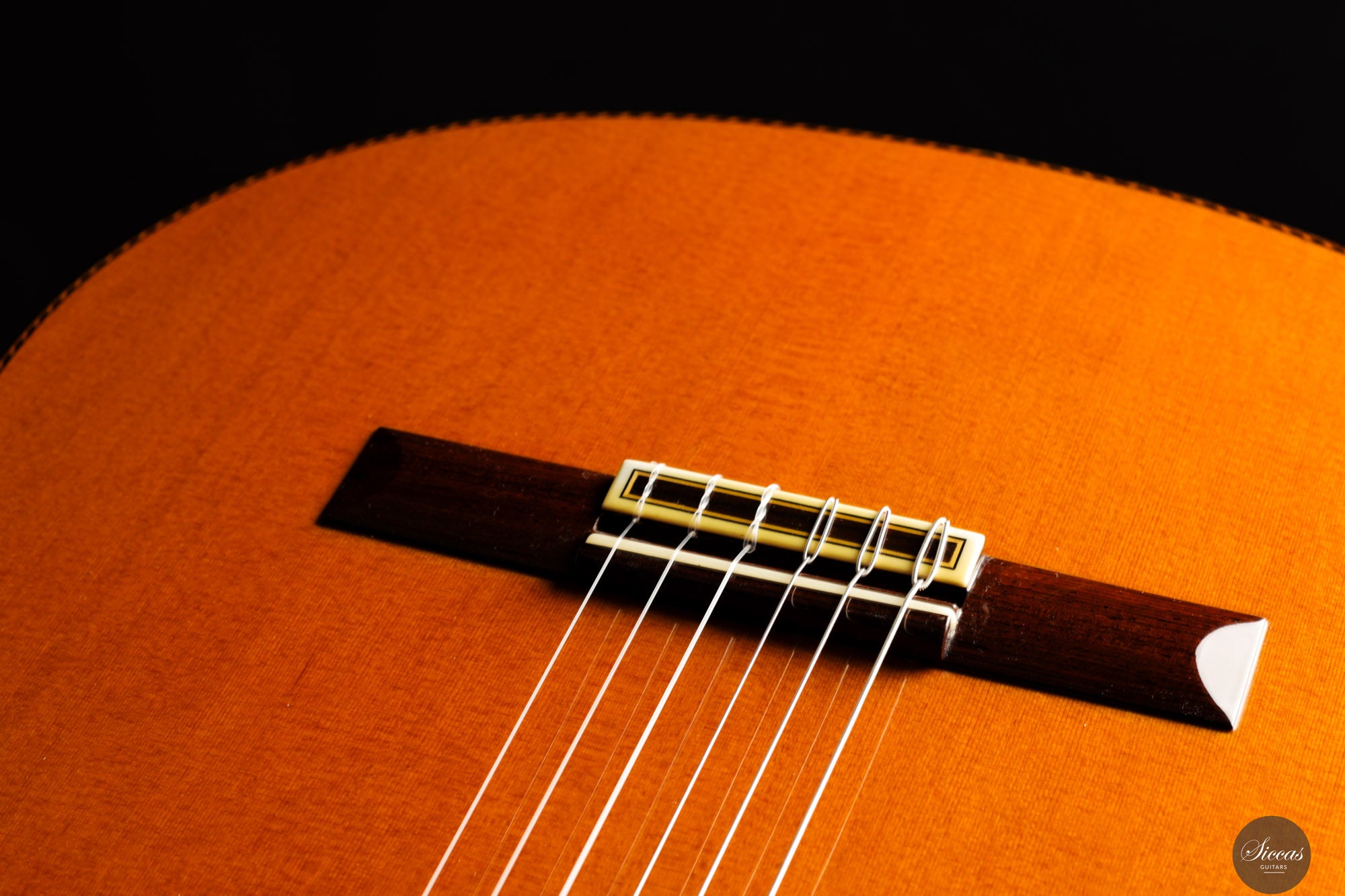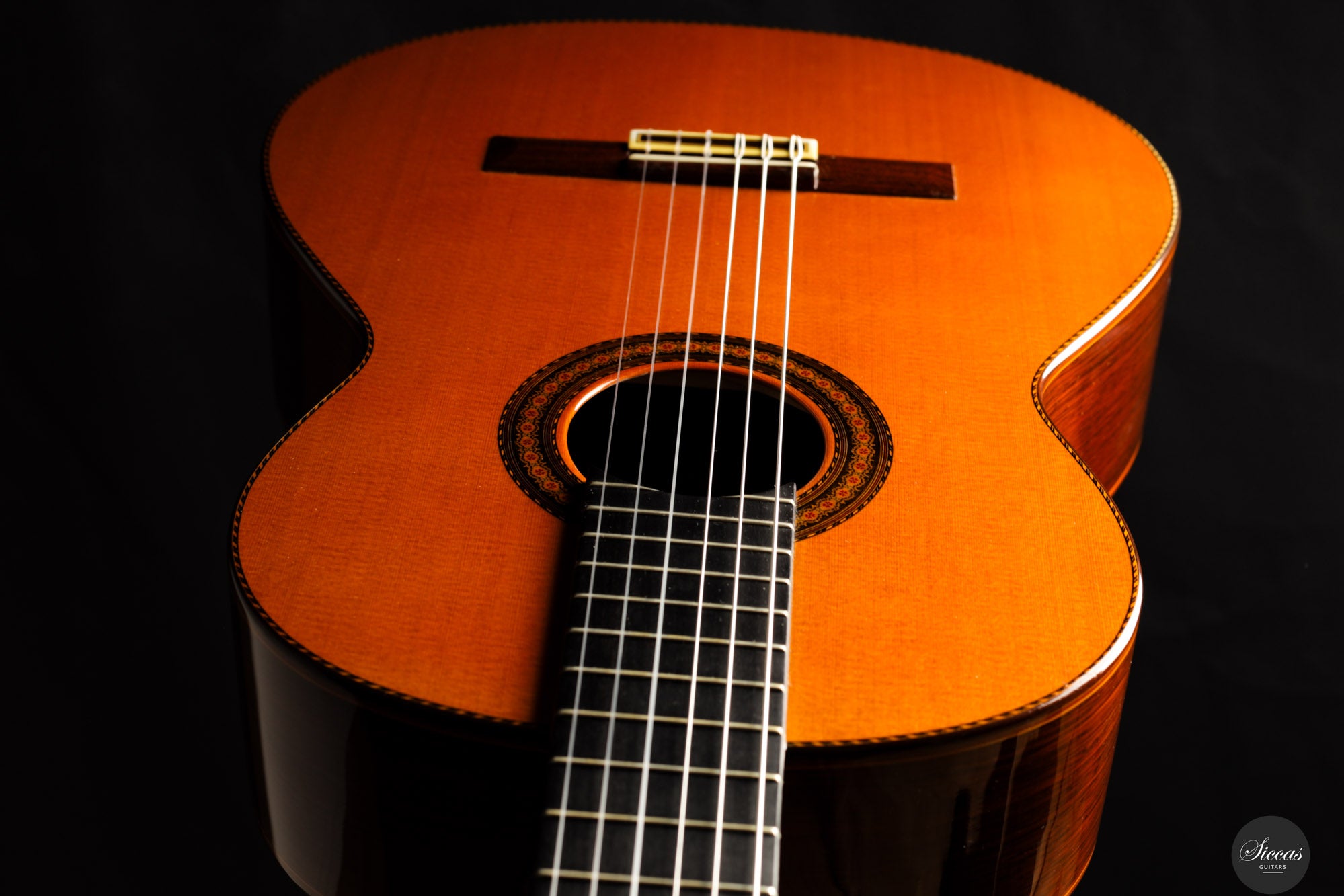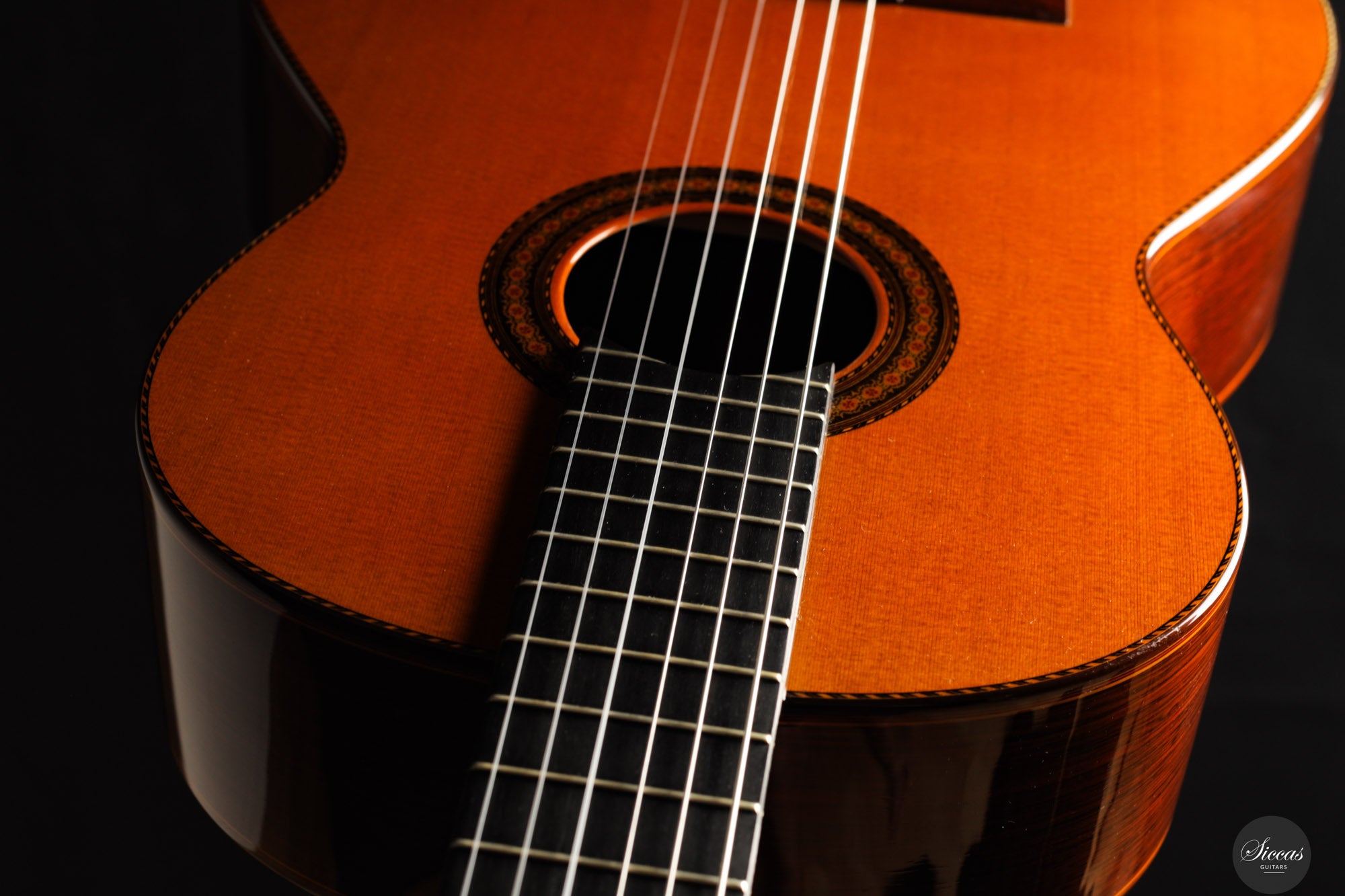 The Ramirez family has been building fine and high-quality guitars since 1882 already. Their instruments have been and are played by some of the greatest guitarists in the world, such as Julian Bream, Andres Segovia, Laurindo Almeida, Oscar Ghiglia, José Luis Gonzales, and many others. Ramirez is an integral part of the history of guitar building. José Ramirez I (1858-1923) trained many guitar builders in his workshop at the end of the nineteenth and beginning of the twentieth century. And José Ramirez III (1922-1995) pioneered using cedarwood as top wood for guitars and built several guitars for Andres Segovia. José Ramirez III (1922-1995) pioneered cedar tops for guitars. His instruments gained international fame in the 1960s through Andrés Segovia and his many students. In 1965, José Ramirez III began developing a new instrument built with a top made of Western Red Cedar (Thuja plicata) and double sides (rosewood and cypress). This revolutionary new way of building guitars and using this innovative type of wood spread very quickly in the guitar world. In addition, Andrés Segovia played several J. Ramirez III was his main concert instrument. He played four instruments over an extended period [1962 (but dated 1963), Spruce, 1965, 1967, 1969 (all three cedar).About the guitar