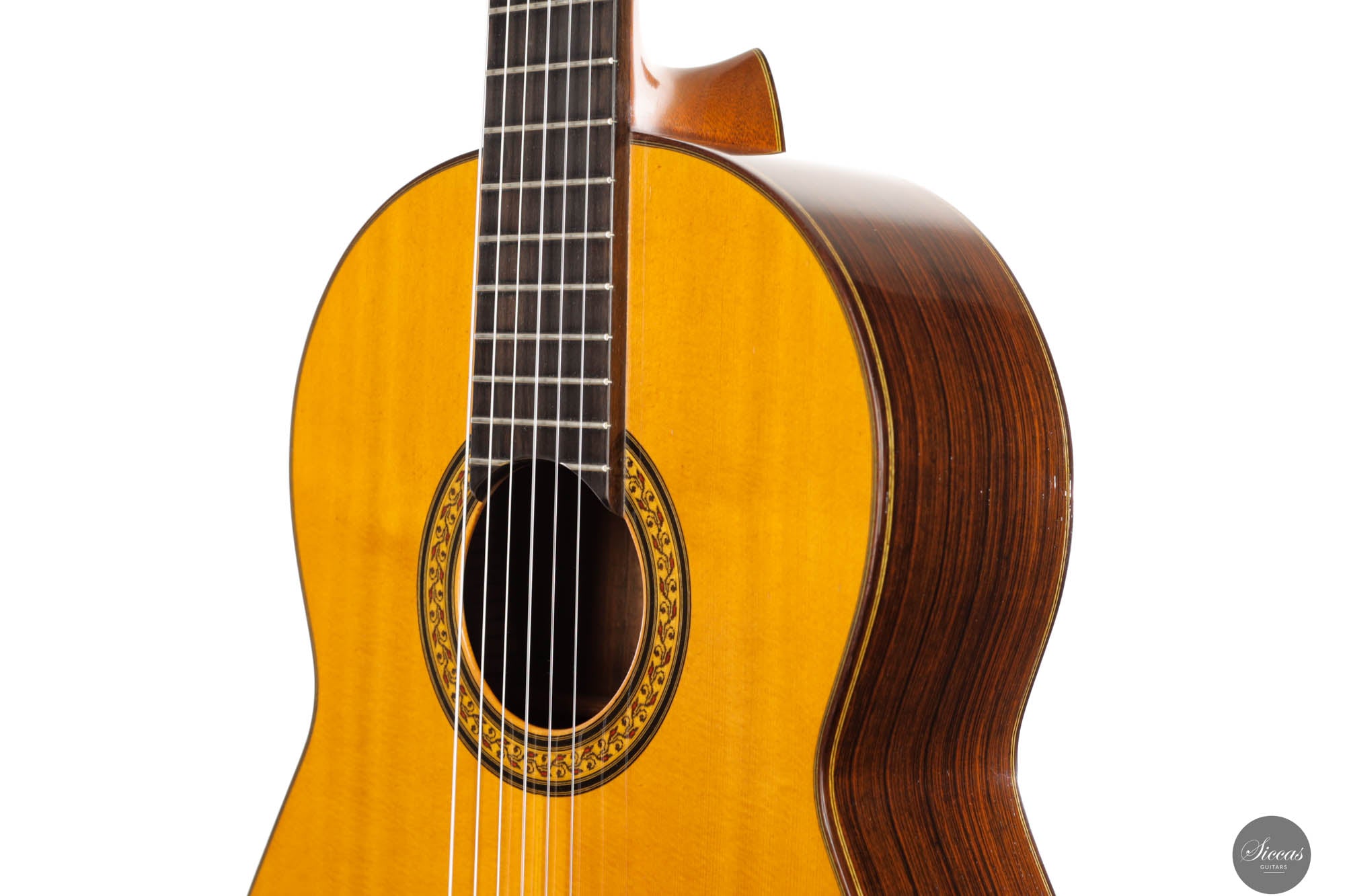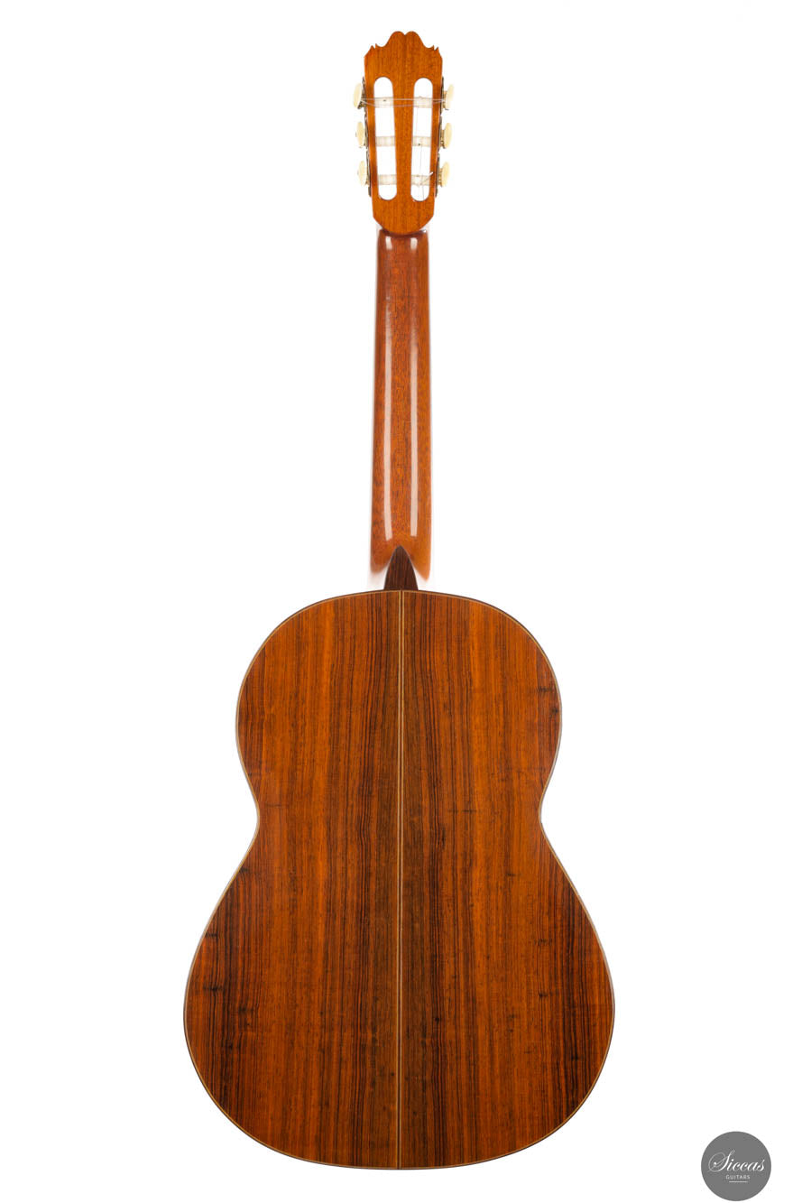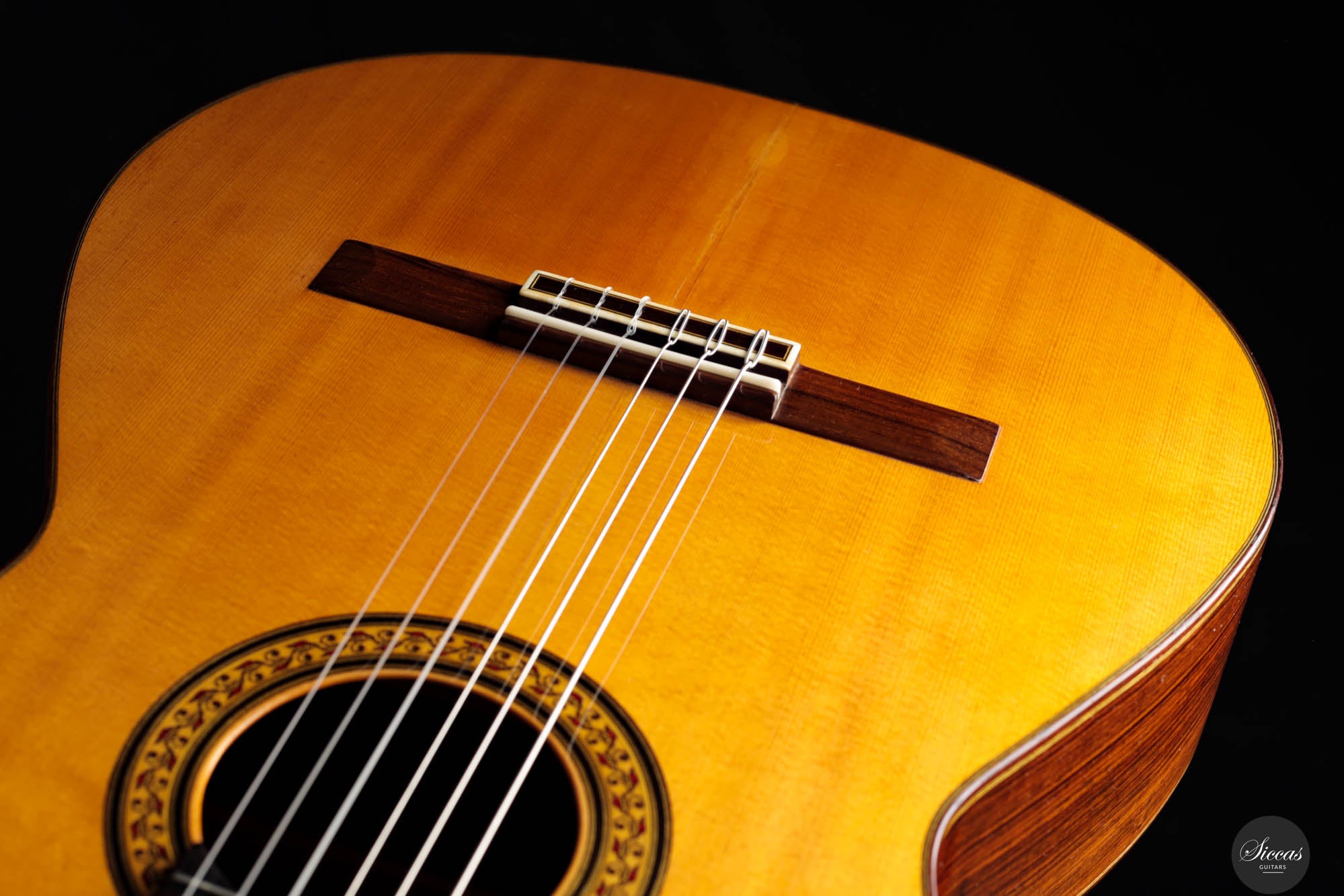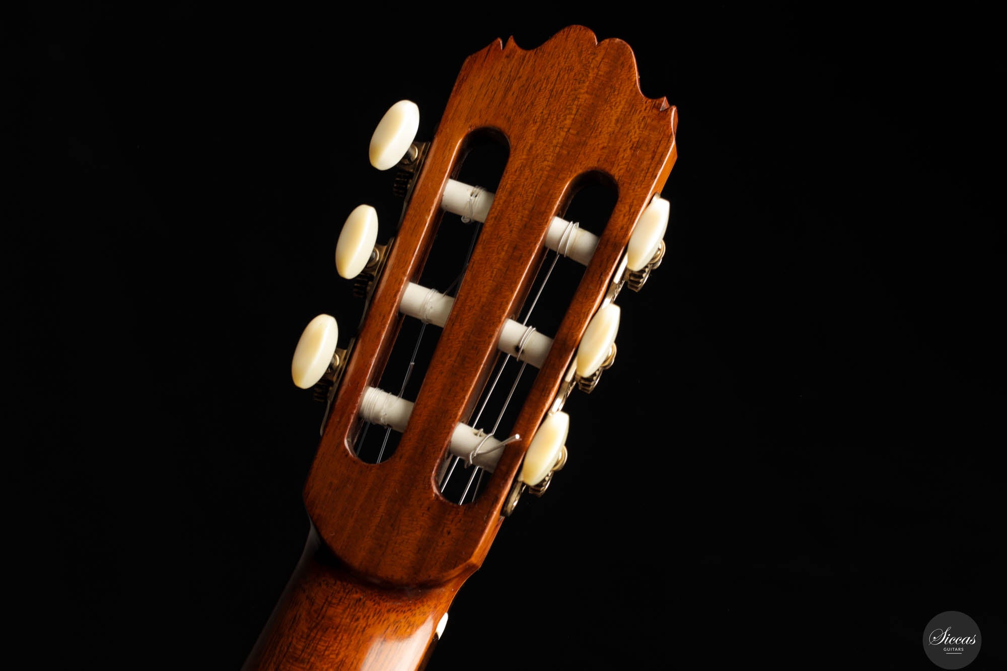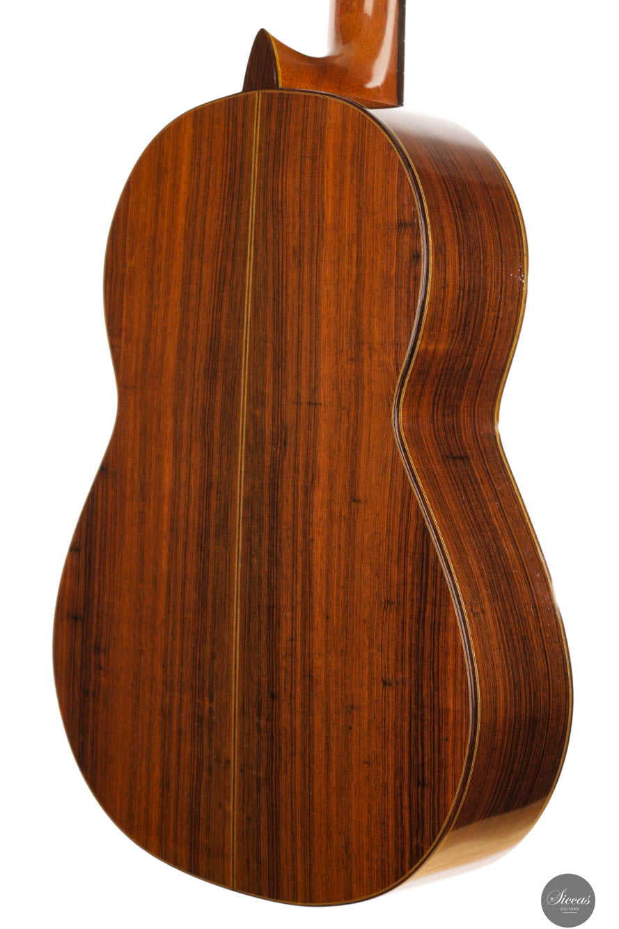 Trotz ihres größeren Halses und der langen Mensur bietet diese Rubio-Gitarre ein wunderschön glattes und elegantes Spielerlebnis. Die akribisch gefertigte Halsform trägt erheblich zur Bespielbarkeit bei und ermöglicht Komfort und Leichtigkeit, auch in komplexeren Stücken. Diese Gitarre ist nicht nur ein Instrument, sondern ein Zeugnis für Rubios meisterhaftes Design und seine Bauweisen. Ihre Präsenz im Buch "The Classical Guitar - A Complete History", abgebildet auf den Seiten 52-54, unterstreicht weiter ihren Status als bemerkenswertes Beispiel für hochwertiges Handwerk. Durch unsere Hände gegangen, repräsentiert diese Rubio-Gitarre eine seltene Gelegenheit, ein Stück der Geschichte der klassischen Gitarre zu besitzen, das sowohl einen reichen, resonanten Klang bietet als auch eine Verbindung zum Vermächtnis eines der großen Luthiers des zwanzigsten Jahrhunderts.