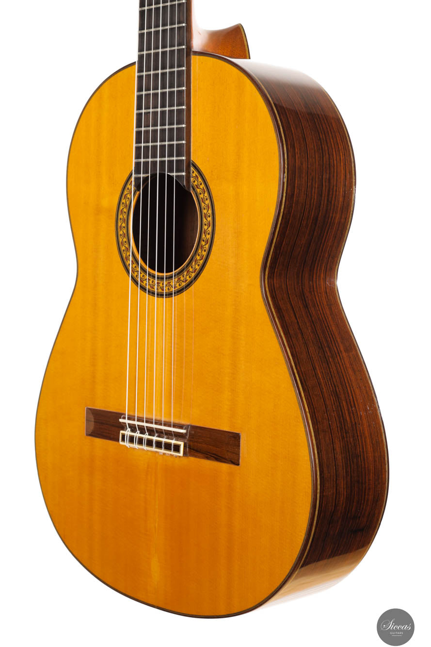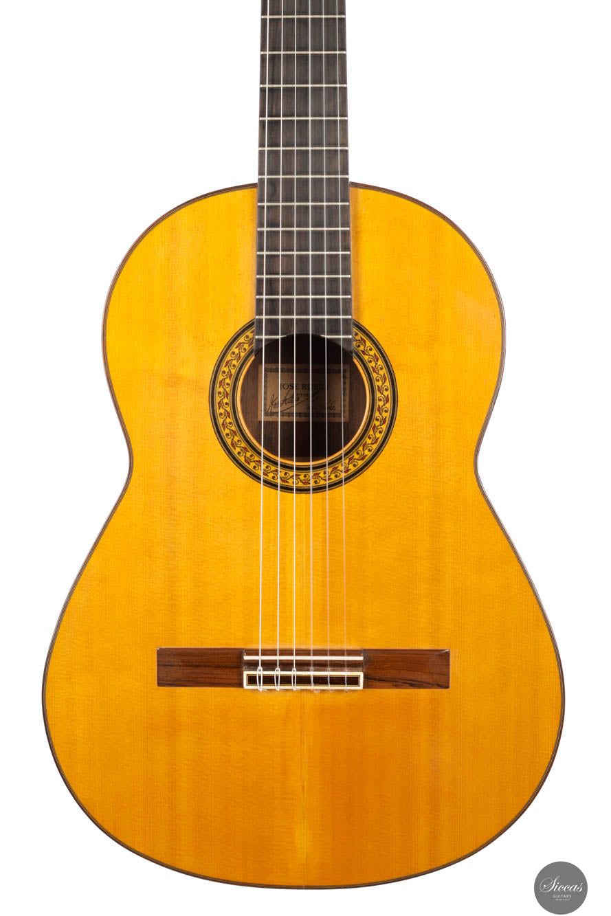 Dieses bemerkenswerte Instrument von David "Jose" Rubio, gefertigt während seiner wegweisenden New Yorker Periode in den 1960er Jahren, ist ein bedeutendes Stück der Geschichte der klassischen Gitarre. Bekannt für seine Zusammenarbeit mit Julian Bream, sind Rubios Gitarren aus dieser Ära, einschließlich jener, die Bream 1965 und 1966 spielte, sowohl bei Musikern als auch bei Sammlern sehr begehrt. Diese spezielle Gitarre verkörpert den kühnen Klang, der charakteristisch für Rubios Handwerk ist, vergleichbar an Kraft und Intensität mit den renommierten Gitarren von Fleta oder Rodriguez aus derselben Periode. Bekannt für ihre Gleichmäßigkeit und Ausgewogenheit in allen Registern, fängt diese Rubio-Gitarre auch die Schönheit und Lyrik ein, für die der Luthier gefeiert wird. Das Instrument hat einen gut reparierten Riss entlang der Mittelnaht auf der Decke und einige Nachbesserungen des Finishs in diesem Bereich, aber diese Restaurierungen beeinträchtigen nicht seine außergewöhnliche Klangqualität. Die originalen Mechaniken wurden durch ein Set Sloanes ersetzt, dennoch bleibt die Gitarre größtenteils in ihrem originalen Zustand und bewahrt so ihre historische Authentizität.
