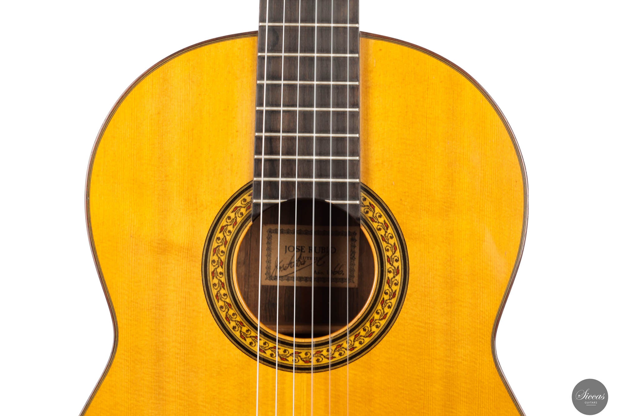 David "José" Rubio ist einer der bekanntesten englischen Gitarrenbauer. Nachdem er nach Sevilla und dann nach Madrid gezogen war, um Flamencogitarre zu lernen, entwickelte er ein starkes Interesse am Gitarrenbau. In New York, USA, eröffnete er 1963 seine erste eigene Werkstatt. Sein erstes Treffen mit Julian Bream fand einige Monate später statt und ist der Ausgangspunkt einer engen Freundschaft. Julian Bream spielte mehrere von Rubios Gitarren, eine sehr ähnliche Gitarre wie diese: ein Instrument von 1966, auf dem er "Julian Bream and his Friends" (1968) aufnahm. Ab 1967 zog D. J. Rubio zurück nach England. Er blieb bis 1969 in Julian Breams Haus in Semley, bevor er 1969 eine Werkstatt in der Nähe von Oxford eröffnete. Er baute nicht nur Gitarren, sondern auch Lauten (gespielt von Julian Bream), Vihuelas, Theorben, Cembalos, Violas da Gamba, Barockgitarren, etc. In den 1980er Jahren verlegte er seine Werkstatt nach Cambridge.