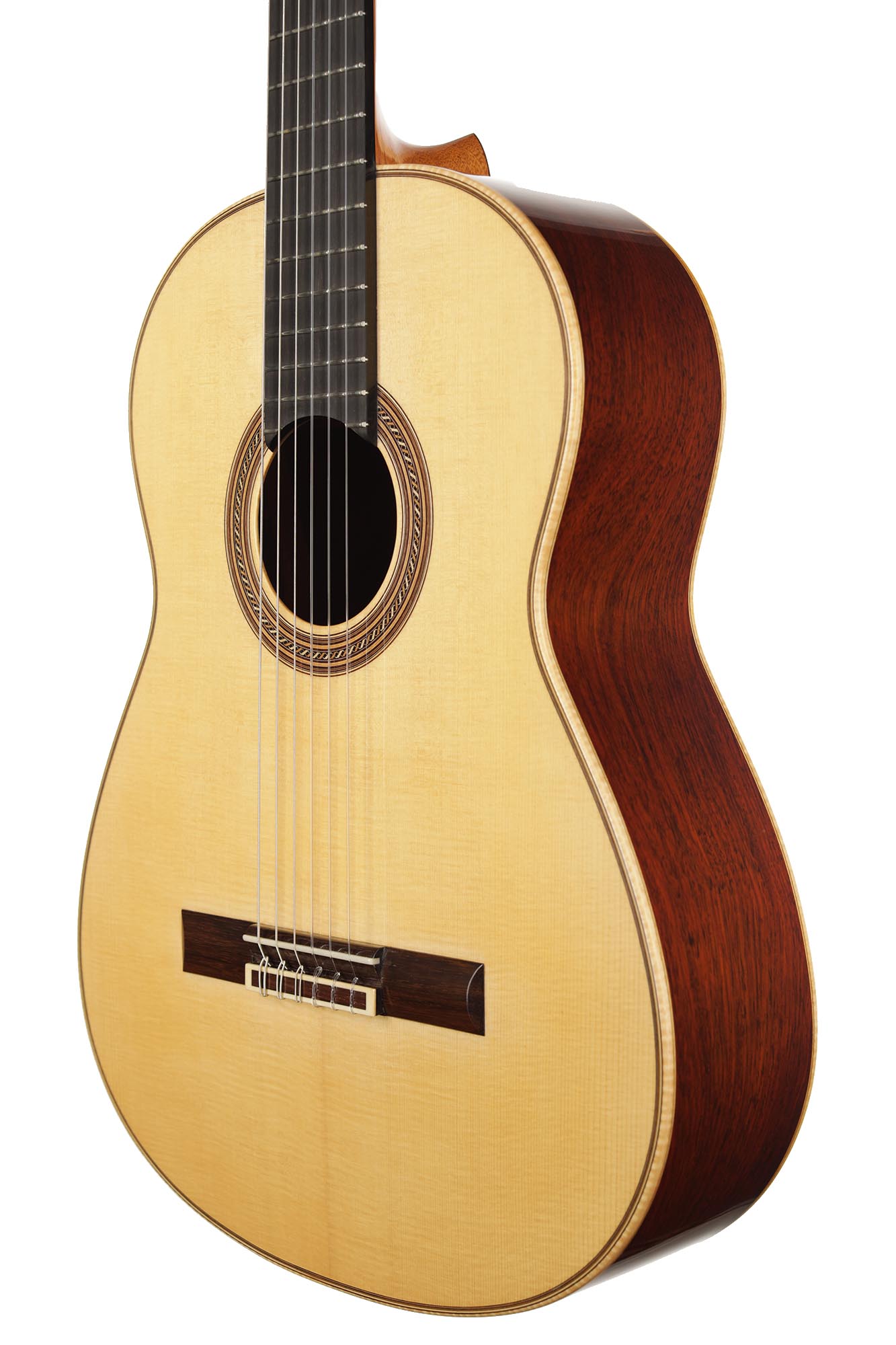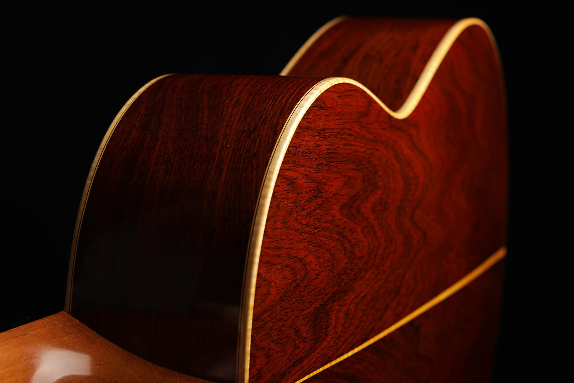 Diese Gitarre wurde 2018 mit einem bemerkenswerten Satz Cocobolo und mit einer sehr schönen Fichtendecke gebaut. Die handwerkliche Verarbeitung ist auf höchstem Niveau, jede Fuge und die sorgfältig gefertigte Rosette sind makellos. Die Höhen klingen klar und geschmeidig mit viel Sustain, und die Bässe elegant mit viel Energie.Der Gesamtklangcharakter ist sehr ausgewogen, dynamisch flexibel und sehr ansprechend. Diese Vigli sieht aus wie neu und ist in einem ausgezeichneten Zustand.