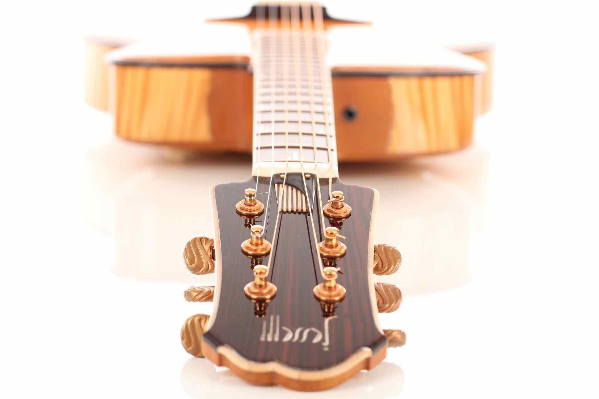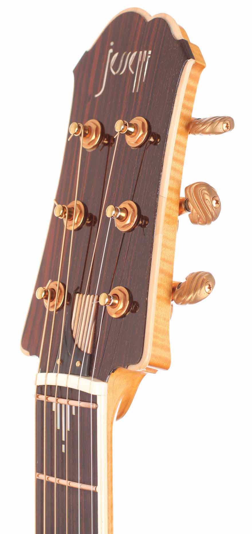 A Fabergé among the world class luthiers. Joseph Jesselli is an incredible talented New York based veteran Luthier who is known for his beautiful guitars. He selects his wood and materials through a long process of screening. Due to his highly lavish detail work and build quality he finishes only 2 to 3 guitars per year. He builds as many parts as possible by himself. For example tuner buttons, bridges, pickup cover or switch knobs.