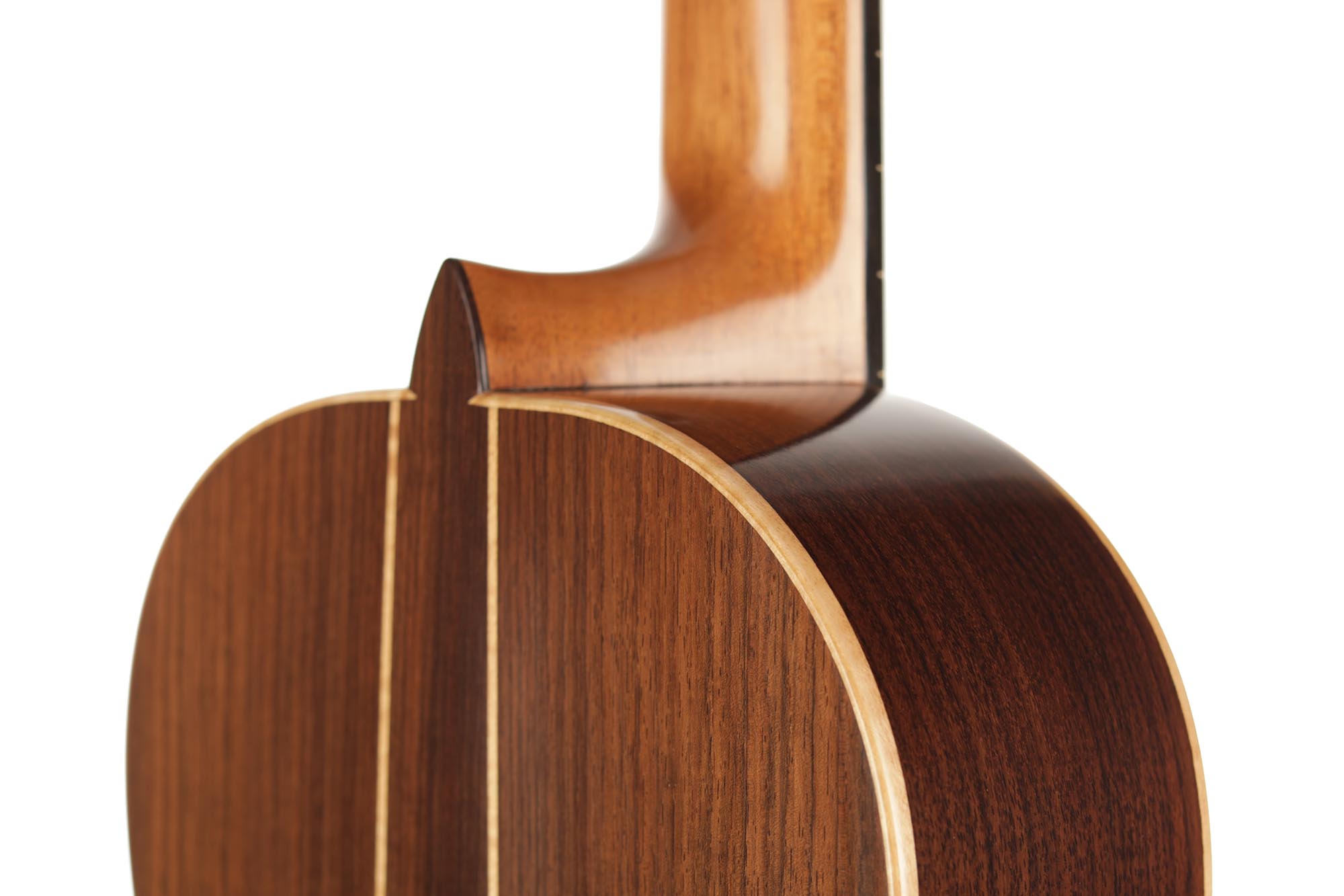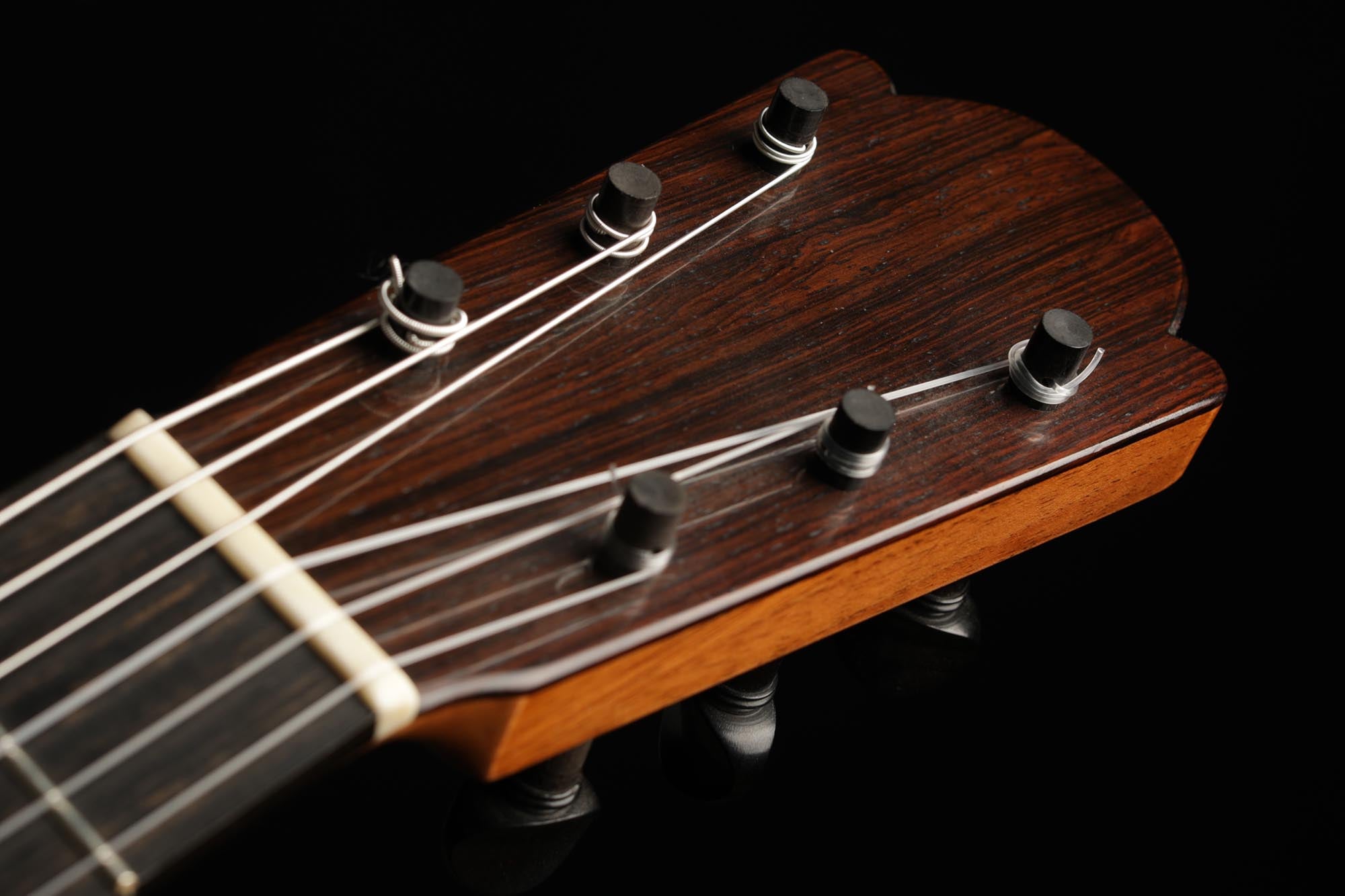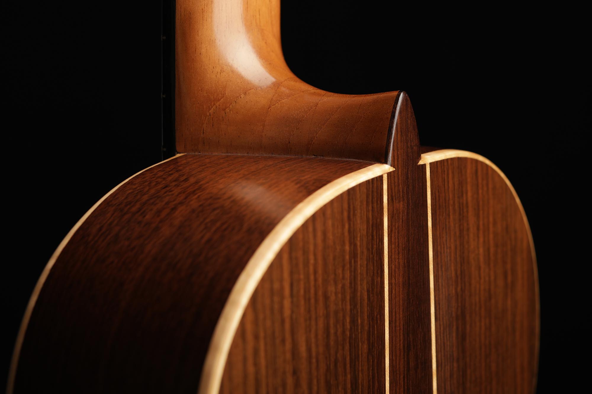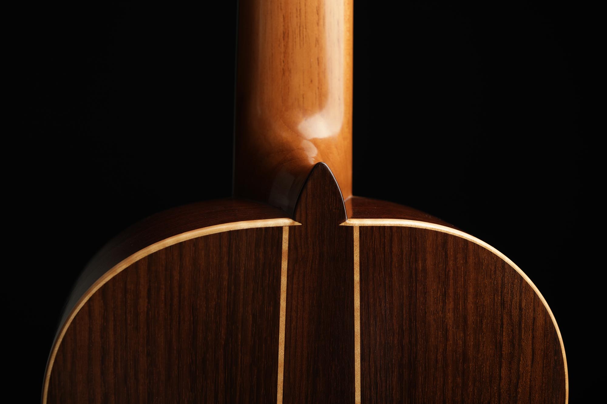 Die Gitarre ist als Kopie von einer Campo y Castro aus dem Jahr 1896 gebaut. Bei der Begutachtung des Instruments ist ersichtlich mit wieviel Finesse sie gebaut wurde, voller kleiner künstlerischer Details, die es schön und inspirierend zum Spielen machen. Ihr Timbre ist sehr süß mit einer Reihe von schimmernden Obertönen, die bei frühromantischen Instrumenten sehr präsent sind. Mit einer gleichmäßig gemaserten Fichtendecke und einem Boden und Zargen aus hochwertigem indischen Palisanderholz gebaut, ist das Volumen bei einem so kleinen Korpus überraschend. Sustain ist mehr als genug für alle Arten von Repertoire vorhanden. Die Wirbel im alten Stil sind leicht zu stimmen und halten sehr gut die Stimmung. Ein Hartschalenkoffer wird mitgeliefert.