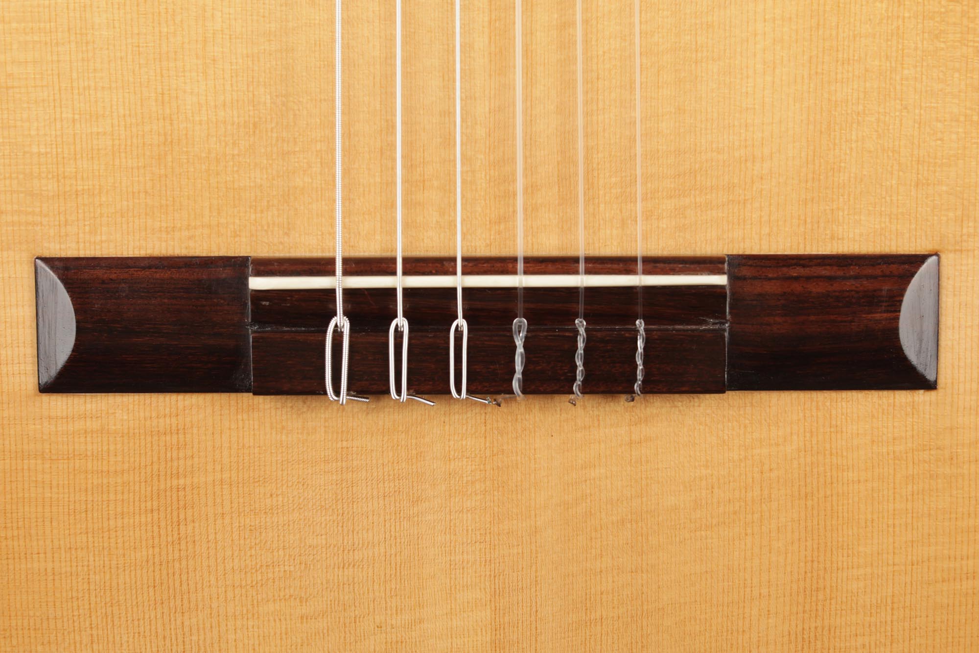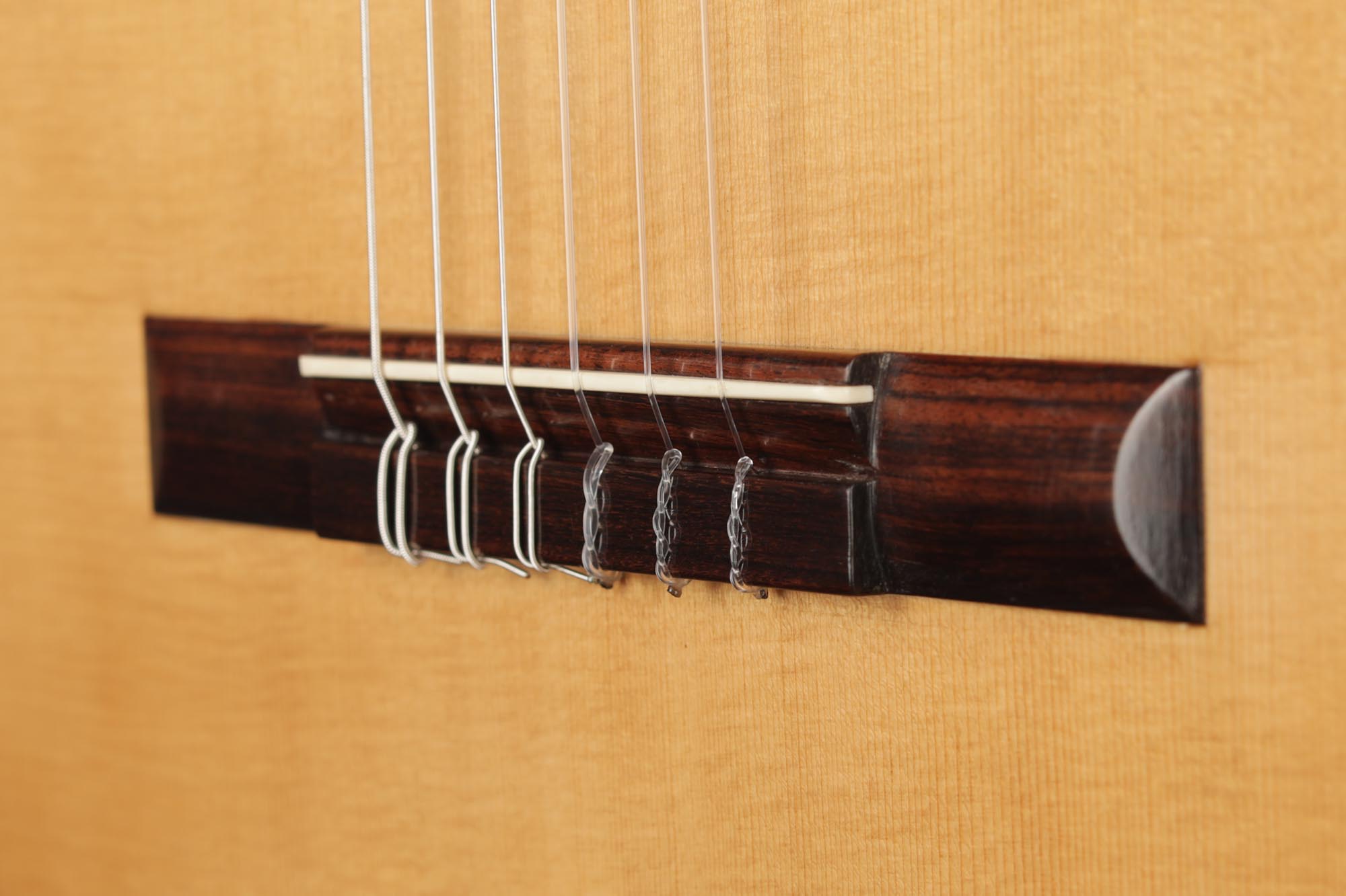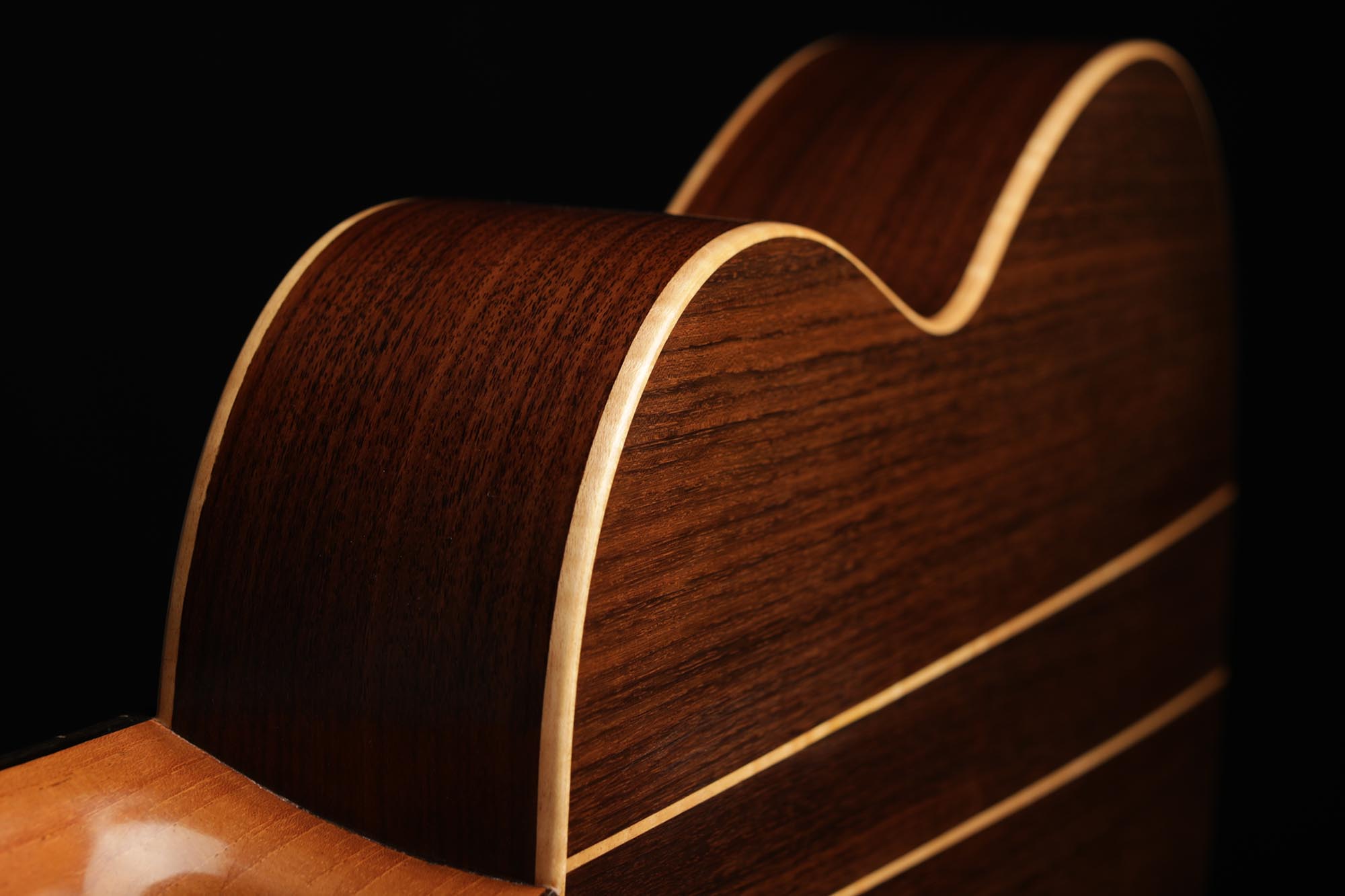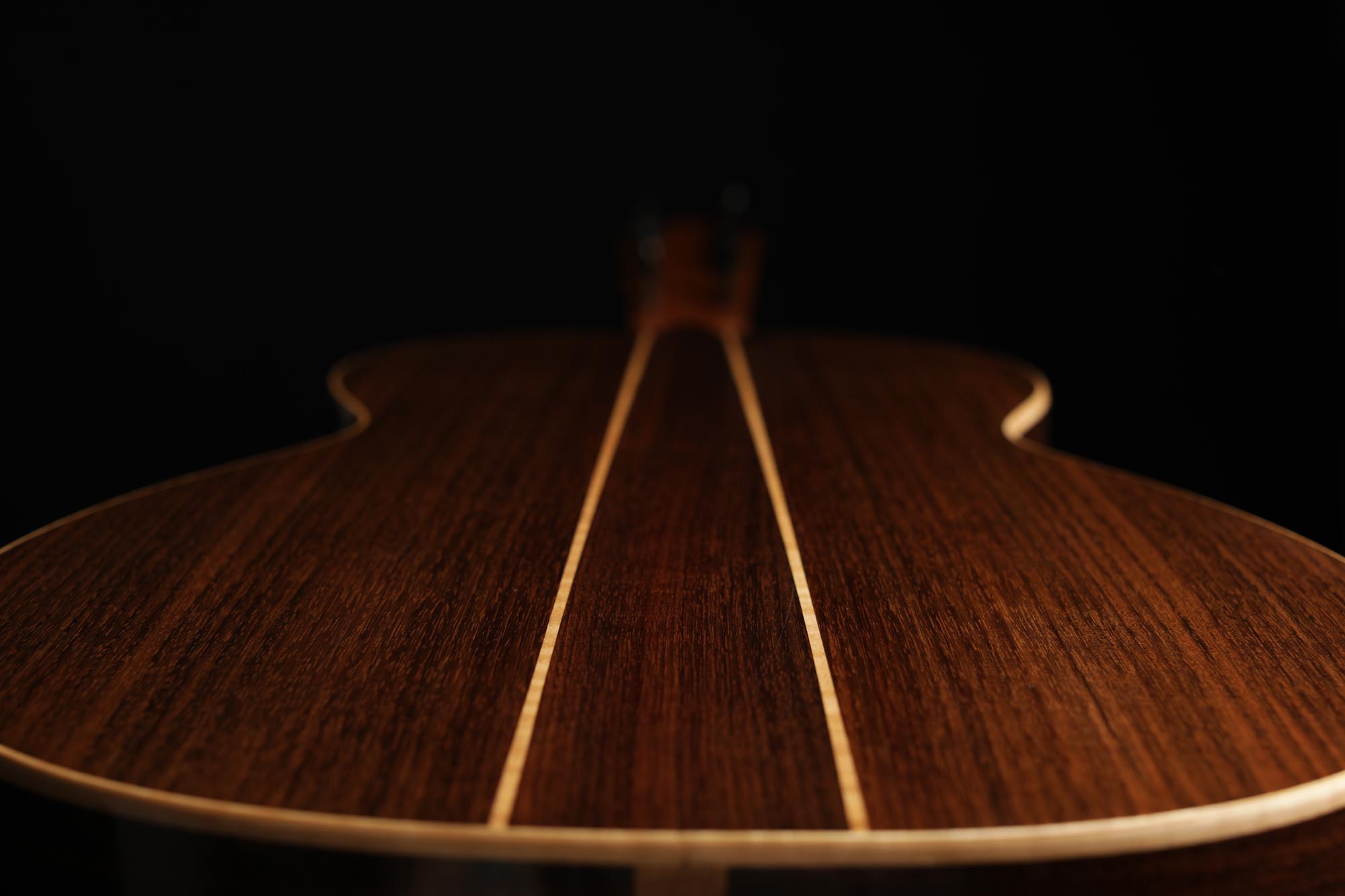 Die Gitarre ist als Kopie von einer Campo y Castro aus dem Jahr 1896 gebaut. Bei der Begutachtung des Instruments ist ersichtlich mit wieviel Finesse sie gebaut wurde, voller kleiner künstlerischer Details, die es schön und inspirierend zum Spielen machen. Ihr Timbre ist sehr süß mit einer Reihe von schimmernden Obertönen, die bei frühromantischen Instrumenten sehr präsent sind. Mit einer gleichmäßig gemaserten Fichtendecke und einem Boden und Zargen aus hochwertigem indischen Palisanderholz gebaut, ist das Volumen bei einem so kleinen Korpus überraschend. Sustain ist mehr als genug für alle Arten von Repertoire vorhanden. Die Wirbel im alten Stil sind leicht zu stimmen und halten sehr gut die Stimmung. Ein Hartschalenkoffer wird mitgeliefert.