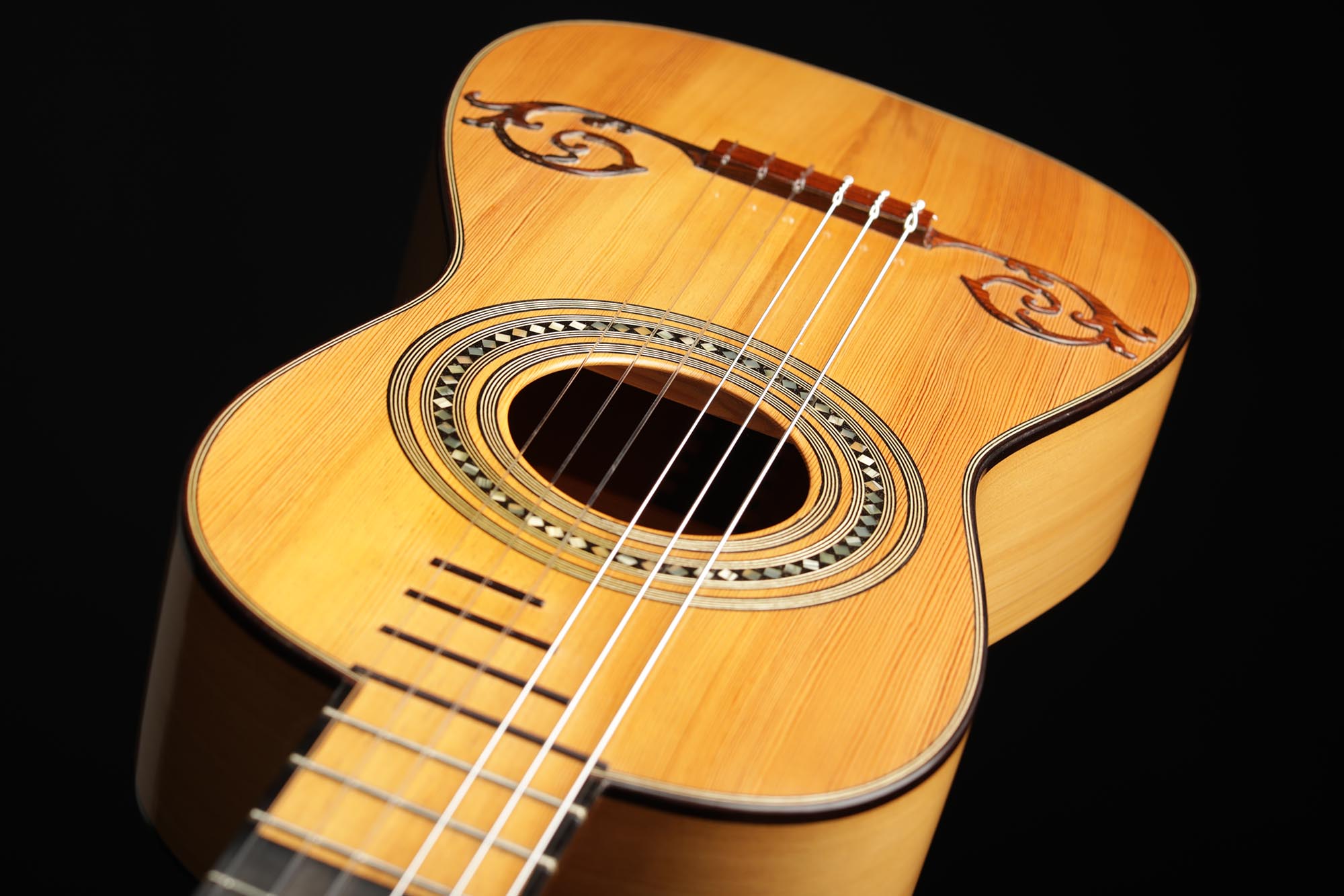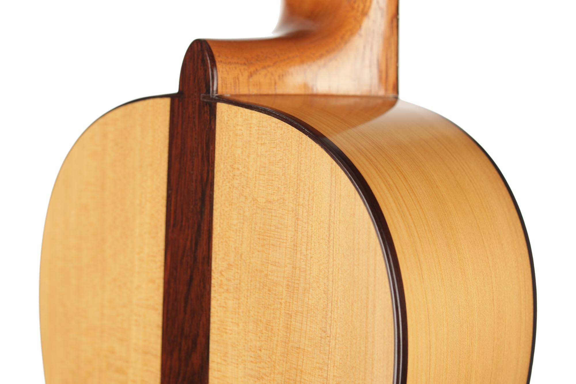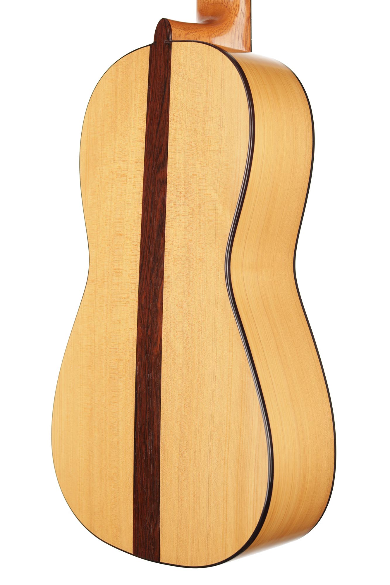 Die Fichtendecke dieser Kopie einer Juan Pagés von 1792 ist mehr als 450 Jahre alt. Wenn man an den Saiten des Instruments zupft und das 450 Jahre alte Holz vibrieren hört, empfindet man Ehrfurcht vor der Geschichte. Zart und lieblich kommt einem der Klang in den Sinn. Es ist eine hoch ansprechbare und leicht zu spielende Gitarre. Die Bauqualität ist ausgezeichnet, mit viel aufwendigem Design, wie der schöne handgeschnitzte Steg. Aromatischer Zypressenduft steigt beim Spielen aus dem Schallloch auf und verweilt im Raum. Ein Hartschalenkoffer wird mitgeliefert.