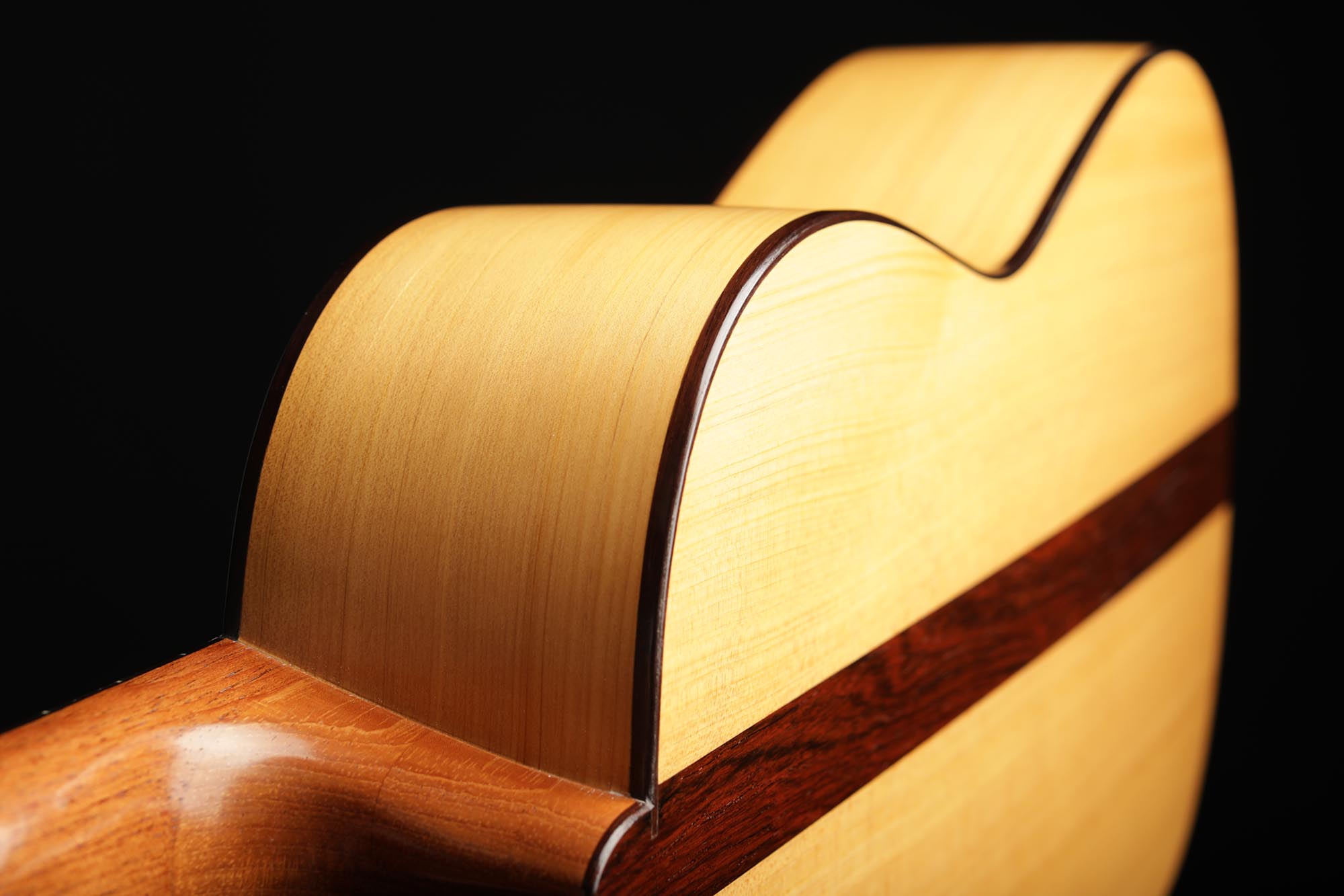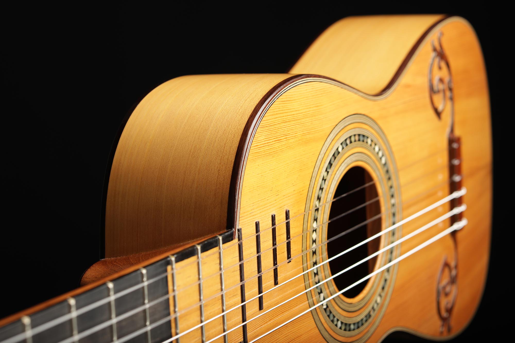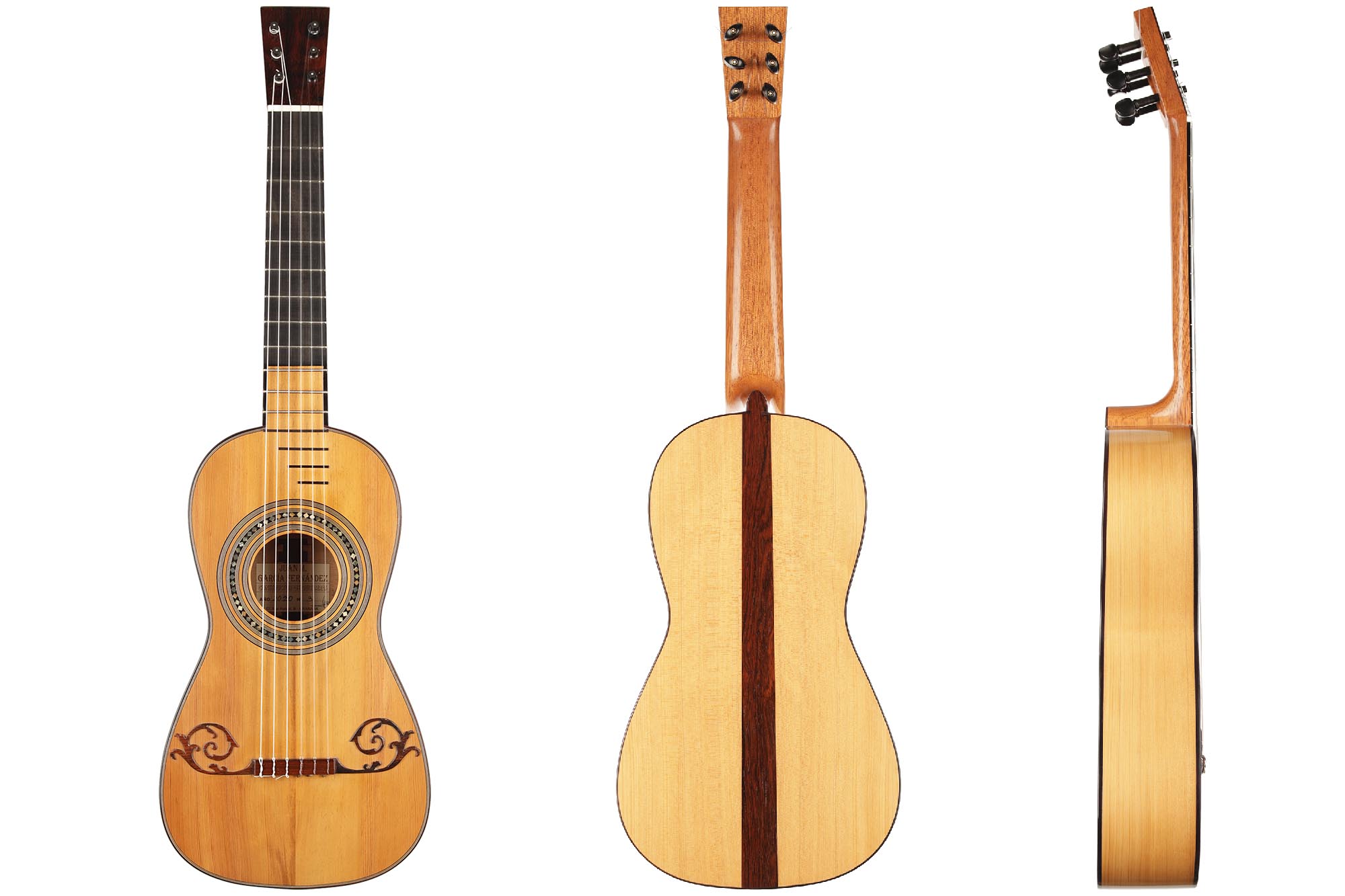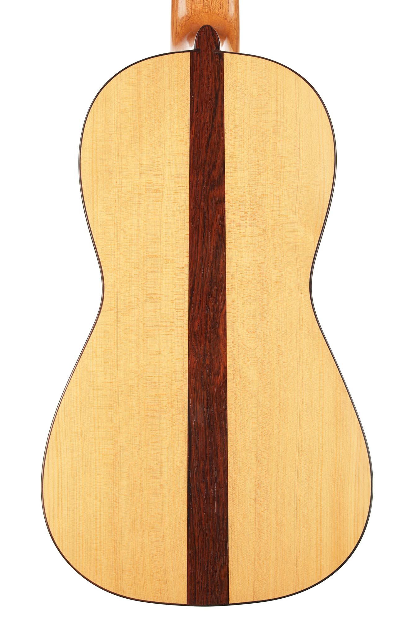 Die Fichtendecke dieser Kopie einer Juan Pagés von 1792 ist mehr als 450 Jahre alt. Wenn man an den Saiten des Instruments zupft und das 450 Jahre alte Holz vibrieren hört, empfindet man Ehrfurcht vor der Geschichte. Zart und lieblich kommt einem der Klang in den Sinn. Es ist eine hoch ansprechbare und leicht zu spielende Gitarre. Die Bauqualität ist ausgezeichnet, mit viel aufwendigem Design, wie der schöne handgeschnitzte Steg. Aromatischer Zypressenduft steigt beim Spielen aus dem Schallloch auf und verweilt im Raum. Ein Hartschalenkoffer wird mitgeliefert.
