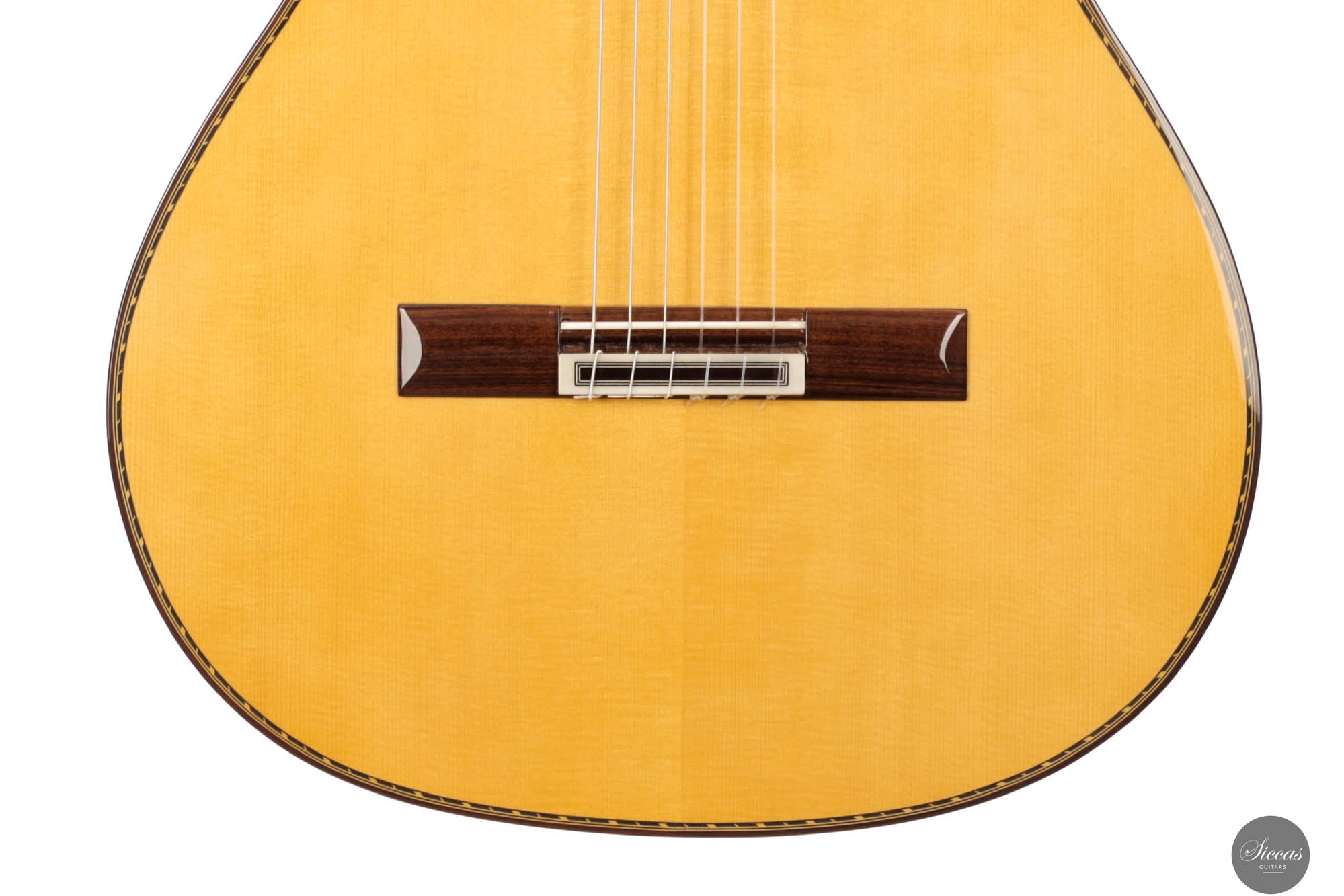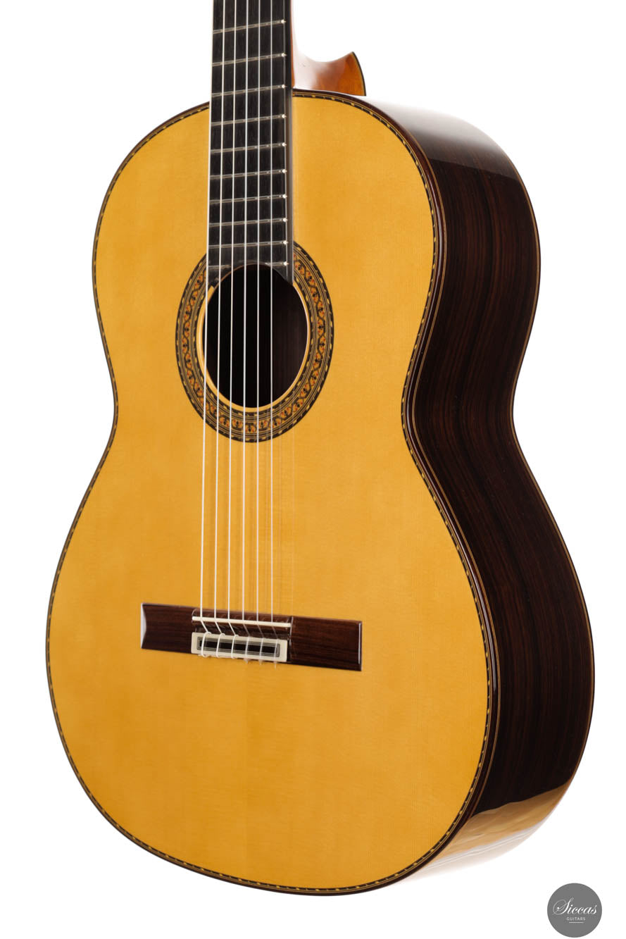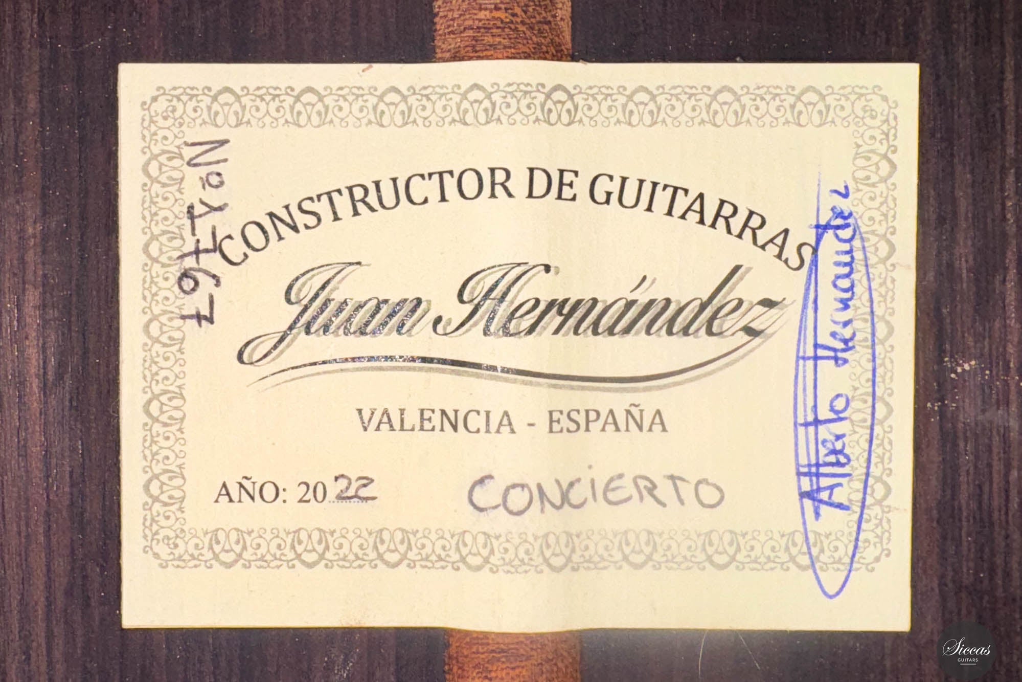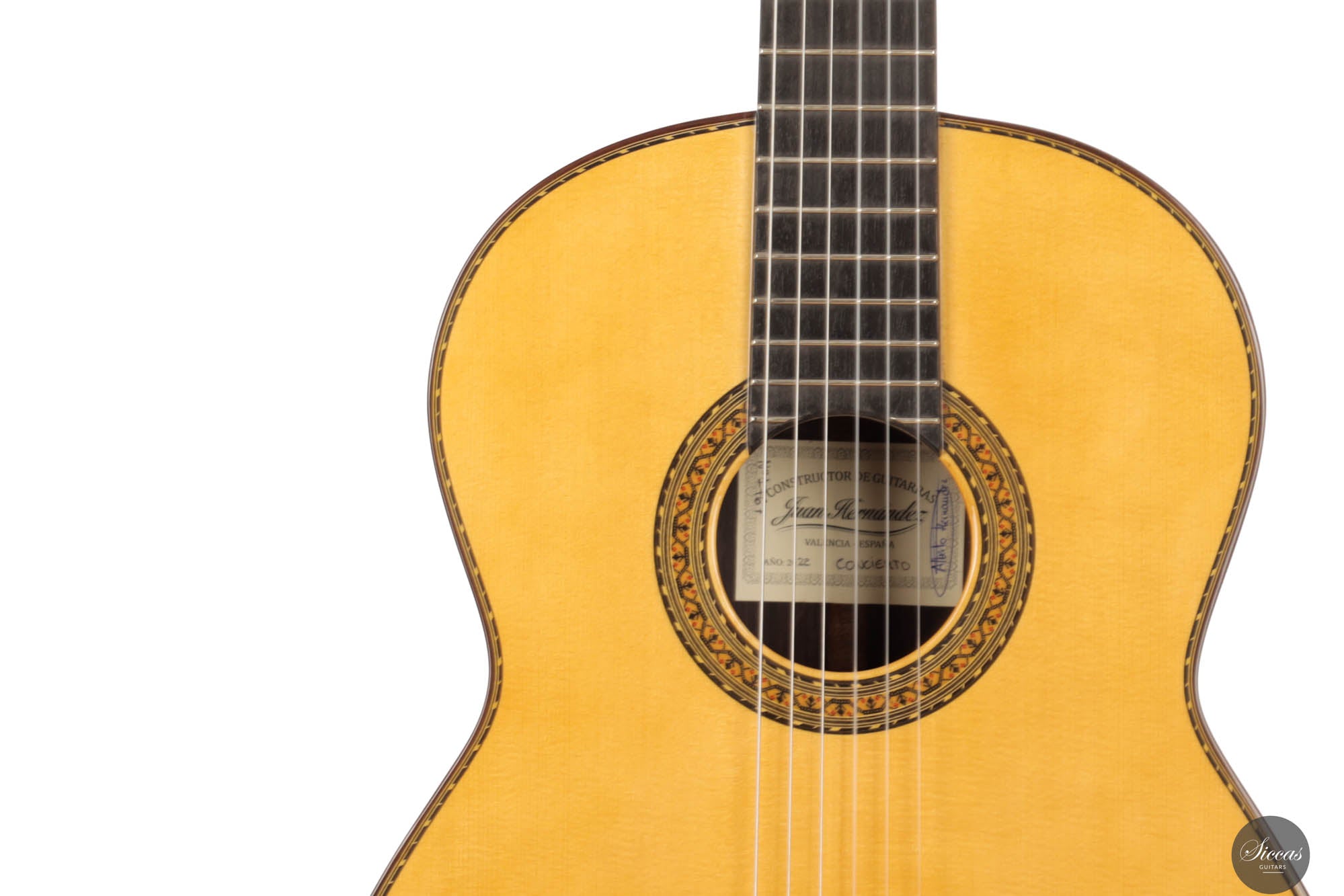 Juan Hernández, geboren 1948 in Turís, Valencia, begann seine illustre Karriere im Gitarrenbau bereits im zarten Alter von 15 Jahren als Lehrling in der Esteve Gitarrenwerkstatt. Dort verfeinerte er sein Handwerk und entwickelte ein tiefes Reservoir an Wissen im Gitarrenbau. Im Laufe der Jahre blühten Hernández' Fähigkeiten auf, was ihn dazu brachte, zusammen mit seinem Sohn, Alberto Hernández, und einem Team von geschickten Handwerkern zu arbeiten. Gemeinsam haben sie weiterhin die hohen Standards des Handwerks aufrechterhalten, die seinem Unternehmen einen angesehenen internationalen Ruf eingebracht haben. Heute wird Juan Hernández nicht nur für seine traditionellen Techniken gefeiert, sondern auch für seine Fähigkeit, jeder Gitarre ein Stück spanisches musikalisches Erbe einzuhauchen.