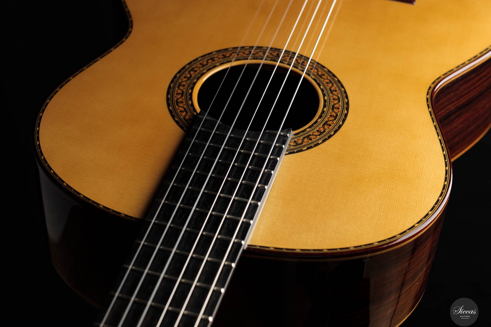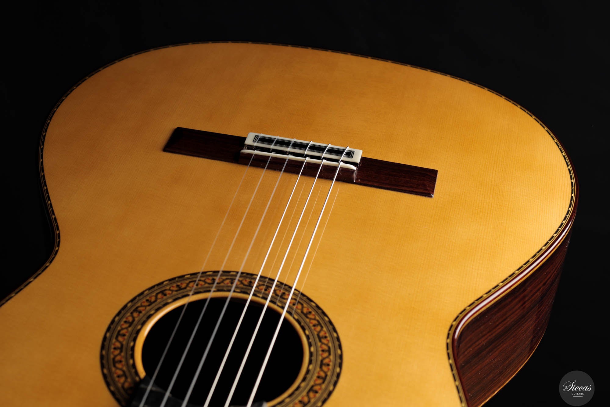 Die klassische Gitarre mit ihren weichen Nylonsaiten und ihrem charakteristischen Timbre ist zum Symbol der Kammermusik, der spanischen Tradition und des Konzertrepertoires geworden. Ihre moderne Form prägte Antonio de Torres im 19. Jahrhundert, indem er den Standard für Korpus, Fächerbeleistung und die 65-Zentimeter-Mensur setzte, die bis heute verwendet werden. Instrumente dieser Kategorie eröffnen eine reiche Palette von den feinen romantischen Miniaturen Tárregas bis zu den majestätischen Konzerten Rodrigos. Hier finden Sie Gitarren, die historische Kontinuität bewahren und zugleich zu neuen Interpretationen anregen.