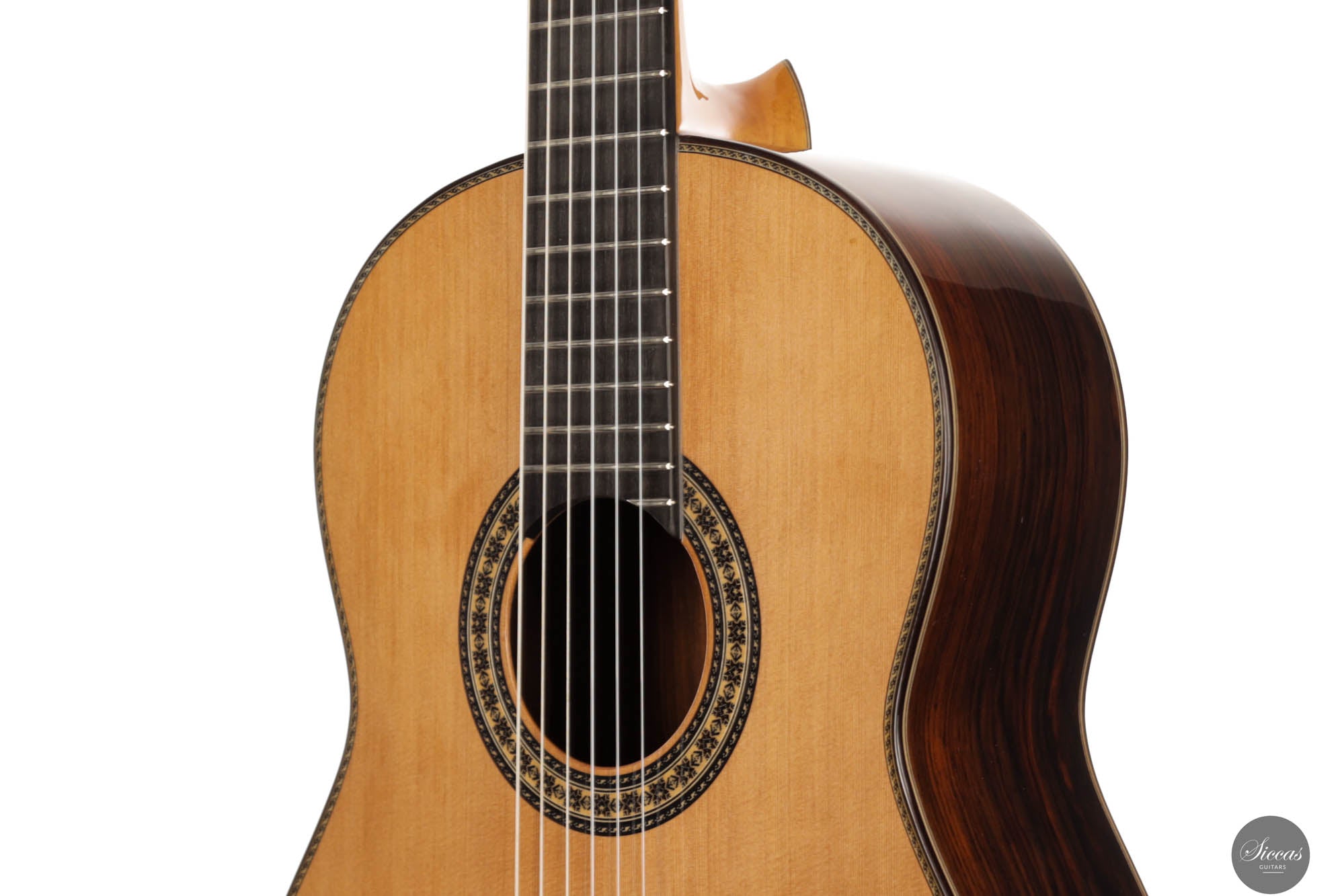 Juan Hernández, geboren 1948 in Turís, Valencia, begann seine herausragende Karriere im Gitarrenbau im zarten Alter von 15 Jahren als Lehrling in der Gitarrenwerkstatt Esteve. Dort verfeinerte er sein Handwerk und entwickelte ein tiefes Reservoir an Wissen über den Gitarrenbau. Über die Jahre blühten Hernández’ Fähigkeiten auf, was ihn dazu brachte, zusammen mit seinem Sohn, Alberto Hernández, und einem Team von geschickten Kunsthandwerkern zu arbeiten. Gemeinsam haben sie weiterhin die hohen Standards der Handwerkskunst aufrechterhalten, die seiner Firma einen angesehenen internationalen Ruf eingebracht haben. Heute wird Juan Hernández nicht nur für seine traditionellen Techniken gefeiert, sondern auch für seine Fähigkeit, jeder Gitarre ein Stück spanisches Musikerbe einzuhauchen.