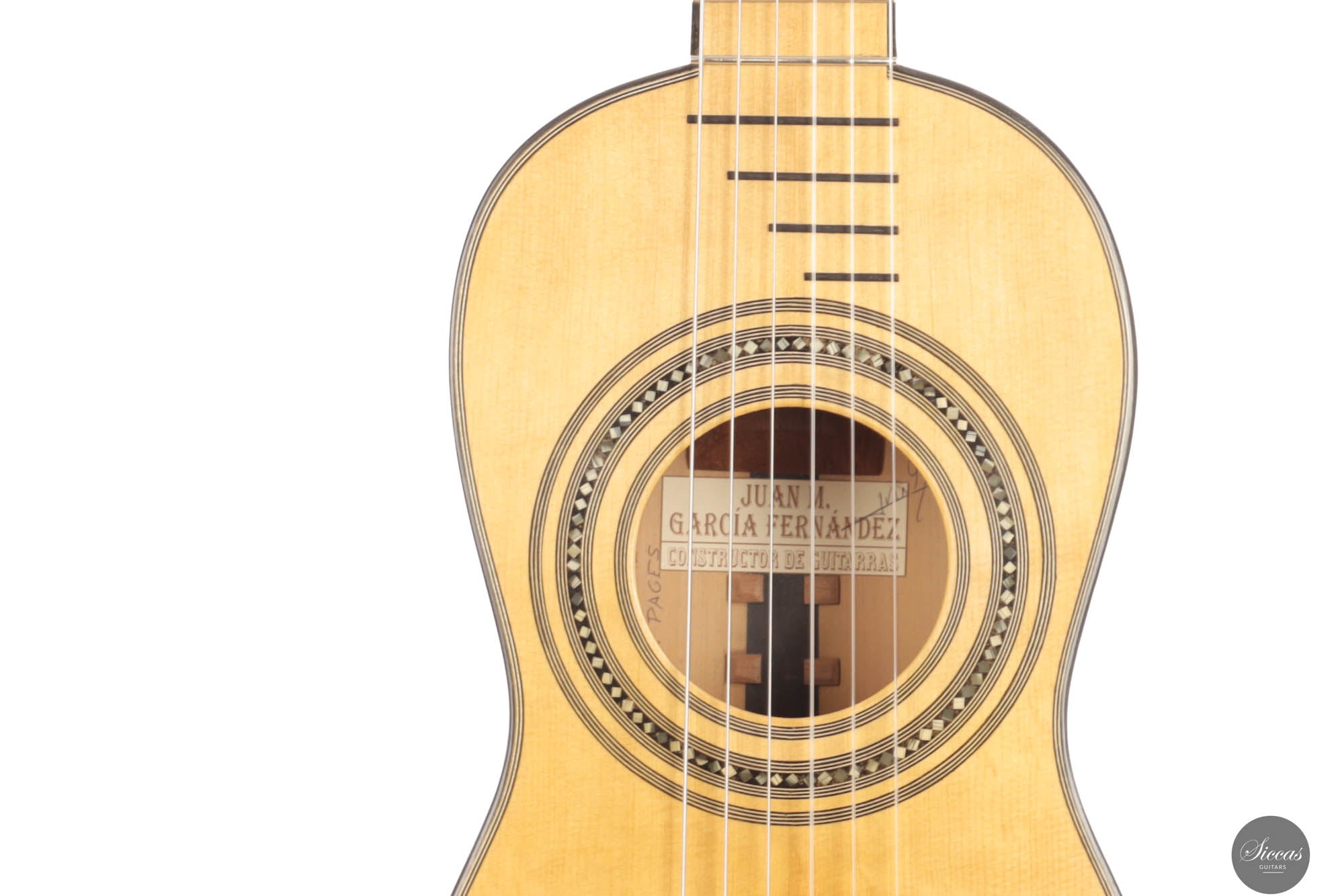Seit 1991 baut Juan Manuel García Fernández Gitarren in Granada. Er studierte unter den Meistergitarrenbauern Miguel Carmona, Jesús López, Manuel López Bellido und Rafael Moreno. Seit 2003 hat er seine Werkstatt im Zentrum von Granada. Seine Instrumente sind sehr leicht zu spielen, haben einen süßen Klang und sind sehr ausgewogen.