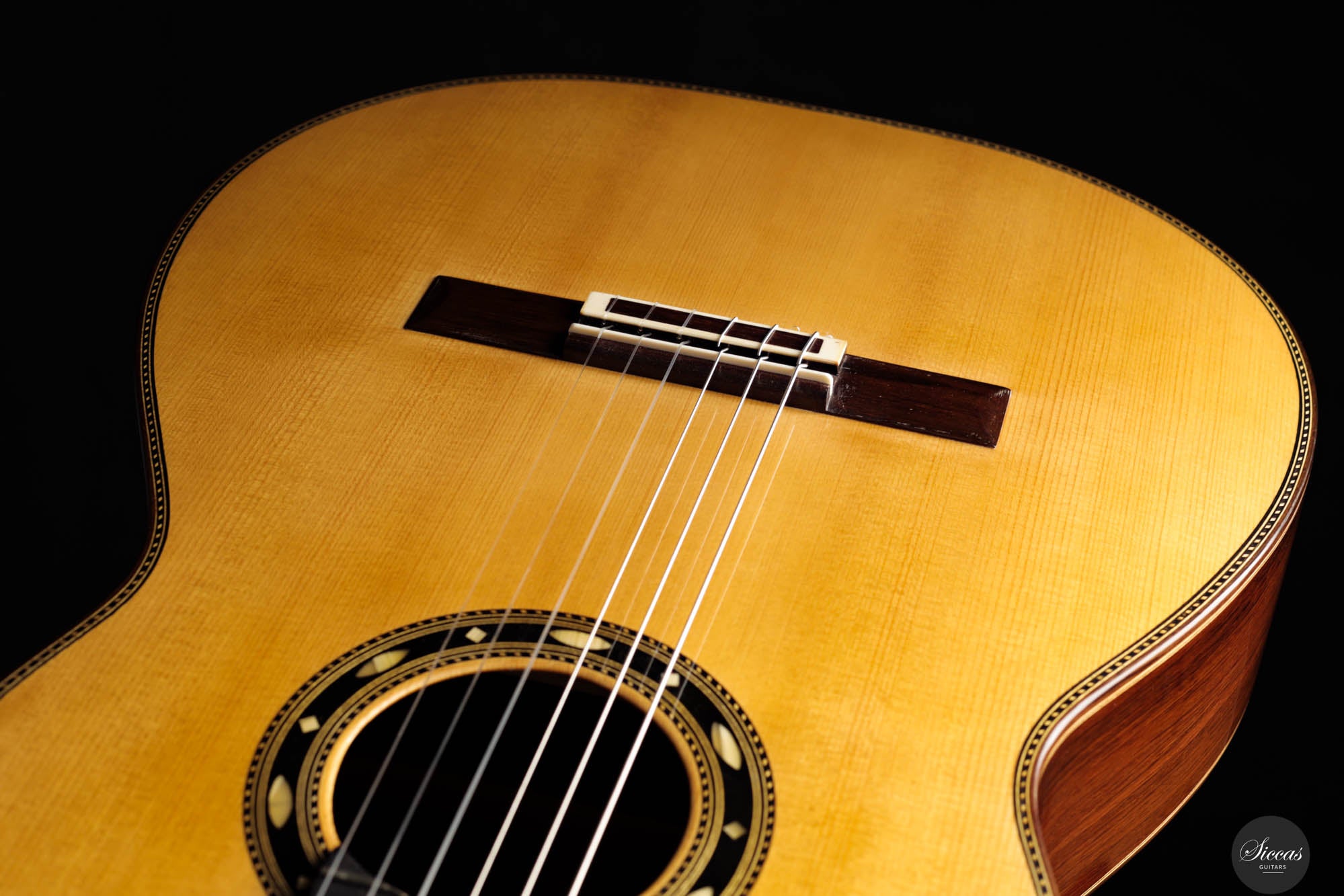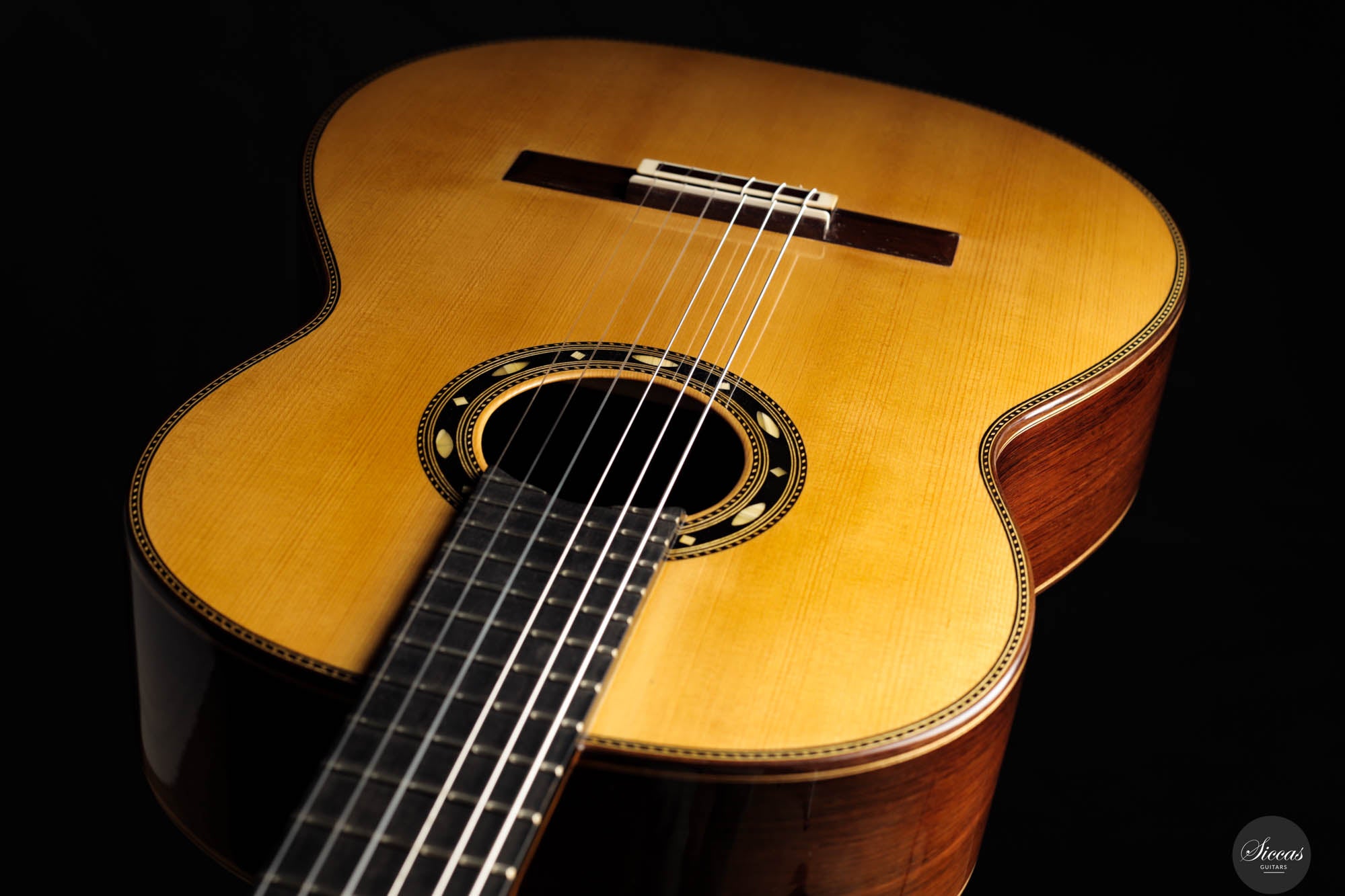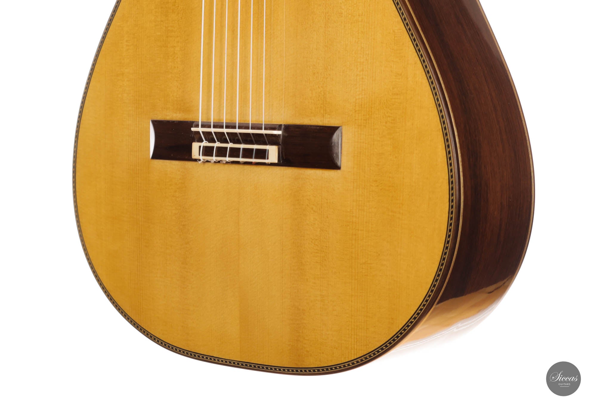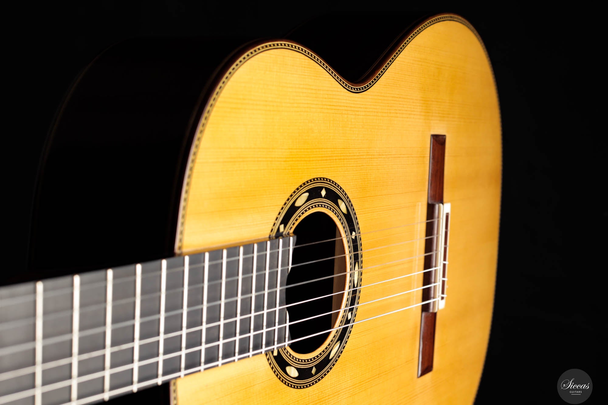 Die brandneue Juan Garcia Fernandez Gitarre Nr. 211 ist ein beeindruckendes Beispiel für meisterhaftes Handwerk, das fesselnde Ästhetik mit außergewöhnlicher Klangqualität verbindet. Handgefertigt vom angesehenen Gitarrenbauer aus Granada, verfügt dieses Instrument über eine wunderschön polierte Fichtendecke, die mit Schellack veredelt ist und eine antikähnliche Eleganz ausstrahlt, die sofort Aufmerksamkeit erregt. Neben ihrer visuellen Anziehungskraft sind die klanglichen Qualitäten der Gitarre ebenso beeindruckend und bieten reiche, ansprechende Höhen, die glatt und rund sind und die Wärme und den Charme von Vintage-Instrumenten hervorrufen. Dieser ausdrucksstarke Klangcharakter ermöglicht es Musikern, tiefe Emotionen zu vermitteln und ihren künstlerischen Ausdruck zu verbessern. Mit ihrer inspirierenden Bespielbarkeit und ihrem ausgewogenen, charismatischen Klang bietet diese Gitarre ein immersives Spielerlebnis, das sowohl angenehm als auch wirkungsvoll ist. Die Vereinigung von visueller Schönheit mit hervorragender Akustik macht die Juan Garcia Fernandez Gitarre Nr. 211 aus dem Jahr 2024 zu einem Zeugnis für das außergewöhnliche Können des Gitarrenbauers und zu einer idealen Wahl für anspruchsvolle Gitarristen, die ein Instrument suchen, das sowohl in Form als auch in Funktion überzeugt.
