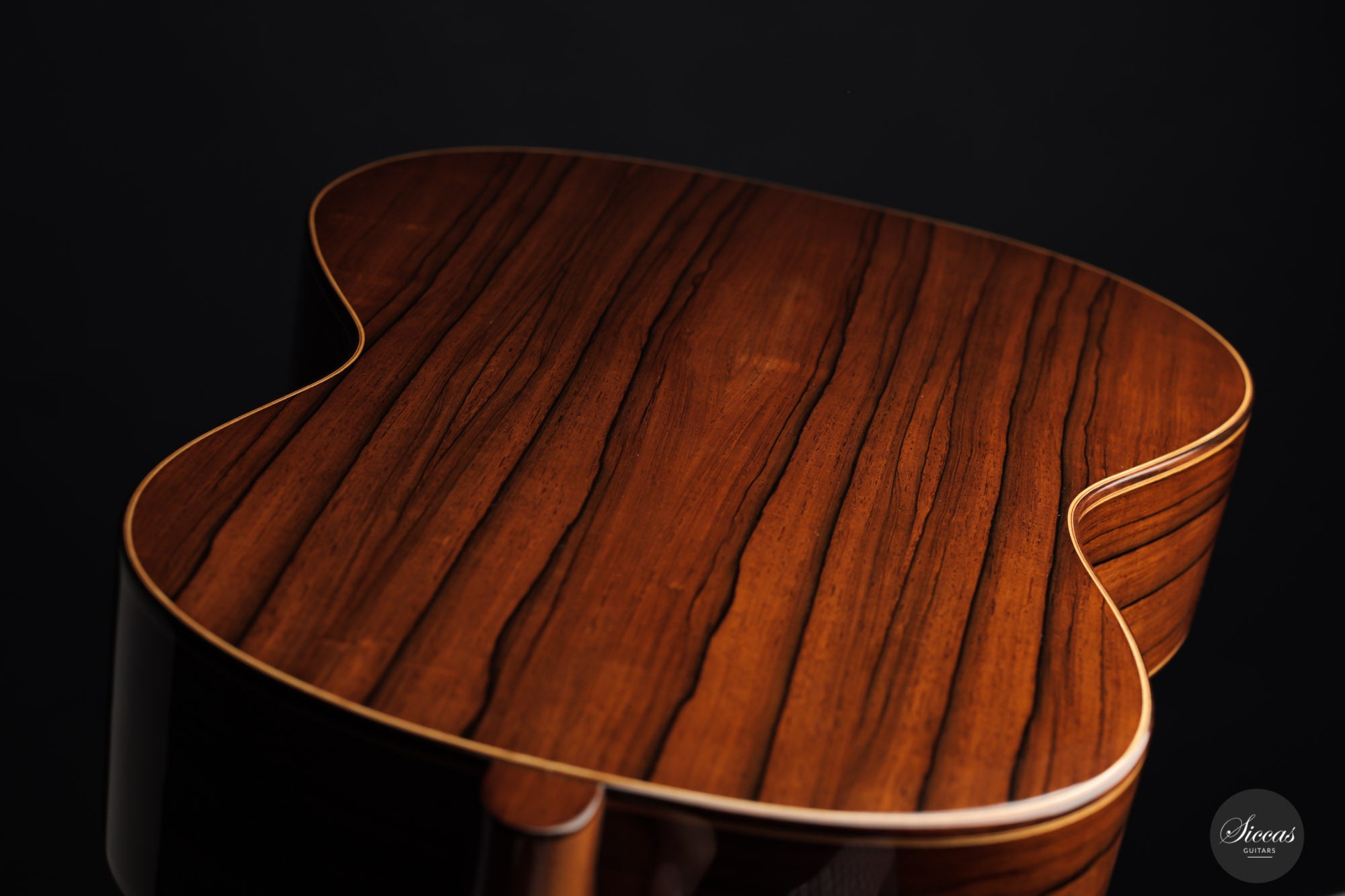 Preis auf AnfrageGitarrenbauer: Fritz OberBaujahr: 2019Decke: SpruceBoden und Zargen: Brazilian rosewood (CITES certified)Deckenoberfläche: French polishKorpusoberfläche: French polishLuftresonanz: C sharp / DGewicht (g): 1345Mechaniken: Klaus SchellerZustand: Excellent -