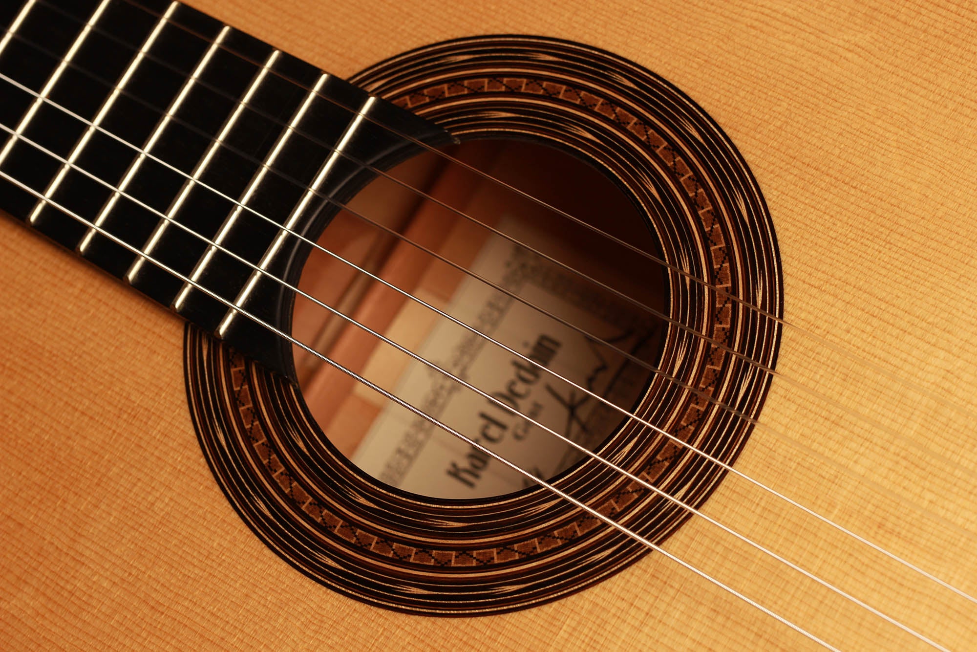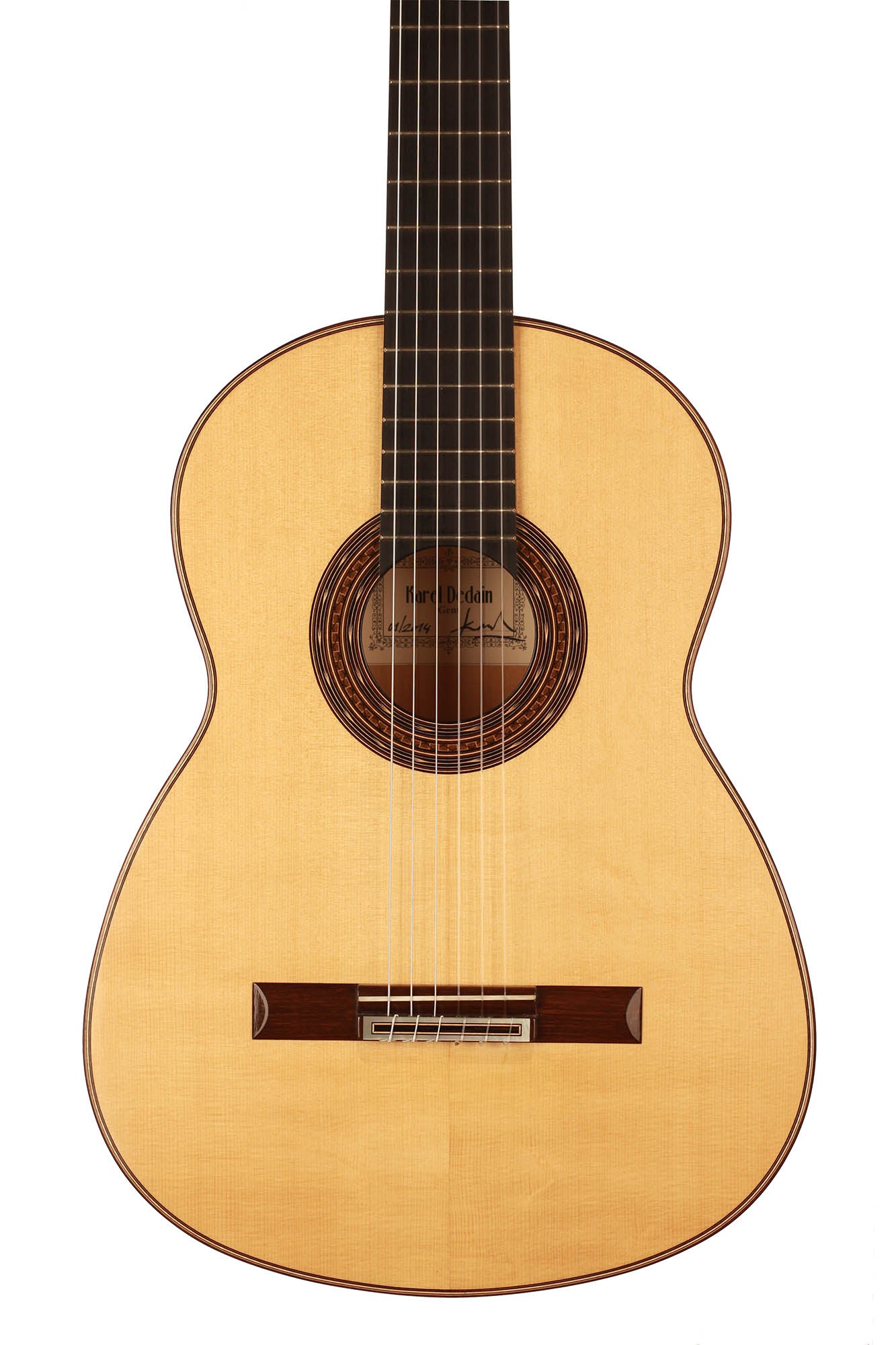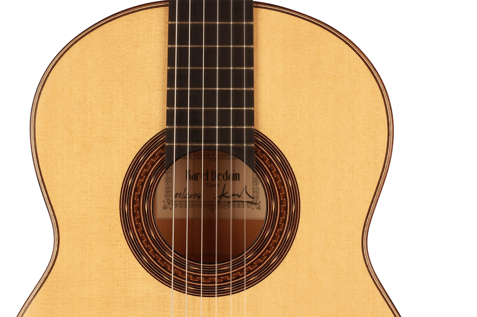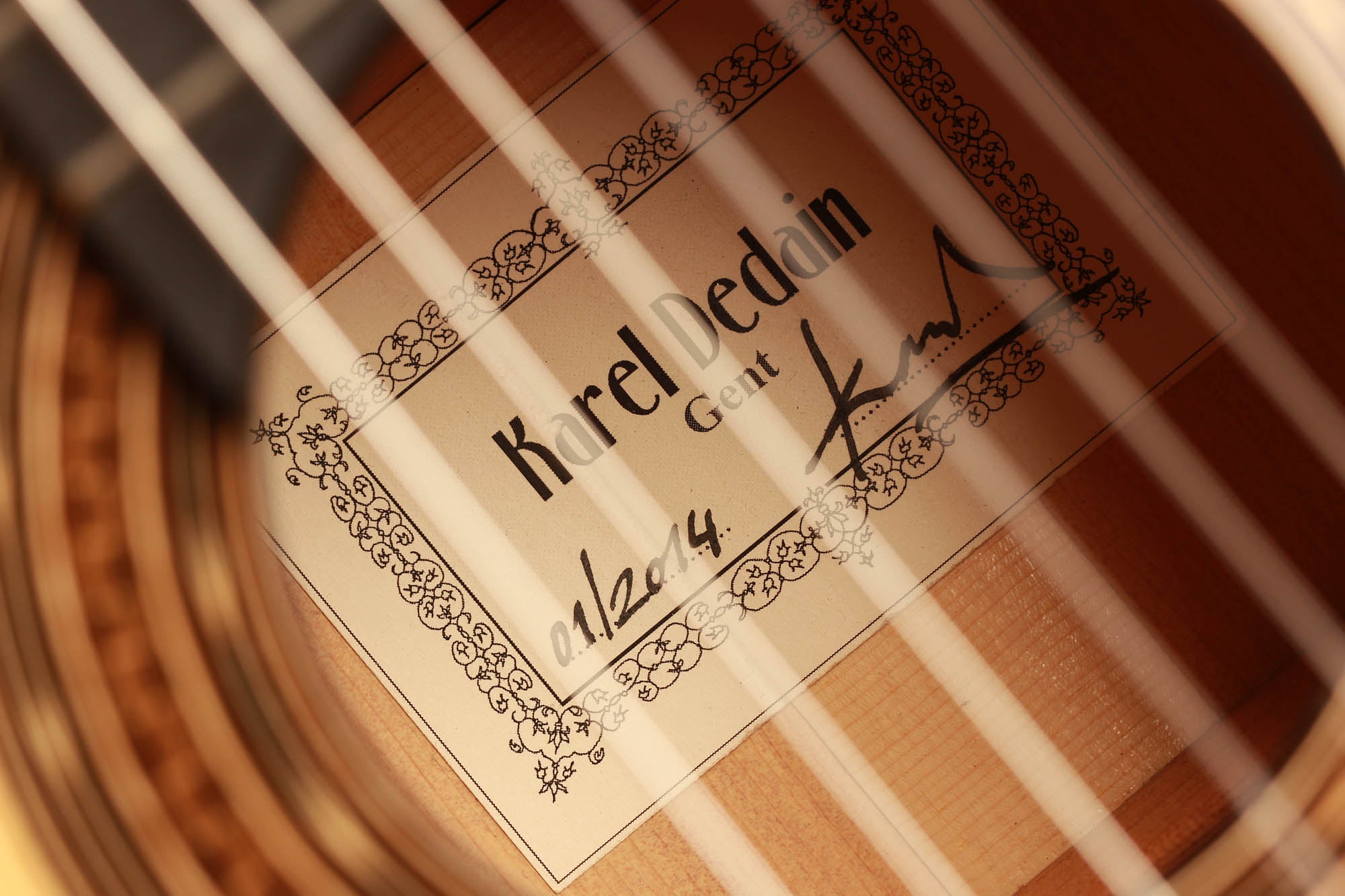 Born in 1976 Karel Dedain built his first guitar in 1998. He lives and works in Gent, Belgium. His passion for playing the Flamenco guitar awakened his interest in guitar building. He studied at the CMP (Centrum voor Muziekinstrumentenbouw) with Walter Verreydt, and since 2006 making guitars has been his main job. Karel is specialized in classical and Flamenco guitars. Furthermore, he teaches guitar making at the centre of musical instrument building in Puurs, Belgium, together with Walter Verreydt. Karel makes about ten guitars a year, all of them completely handmade. One of his specialties is the French polish finish. His philosophy is not to invent everything from scratch but to make use of the best ideas of historic luthiers, such as Torres, Garcia, Arias and Hernandez.