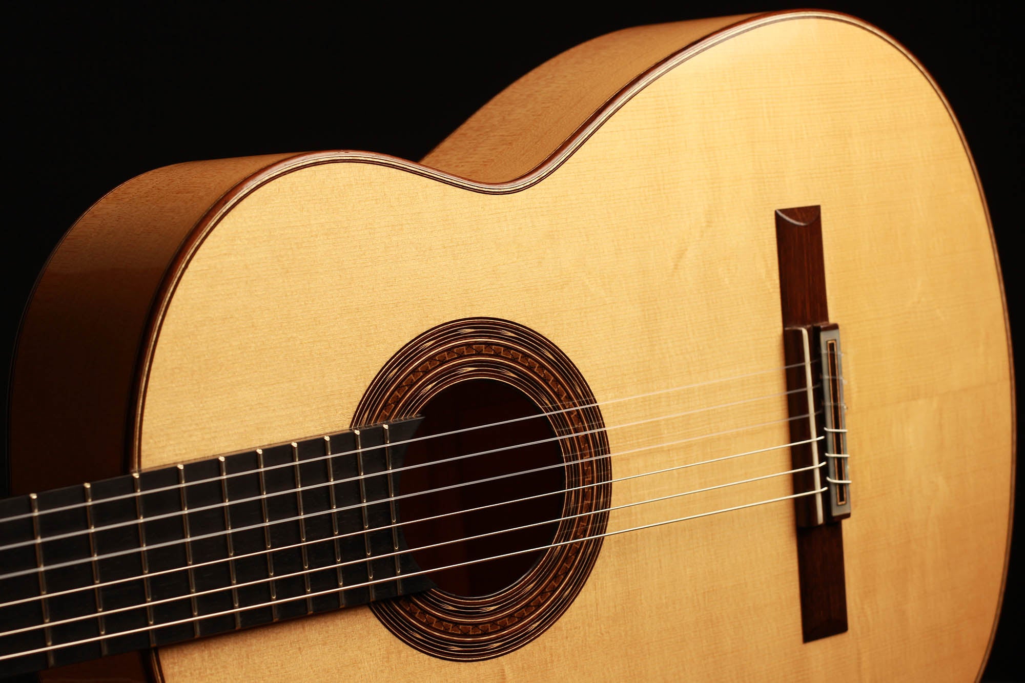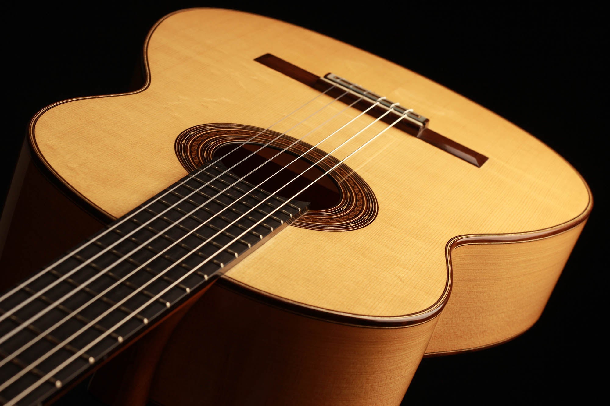 This guitar is in excellent condition. Free of cracks and wearing only few minor playing marks. The action is quite low which makes it super easy to play. It is a responsive and lively instrument, with a very quick and precise reaction. The extremely sensitive top allows intense tone colour variations and provides bold overtones.