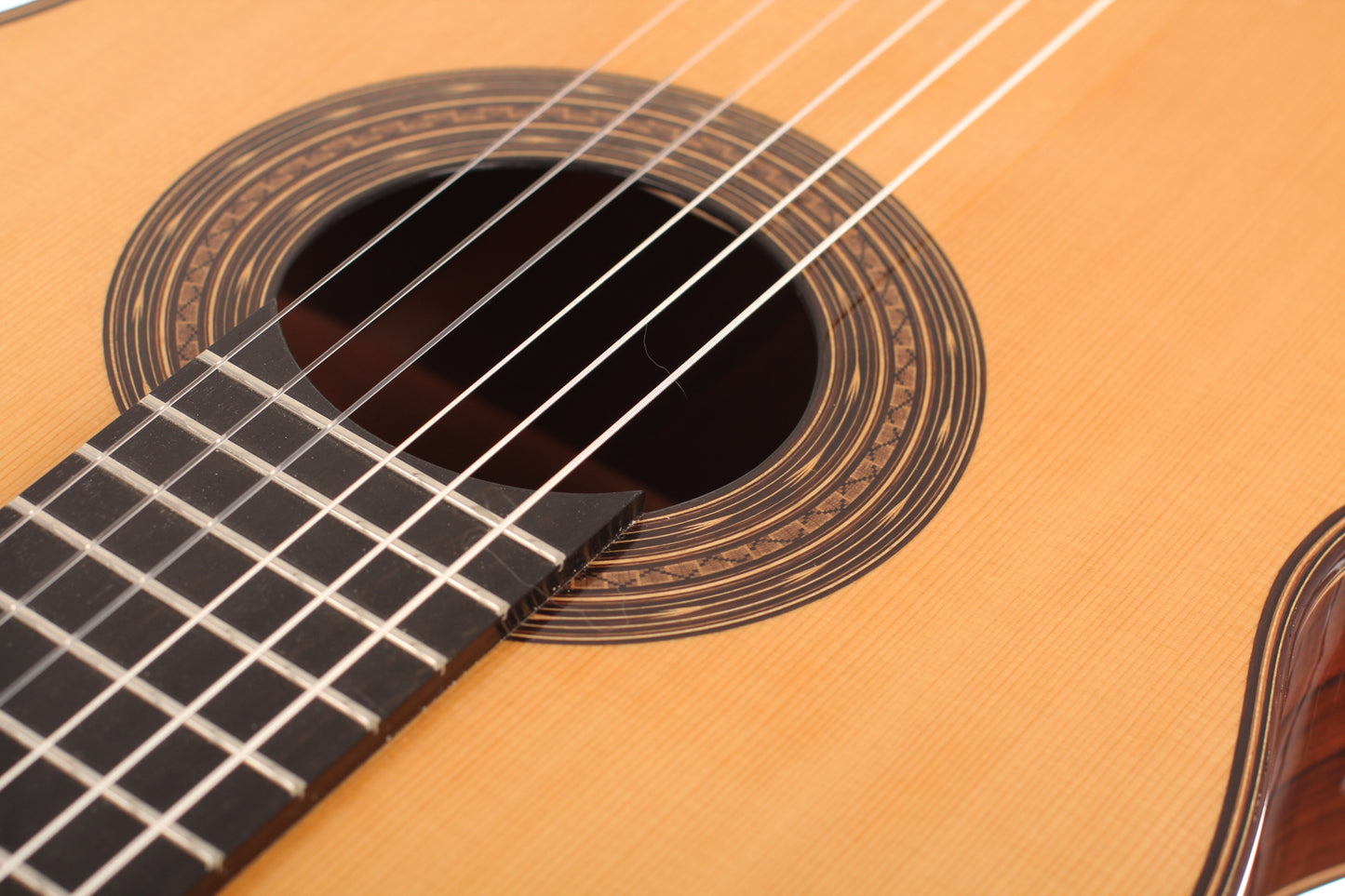Die klassische Gitarre mit ihren weichen Nylonsaiten und ihrem charakteristischen Timbre ist zum Symbol der Kammermusik, der spanischen Tradition und des Konzertrepertoires geworden. Ihre moderne Form prägte Antonio de Torres im 19. Jahrhundert, indem er den Standard für Korpus, Fächerbeleistung und die 65-Zentimeter-Mensur setzte, die bis heute verwendet werden. Instrumente dieser Kategorie eröffnen eine reiche Palette von den feinen romantischen Miniaturen Tárregas bis zu den majestätischen Konzerten Rodrigos. Hier finden Sie Gitarren, die historische Kontinuität bewahren und zugleich zu neuen Interpretationen anregen.Alle Produkte der Kollektion ansehen -