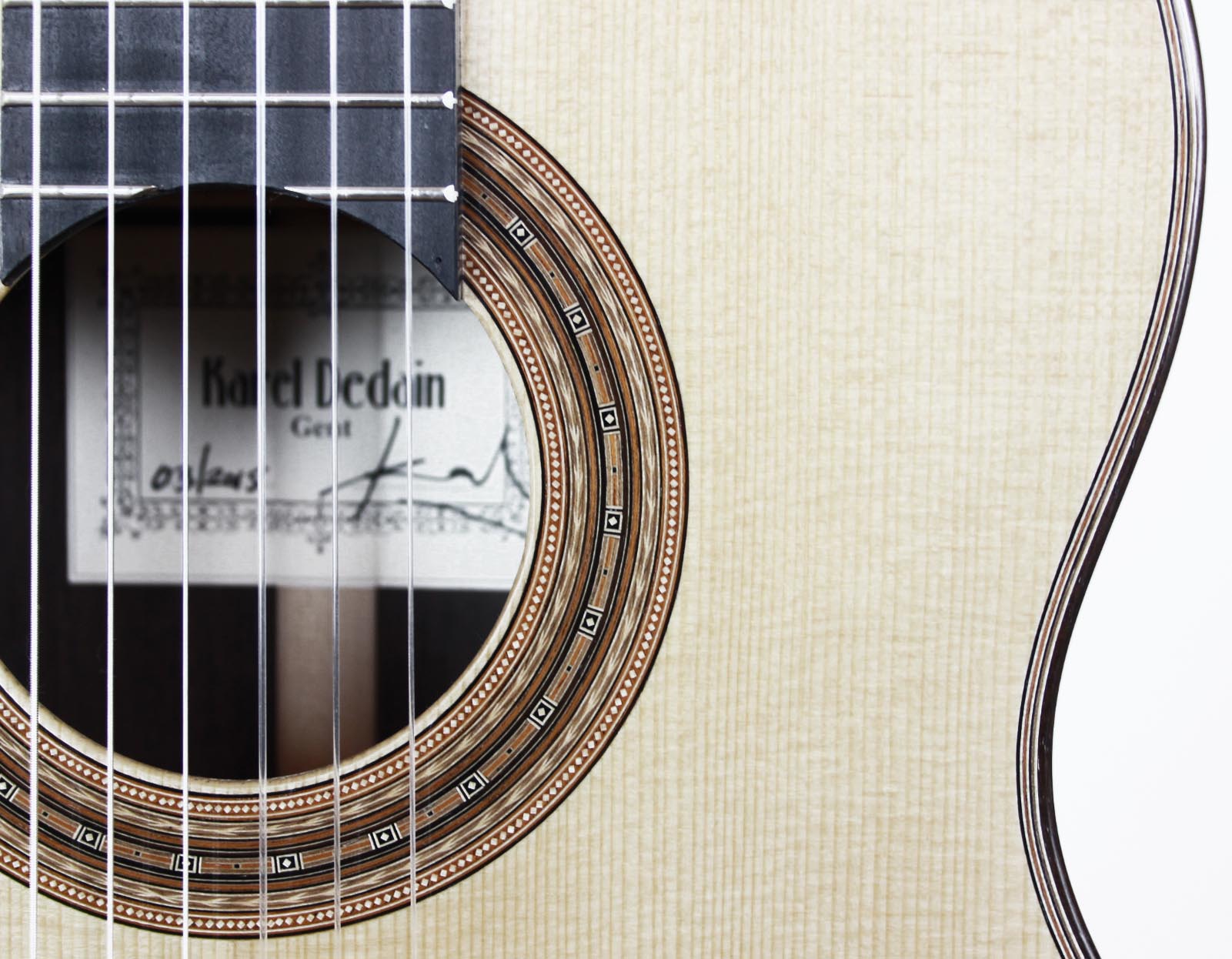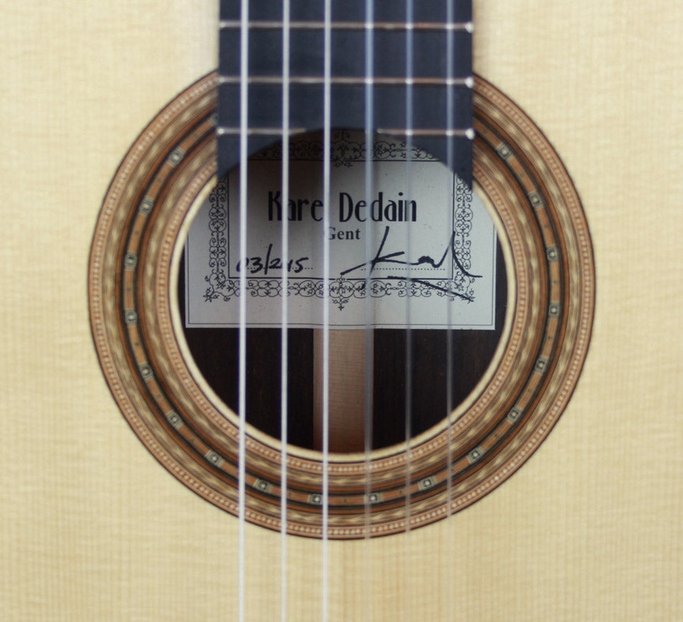Karel Dedain was trained at the CMB (Centrum voor Muziekinstrumentenbouw) with Walter Verreydt and became a professional luthier in 2006, specialized in classical and flamenco guitars. Since then he met a lot of other great makers and has seen and repaired a lot of great guitars of famous luthiers. Since 2006 Karel also teaches guitar making at the Centre for Musical Instrument Building in Puurs, Belgium, together with Walter Verreydt. He makes about 10 guitars a year, all by hand. One of his specialities is French polishing.