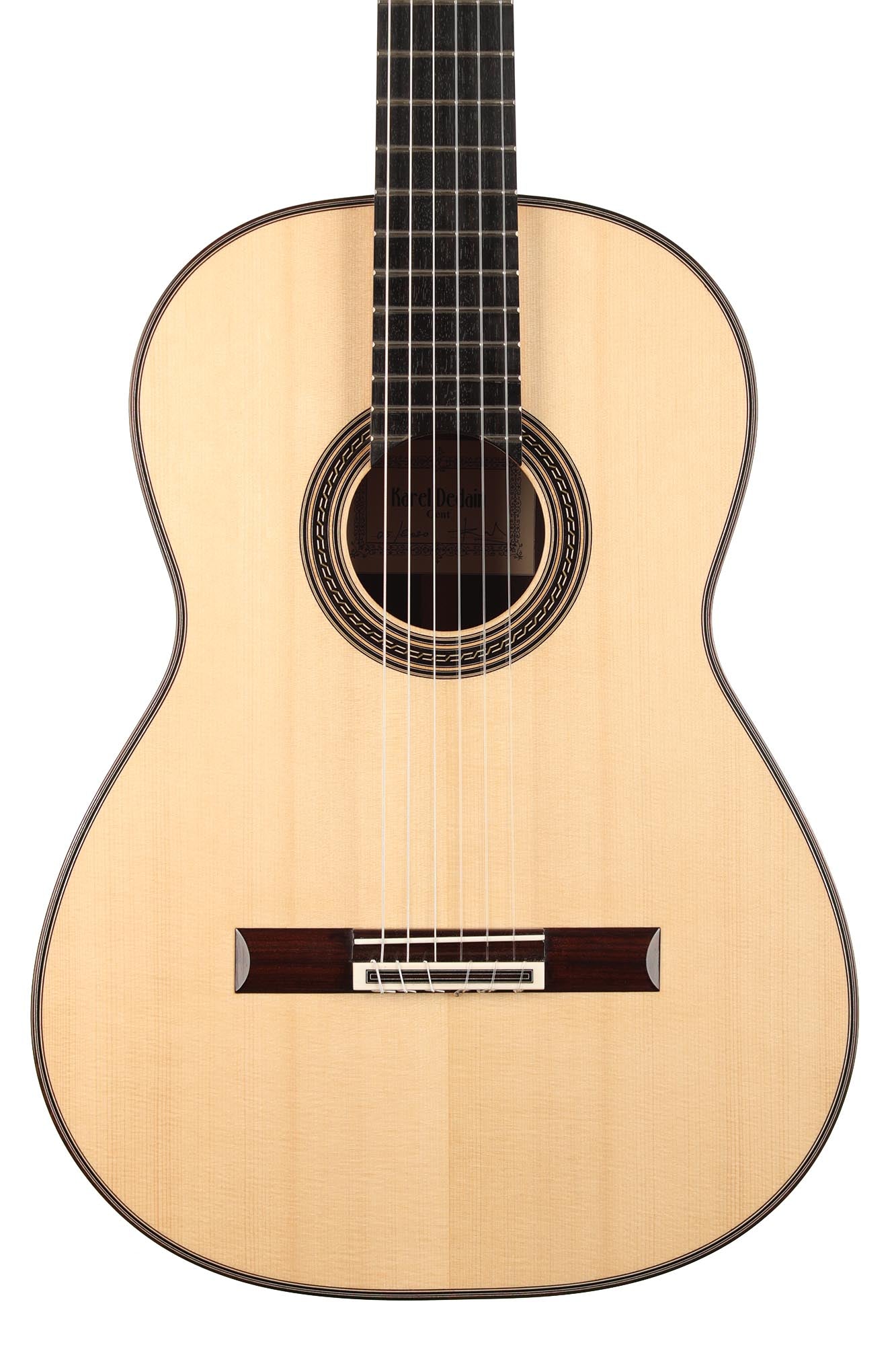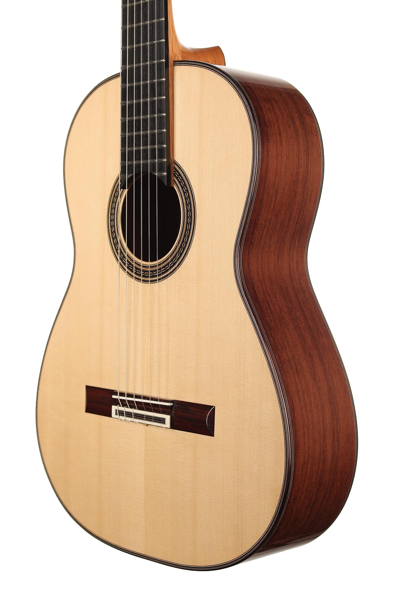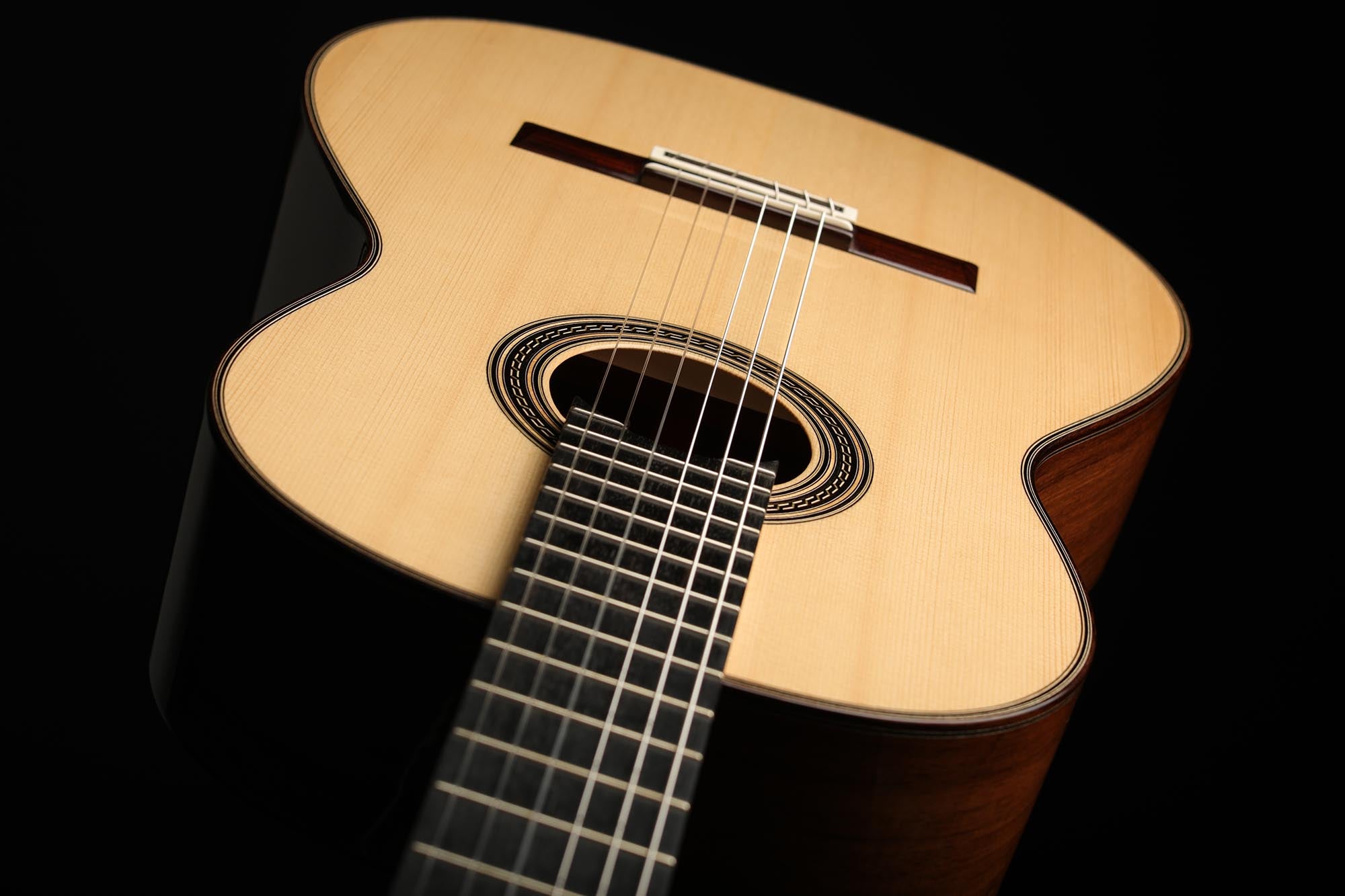 Die klassische Gitarre mit ihren weichen Nylonsaiten und ihrem charakteristischen Timbre ist zum Symbol der Kammermusik, der spanischen Tradition und des Konzertrepertoires geworden. Ihre moderne Form prägte Antonio de Torres im 19. Jahrhundert, indem er den Standard für Korpus, Fächerbeleistung und die 65-Zentimeter-Mensur setzte, die bis heute verwendet werden. Instrumente dieser Kategorie eröffnen eine reiche Palette von den feinen romantischen Miniaturen Tárregas bis zu den majestätischen Konzerten Rodrigos. Hier finden Sie Gitarren, die historische Kontinuität bewahren und zugleich zu neuen Interpretationen anregen.