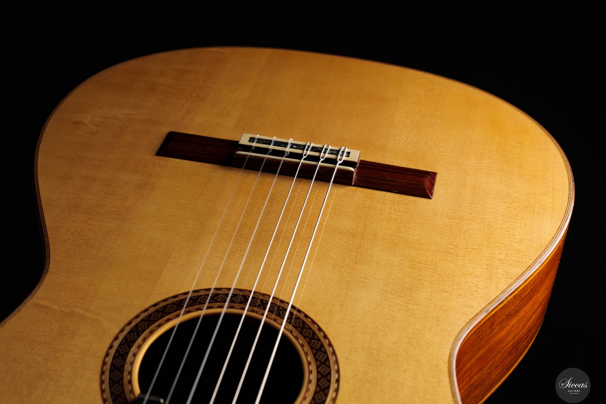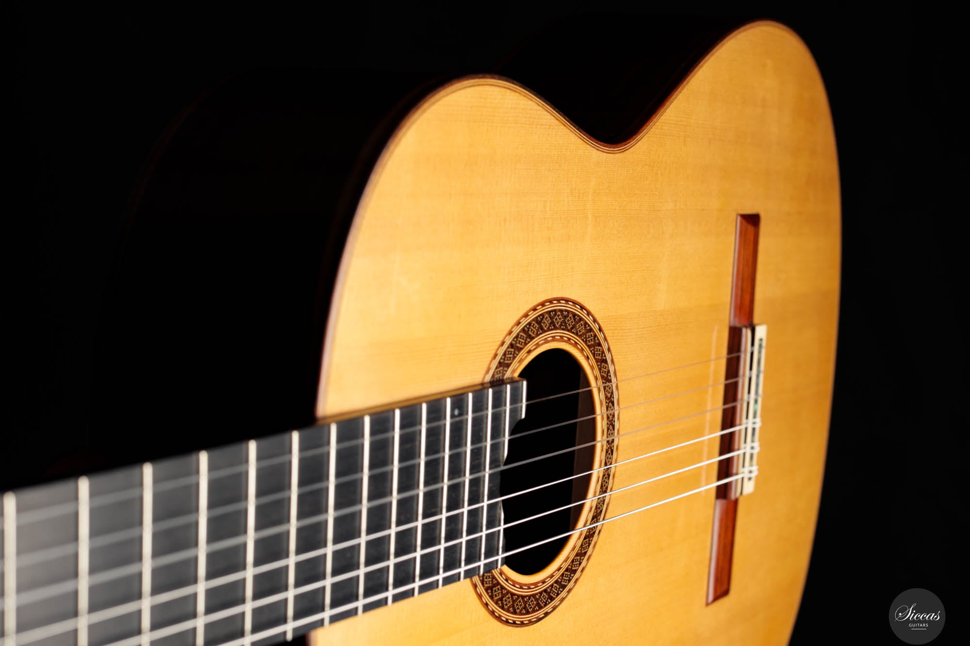 Die klassische Gitarre mit ihren weichen Nylonsaiten und ihrem charakteristischen Timbre ist zum Symbol der Kammermusik, der spanischen Tradition und des Konzertrepertoires geworden. Ihre moderne Form prägte Antonio de Torres im 19. Jahrhundert, indem er den Standard für Korpus, Fächerbeleistung und die 65-Zentimeter-Mensur setzte, die bis heute verwendet werden. Instrumente dieser Kategorie eröffnen eine reiche Palette von den feinen romantischen Miniaturen Tárregas bis zu den majestätischen Konzerten Rodrigos. Hier finden Sie Gitarren, die historische Kontinuität bewahren und zugleich zu neuen Interpretationen anregen.